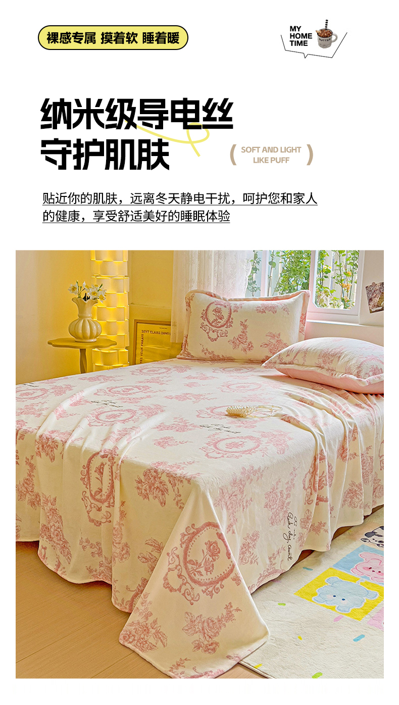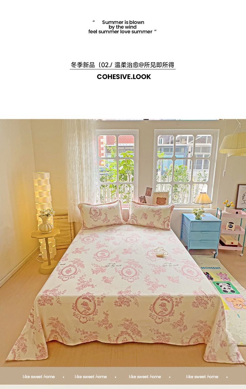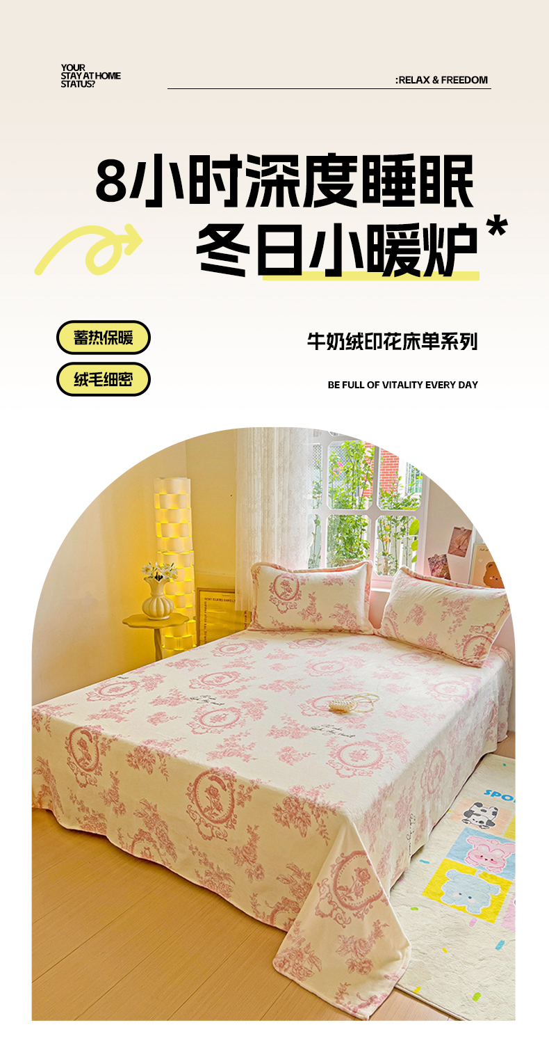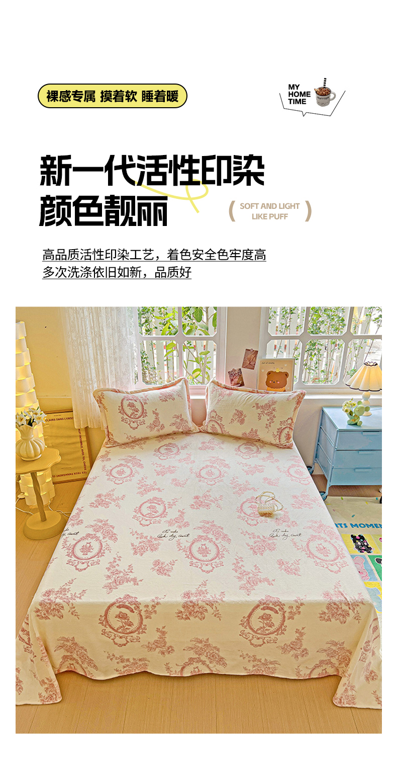 卡普二店 2024新款牛奶绒印花单床单 浪漫玫瑰