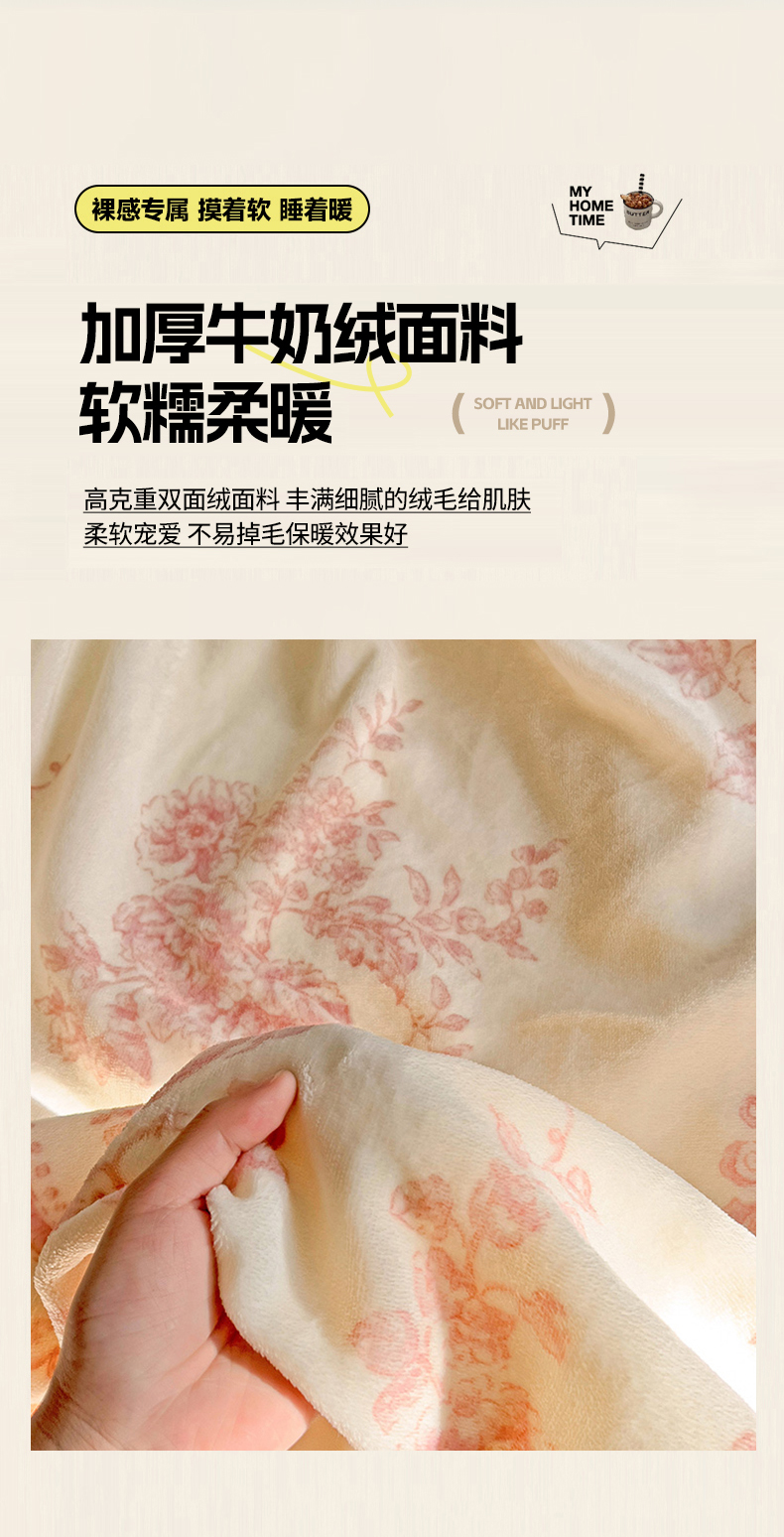 • 91家纺网 家纺一手货源 找家纺 卡普二店 2024新款牛奶绒印花单床单 浪漫玫瑰