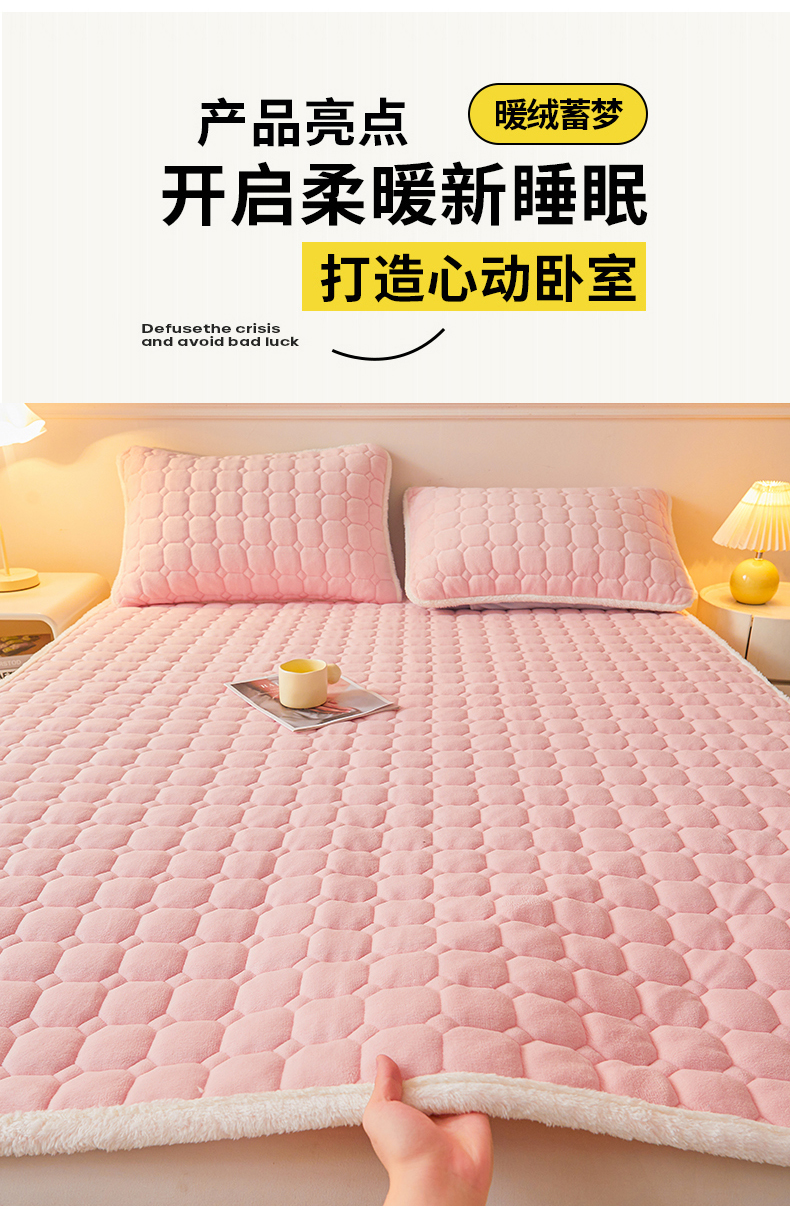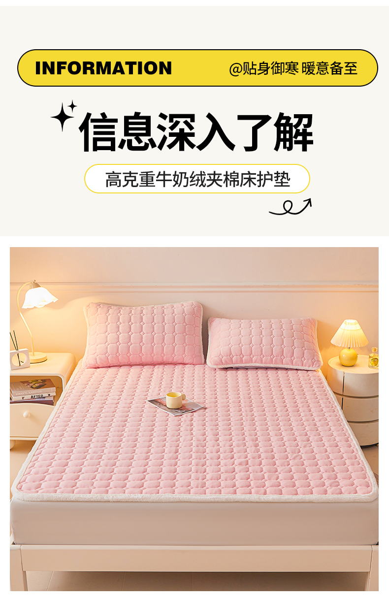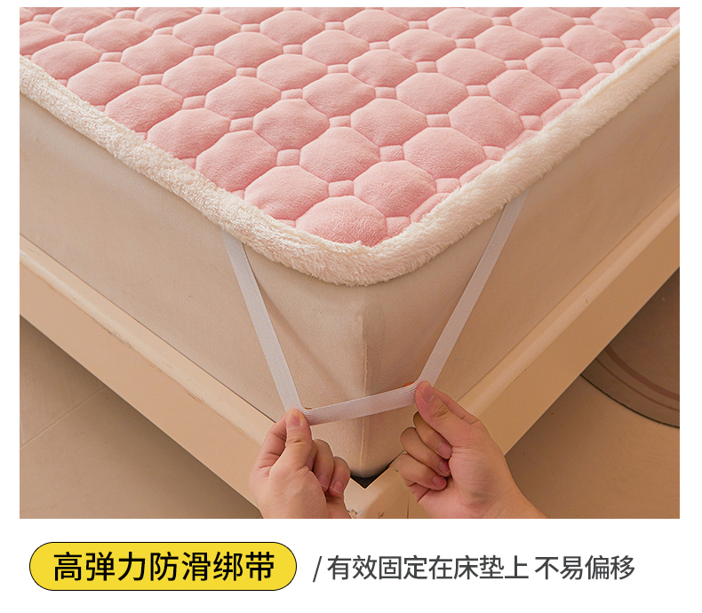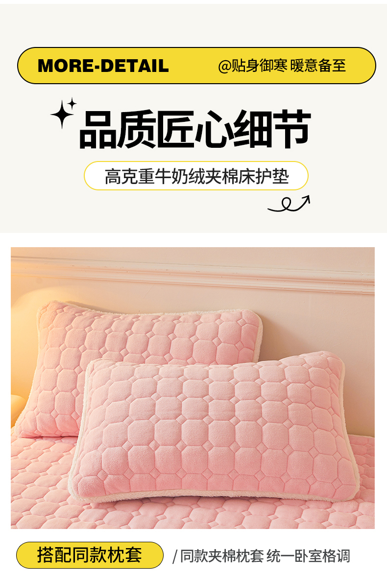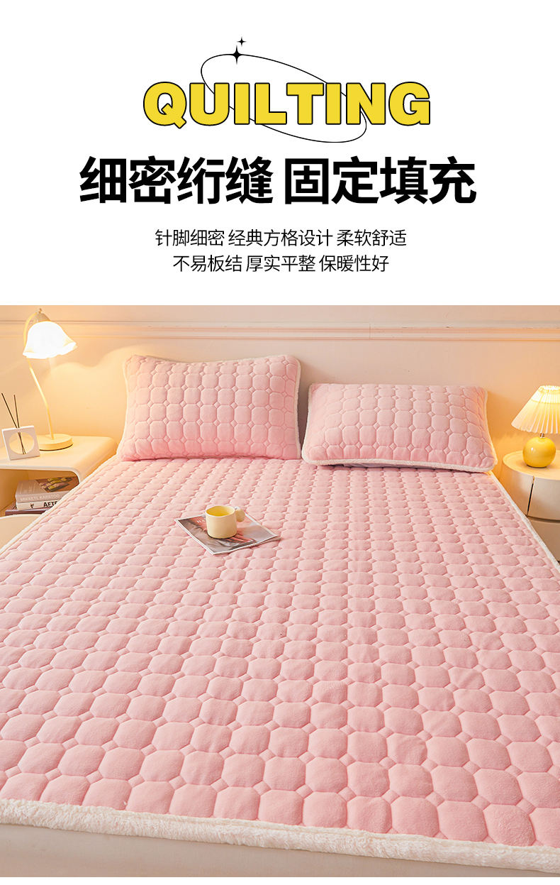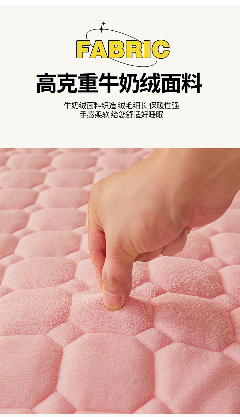 商品名称:予梦家纺 2024新款纯色牛奶绒夹棉床褥床护垫-莫甘娜 莫甘娜-蜜粉