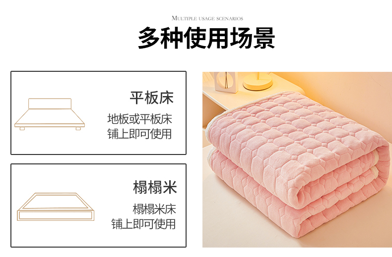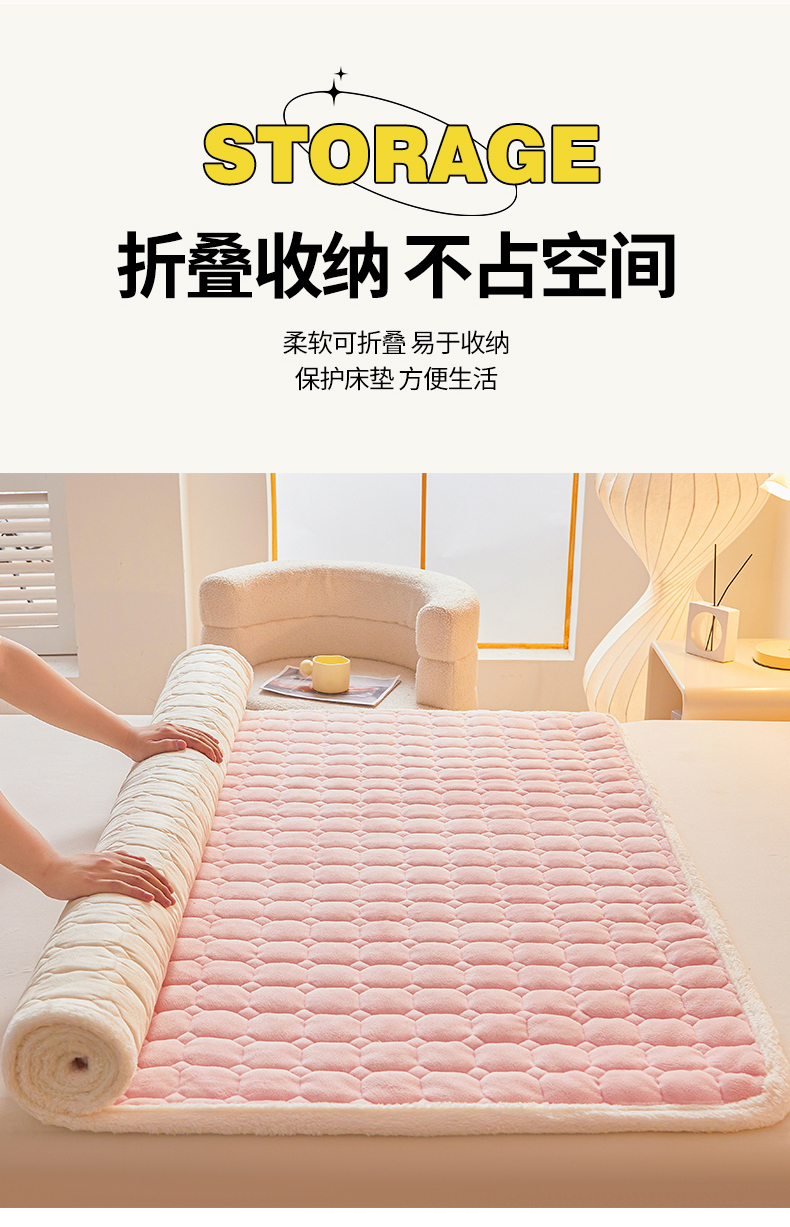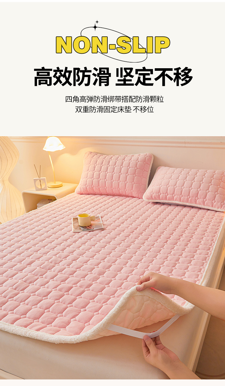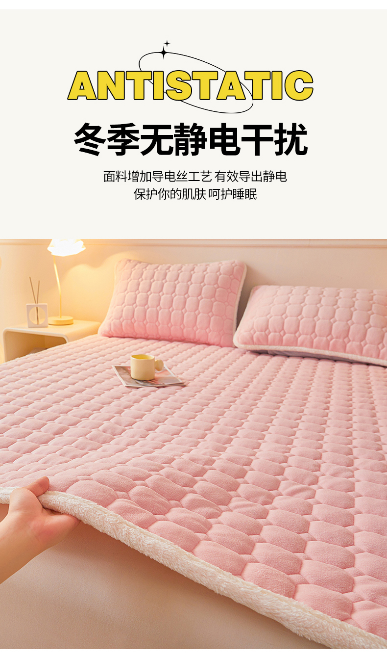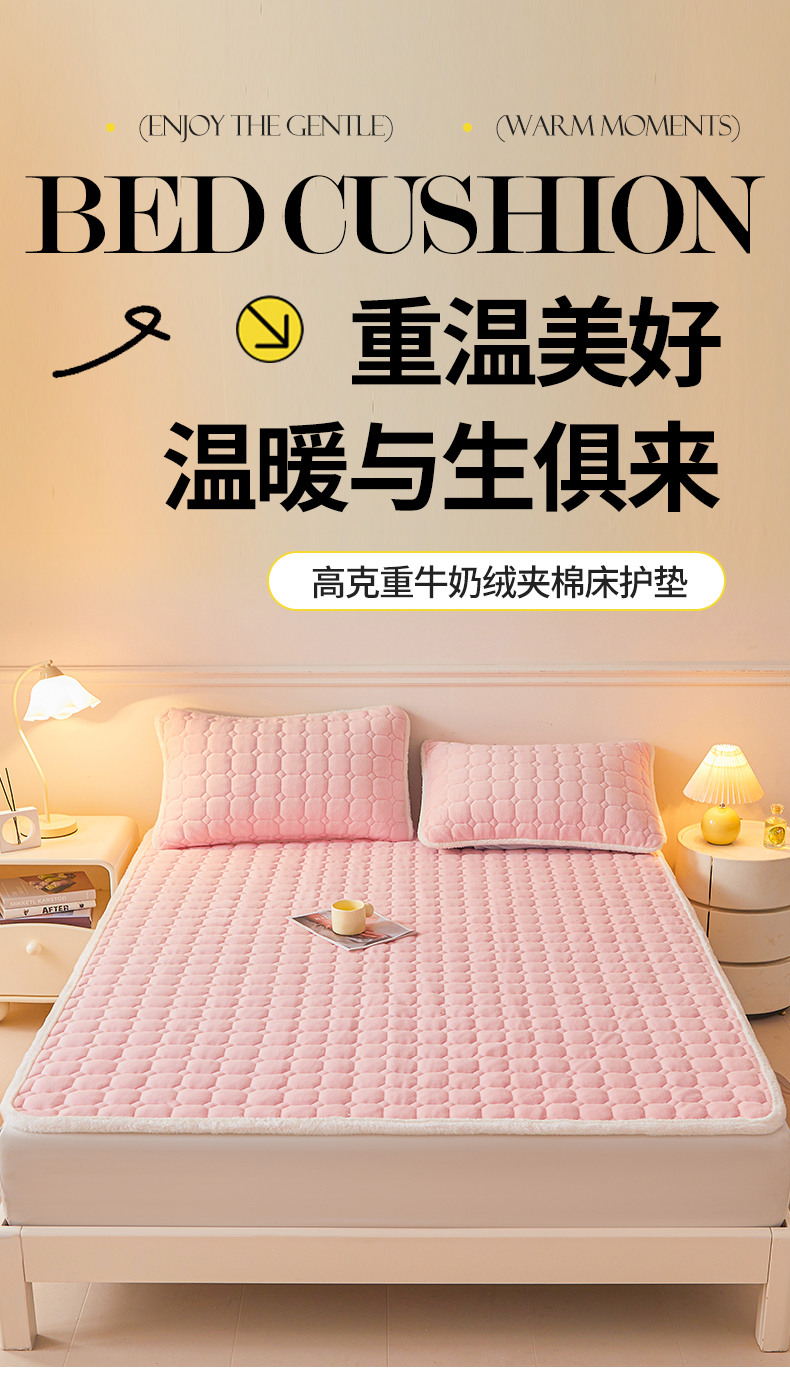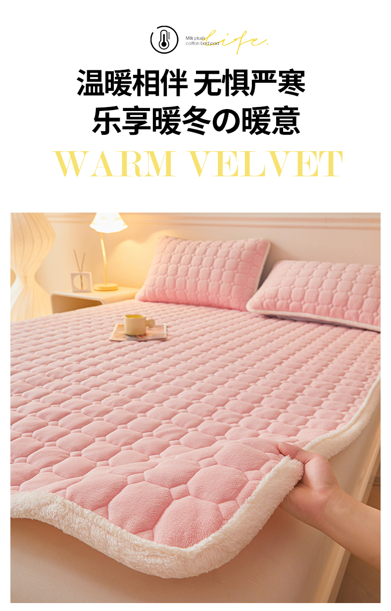 商品名称:予梦家纺 2024新款纯色牛奶绒夹棉床褥床护垫-莫甘娜 莫甘娜-蜜粉
