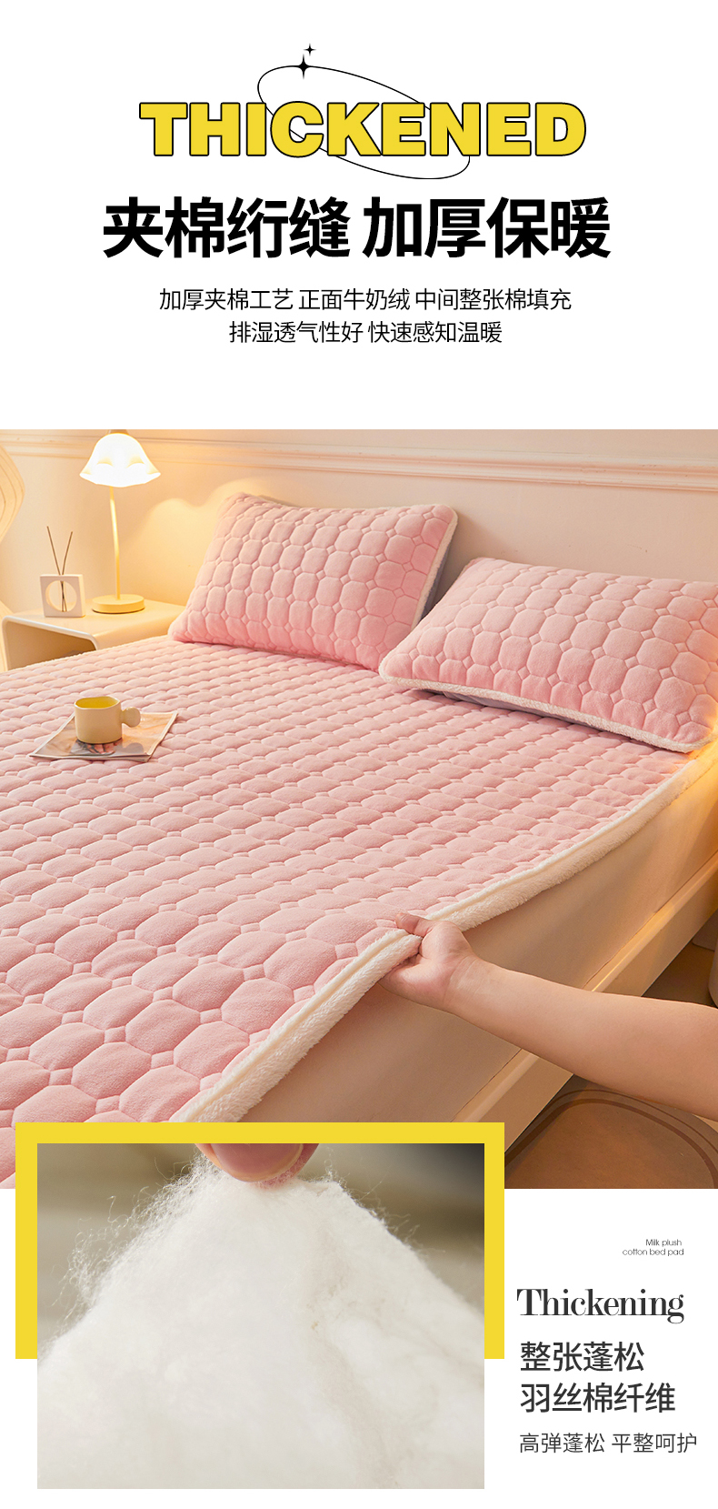 予梦家纺 2024新款纯色牛奶绒夹棉床褥床护垫-莫甘娜 莫甘娜-蜜粉