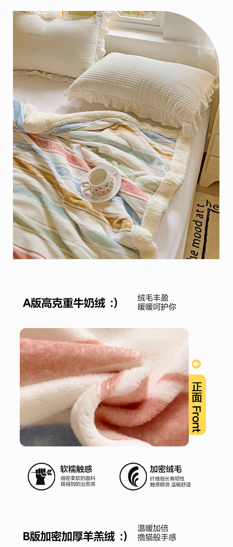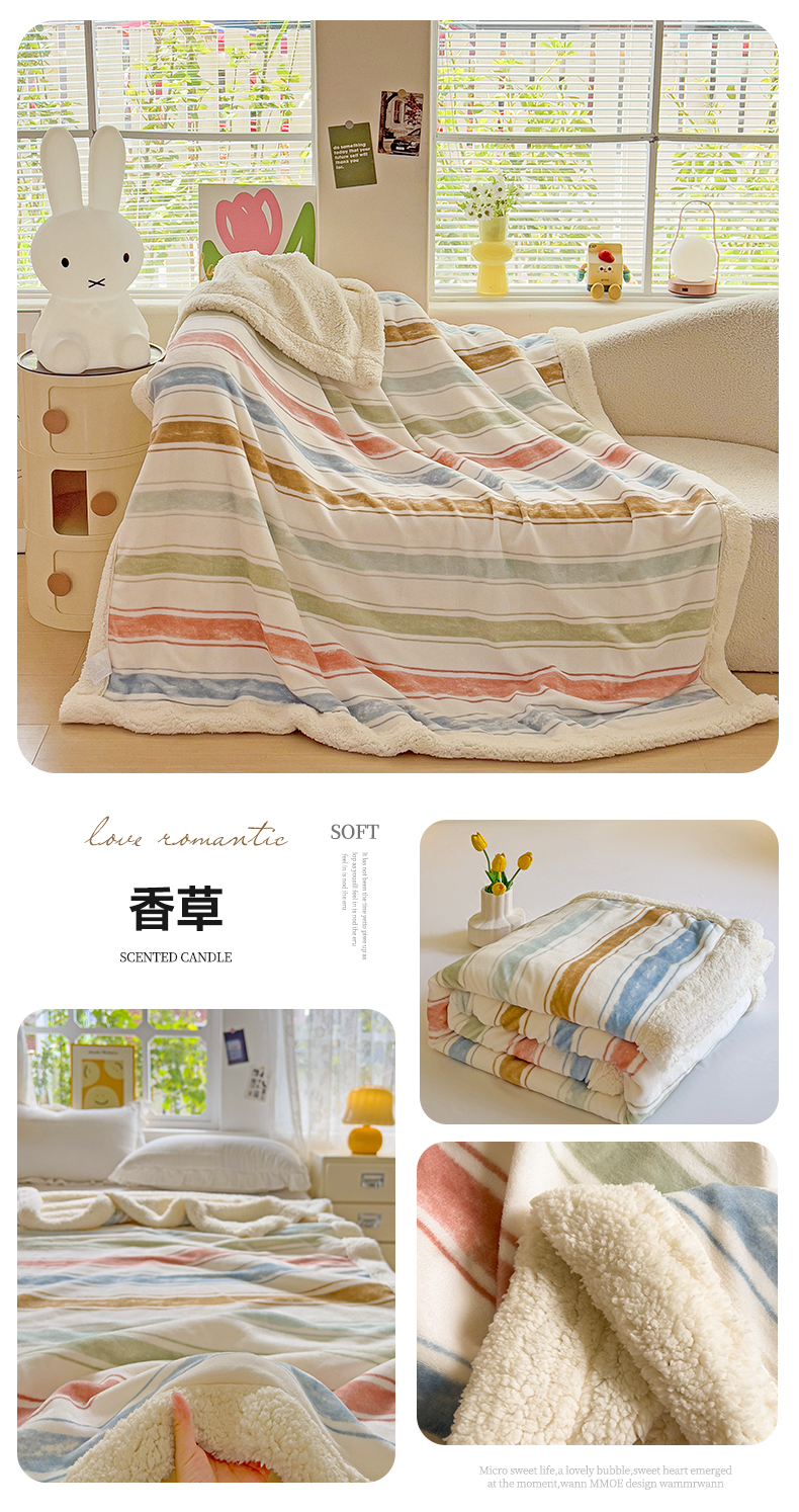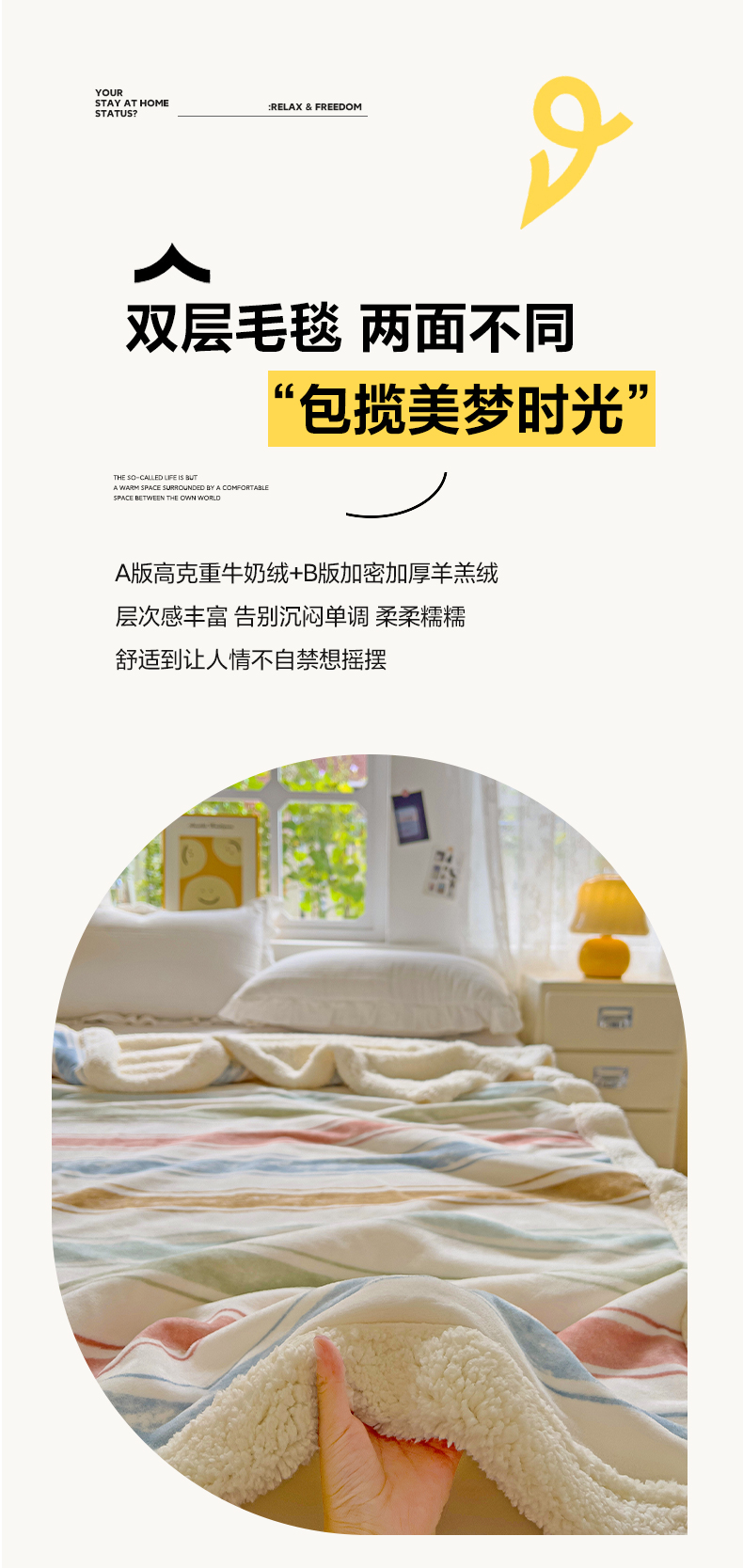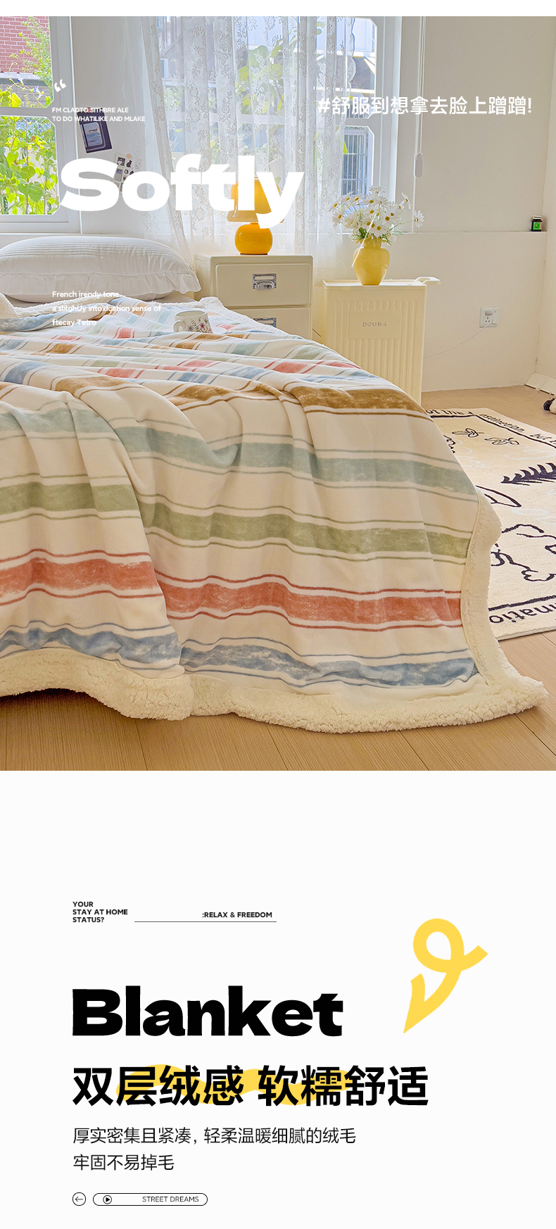 艾咪-Amy ntmy 2024新款ins条纹牛奶绒双层毯毛毯休闲毯 香草