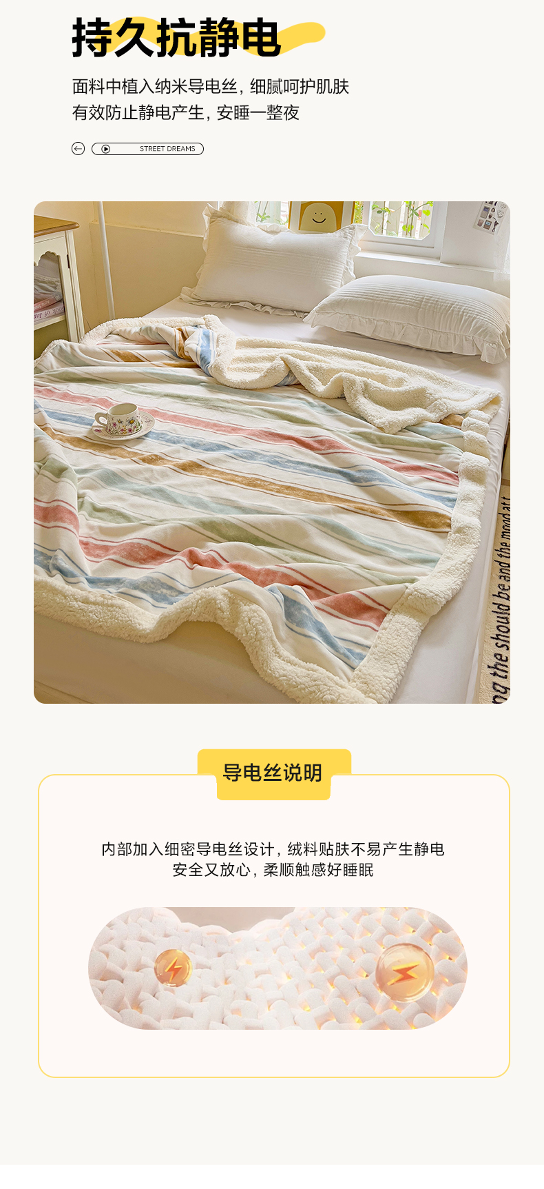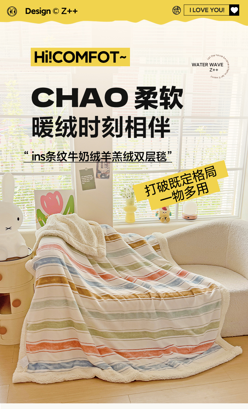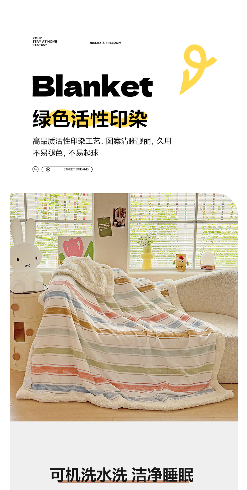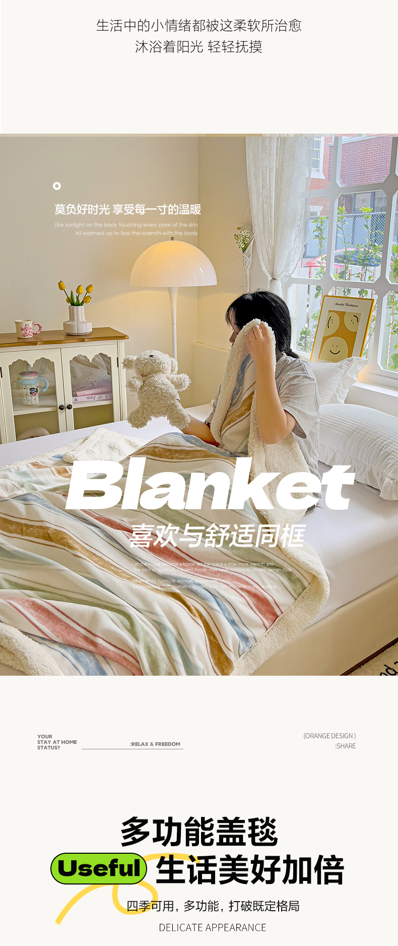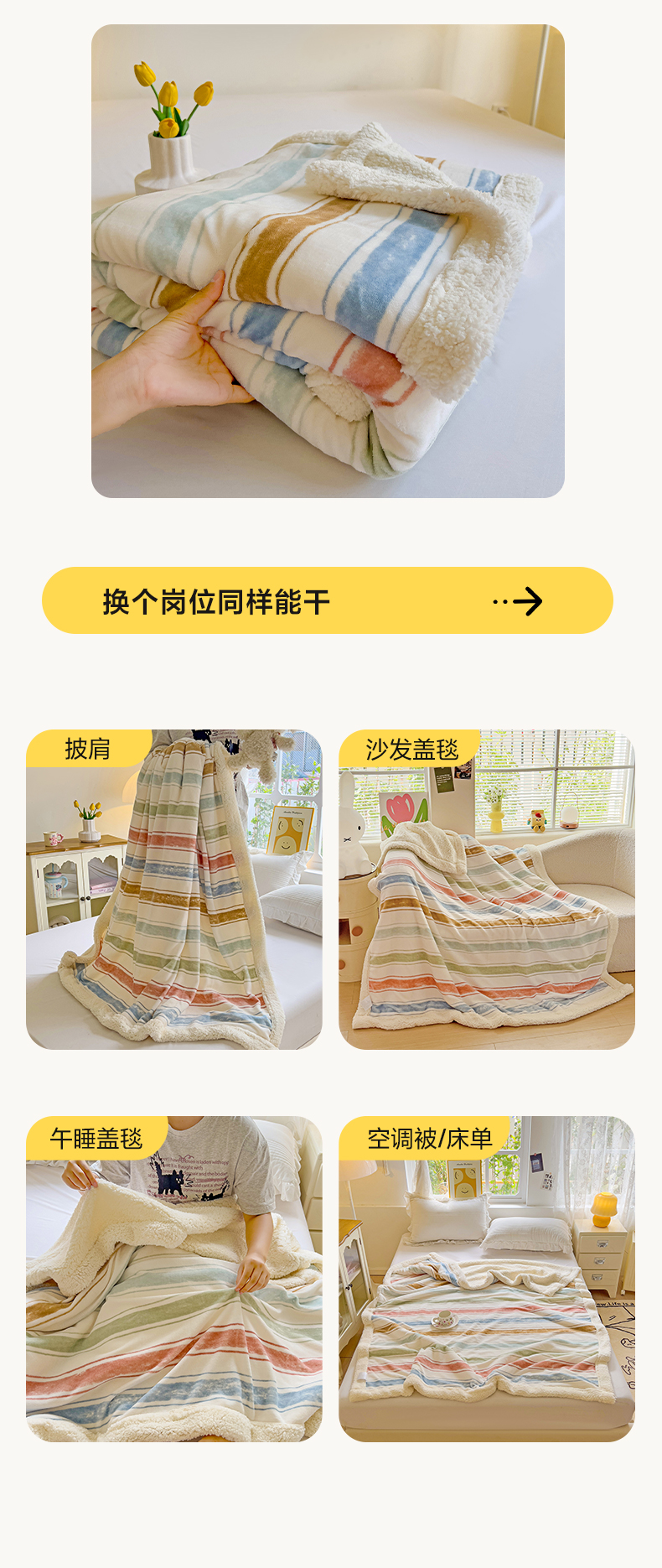 艾咪-Amy ntmy 2024新款ins条纹牛奶绒双层毯毛毯休闲毯 香草