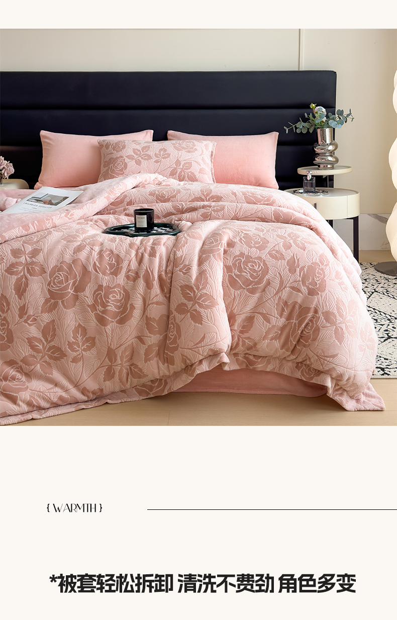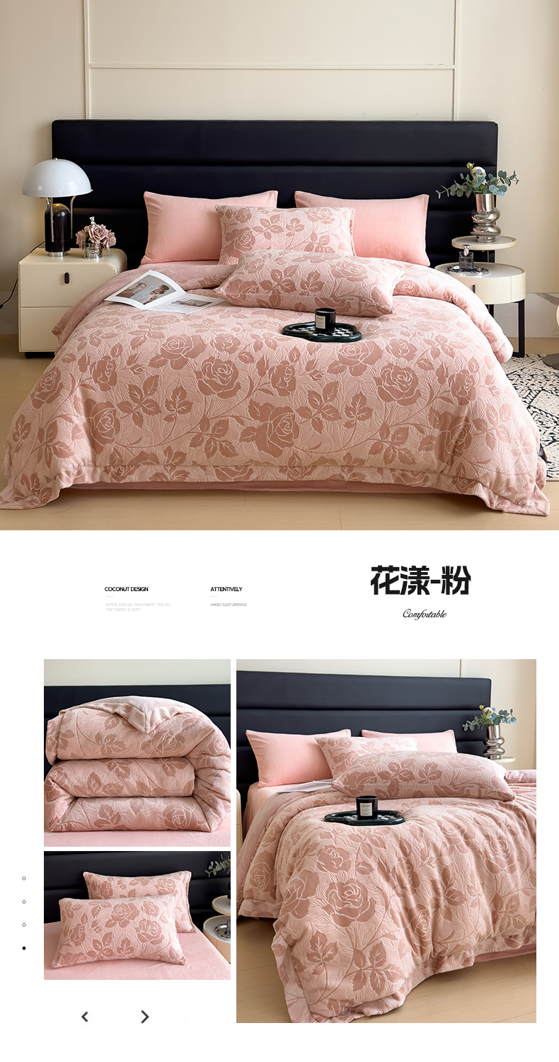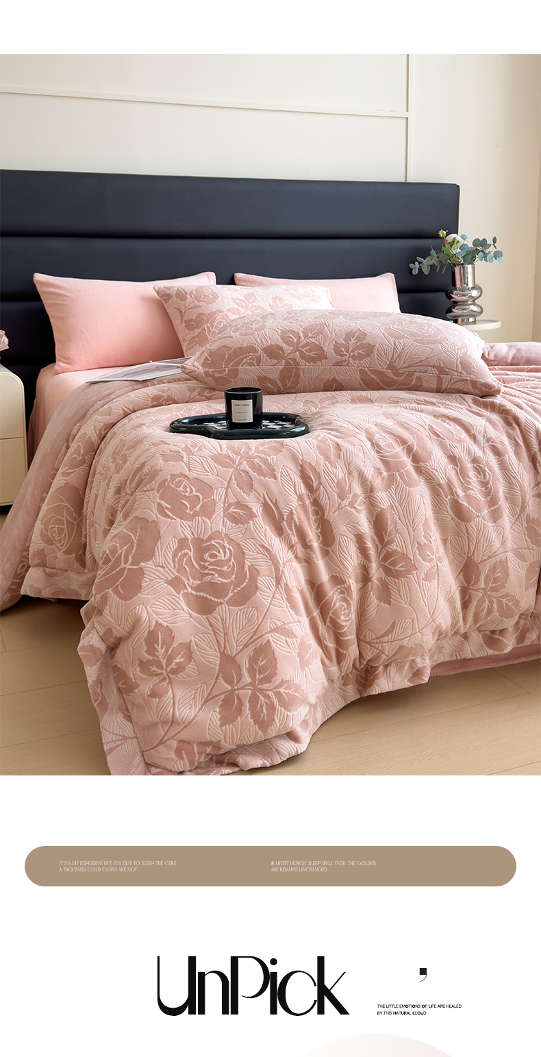 • 91家纺网 家纺一手货源 找家纺 米菲 2024新款着色烂花牛奶绒可拆洗冬被 花漾-粉