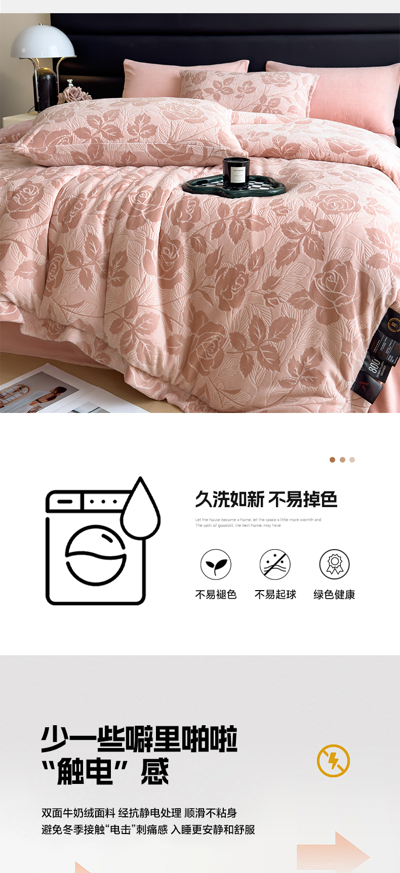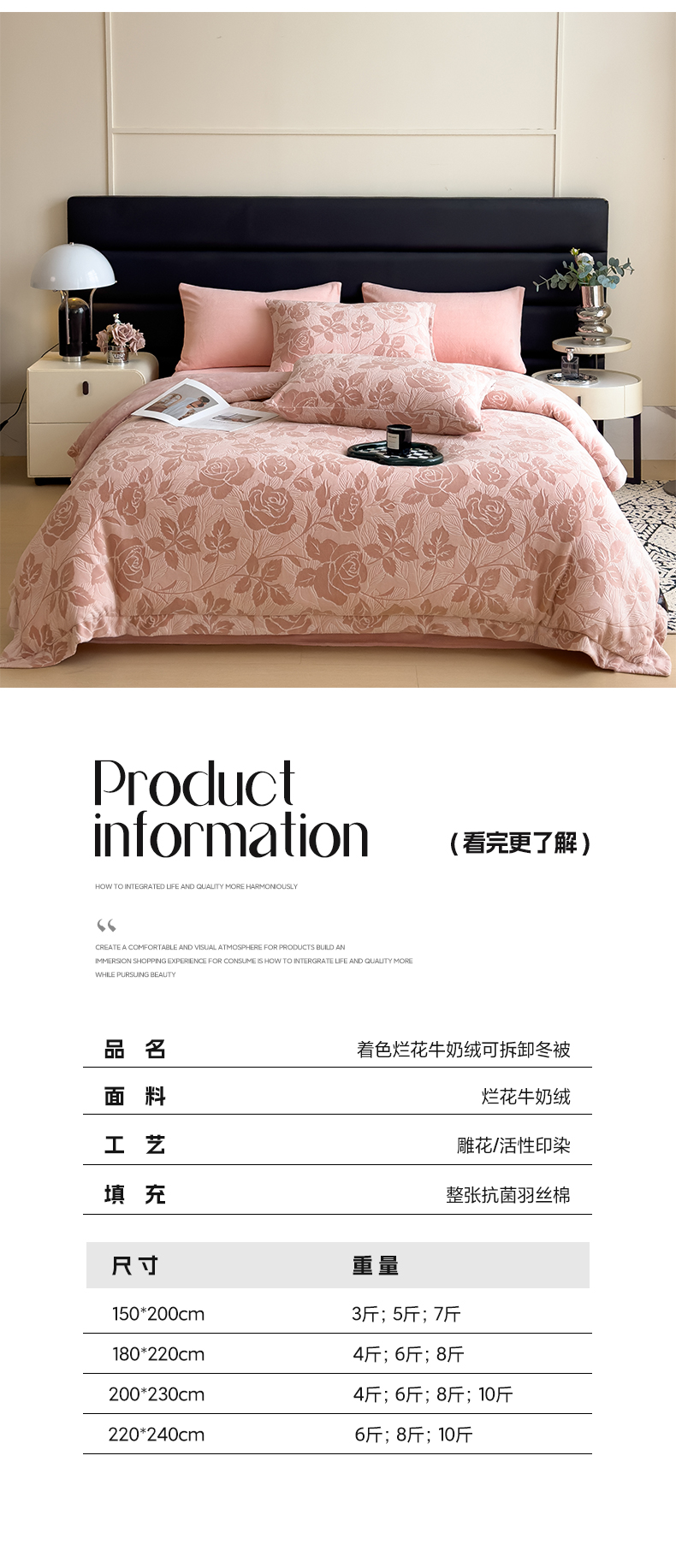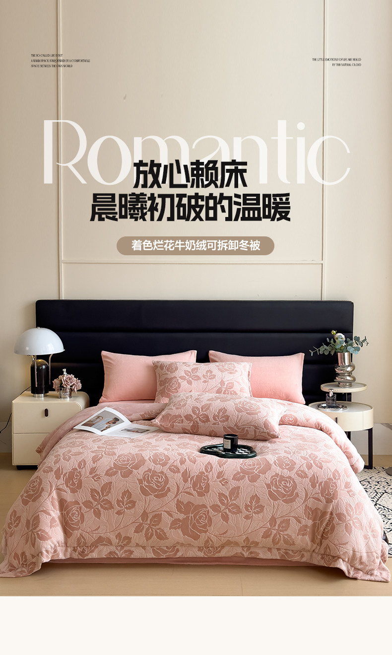 • 91家纺网 家纺一手货源 找家纺 米菲 2024新款着色烂花牛奶绒可拆洗冬被 花漾-粉