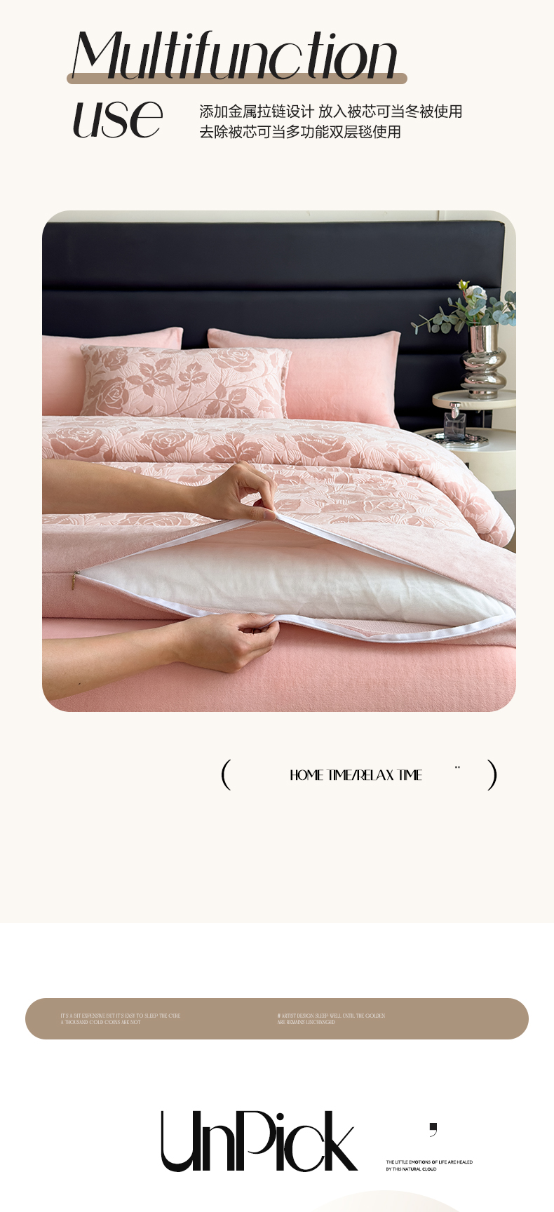 米菲 2024新款着色烂花牛奶绒可拆洗冬被 花漾-粉