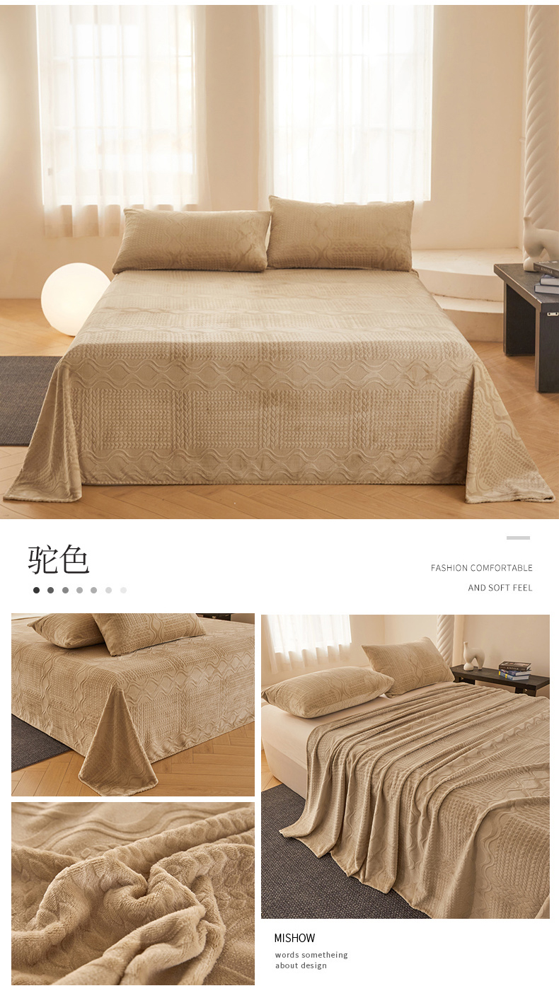 雅萱家纺 2024新款雕花牛奶绒床单套件 雕花床单-驼色
