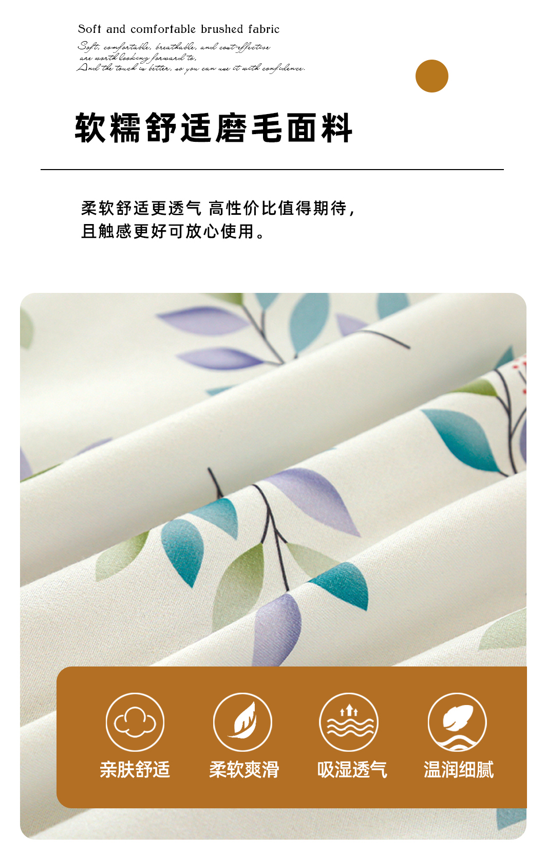 商品名称:友承 2025新款亲肤磨毛植物羊绒印花四件套 莫妮卡