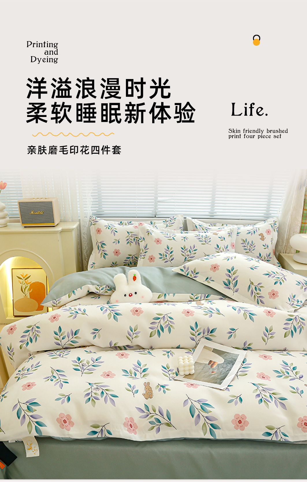 友承 2025新款亲肤磨毛植物羊绒印花四件套 莫妮卡