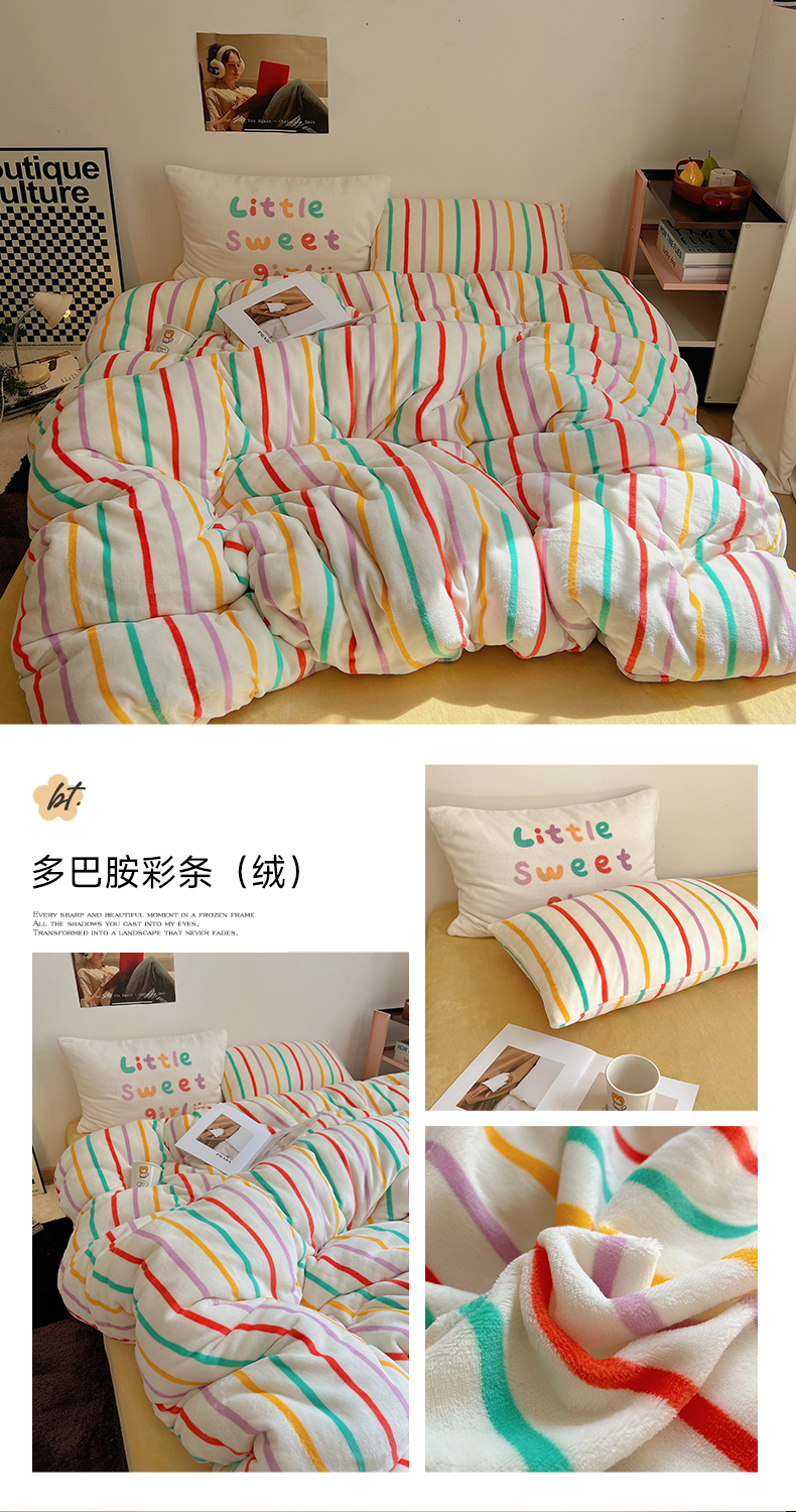 商品名称:桃喜 2024新款牛奶绒条纹系列四件套 多巴胺彩条(绒)