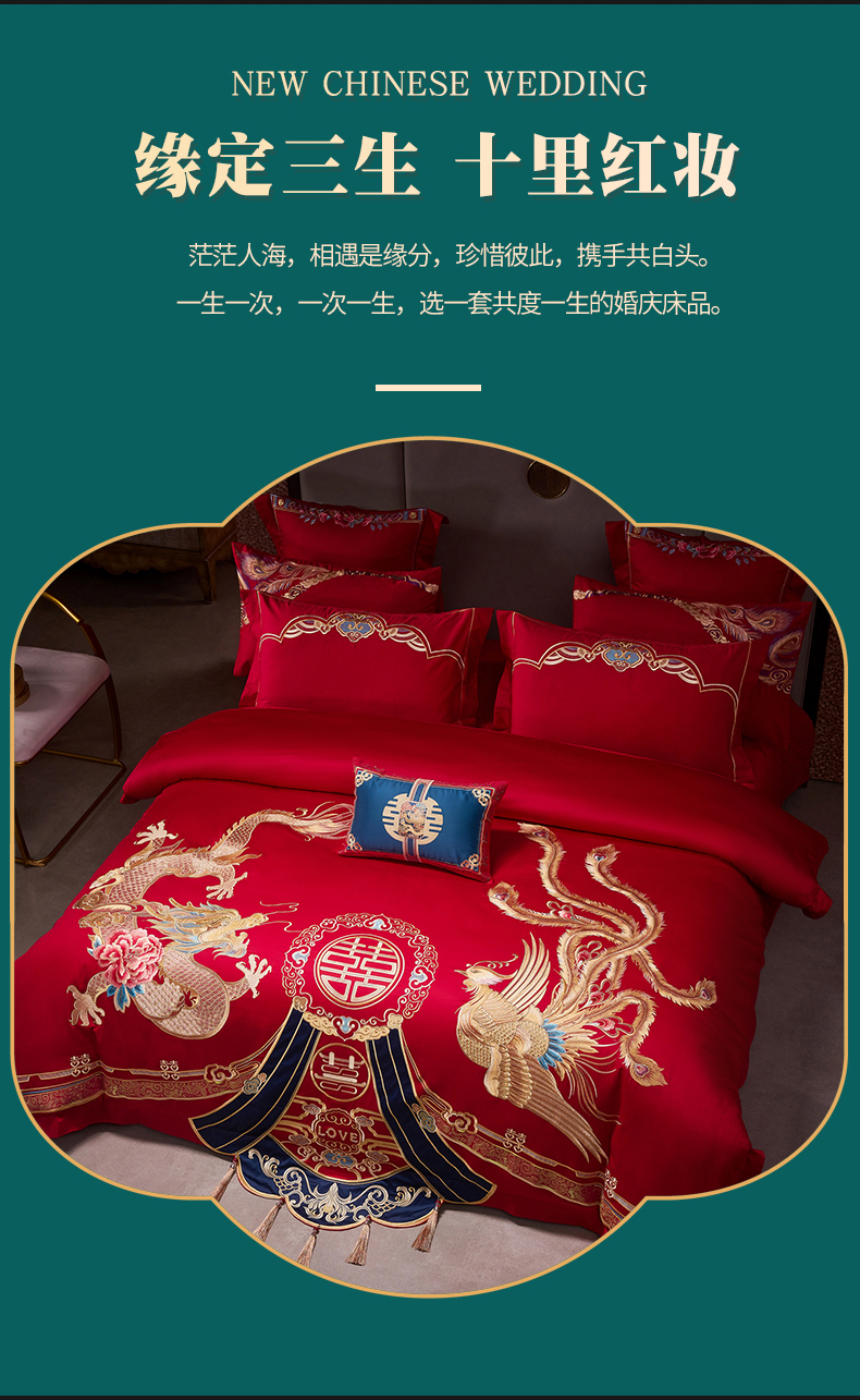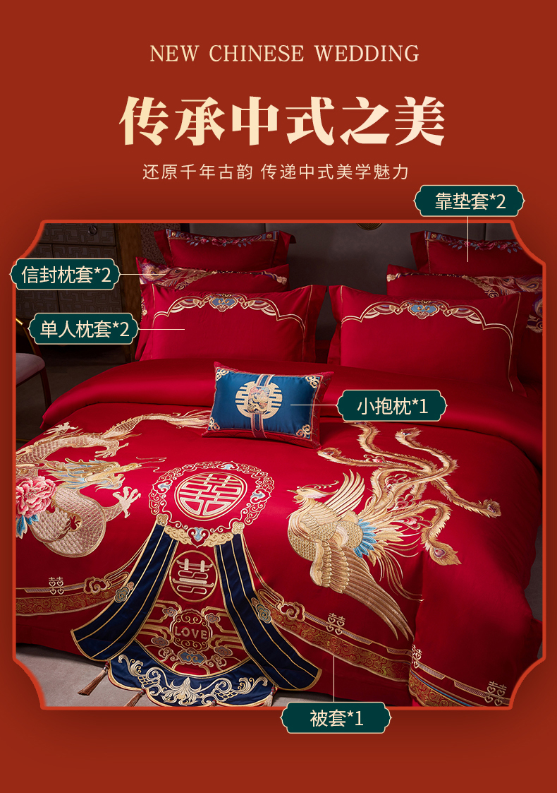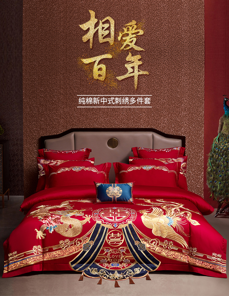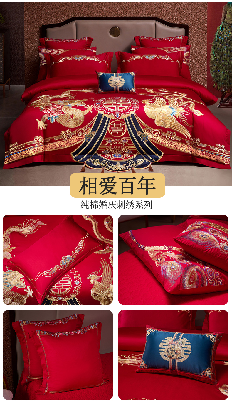 当前位置: 91家纺网 > 商品网购 > 床品套件 > 多件套 > 多件套 > 红番天婚庆 2025新款全棉刺绣新中式婚庆四件套多件套相爱百年