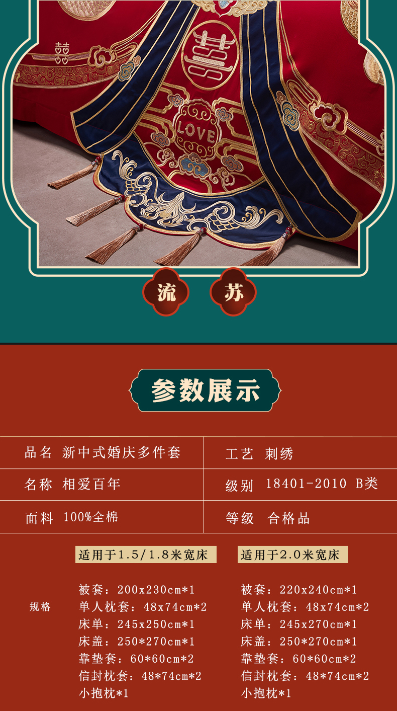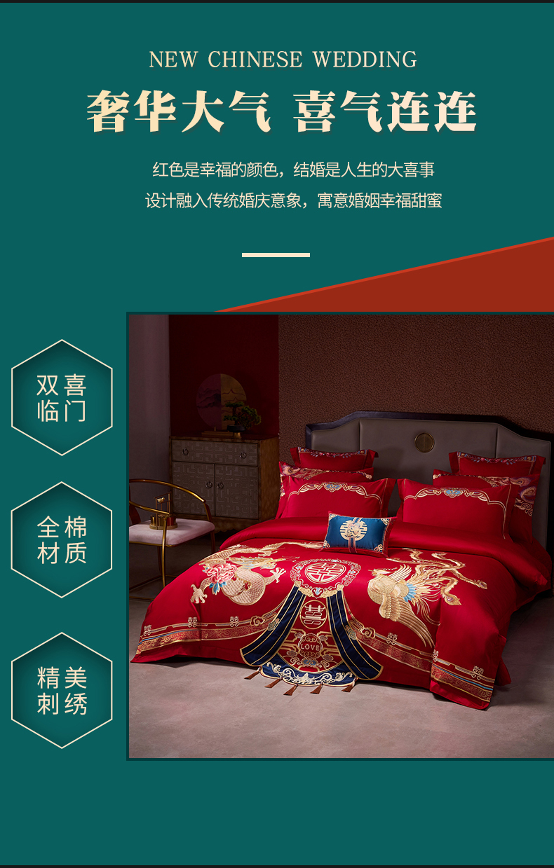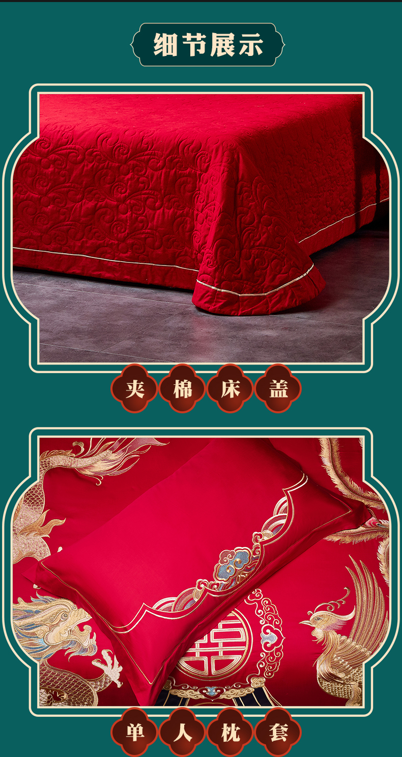 当前位置: 91家纺网 > 商品网购 > 床品套件 > 多件套 > 多件套 > 红番天婚庆 2025新款全棉刺绣新中式婚庆四件套多件套相爱百年
