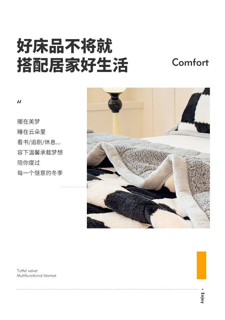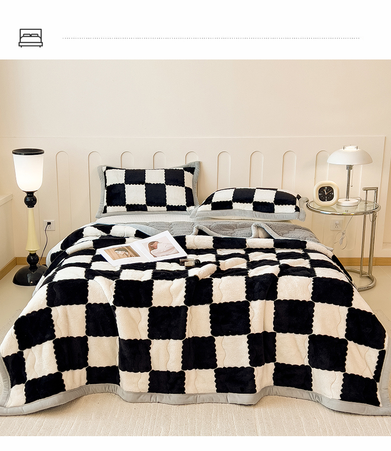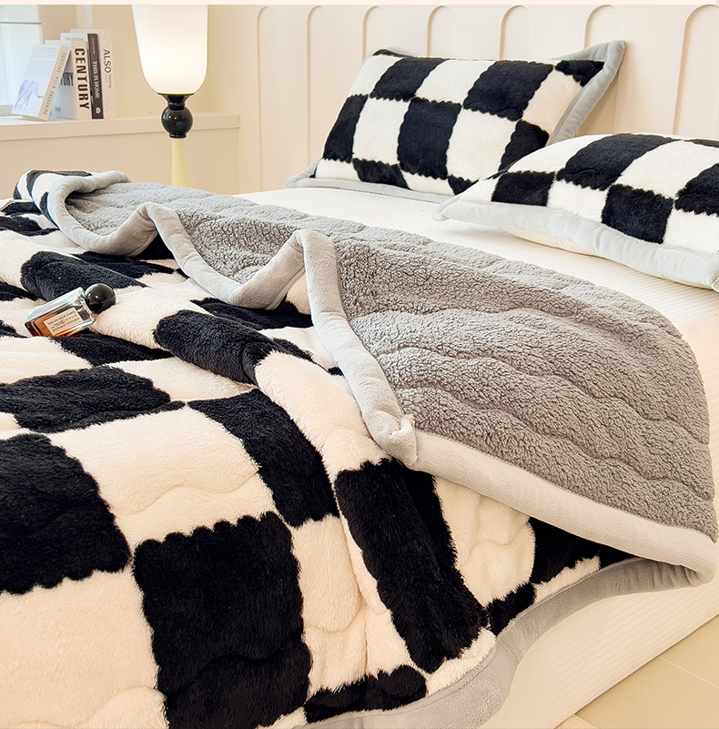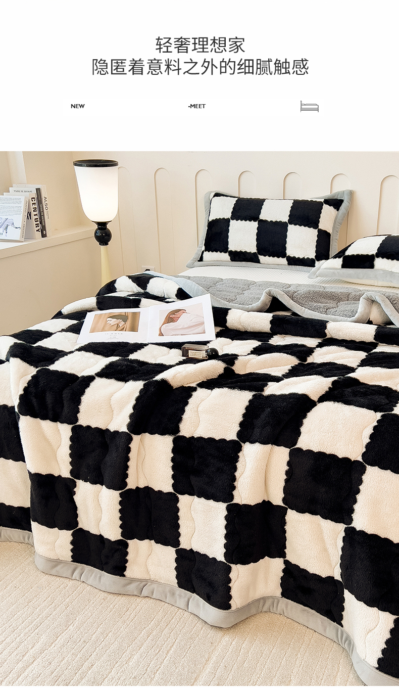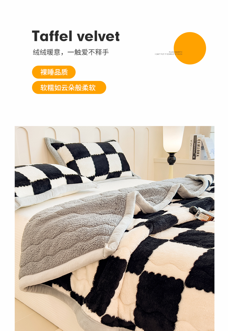 当前位置: 91家纺网 > 商品网购 > 毛毯休闲毯绒毯 > 毛毯 > 慕木家纺 2025新款A类北极绒棋盘格三层夹棉双面毛毯 三层夹棉毛毯-棋盘格黑白+灰