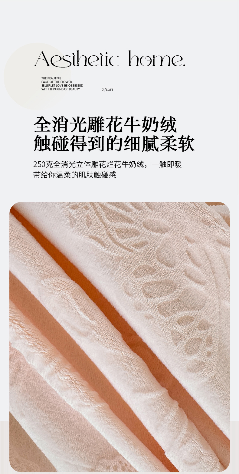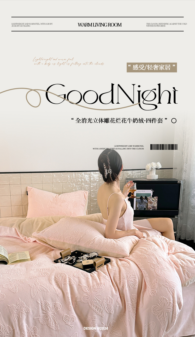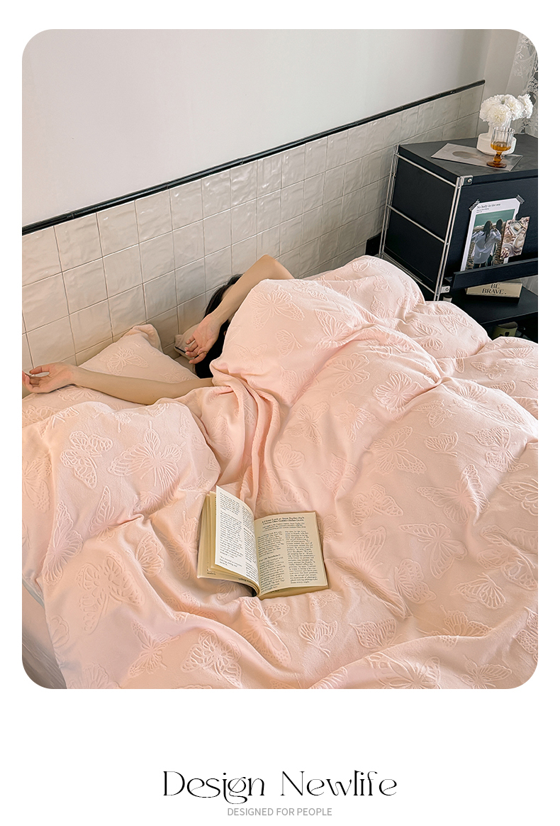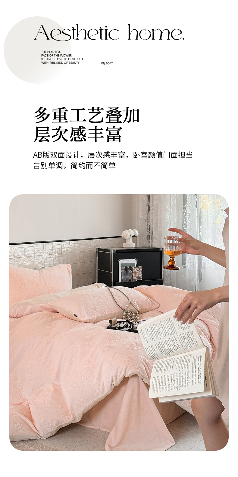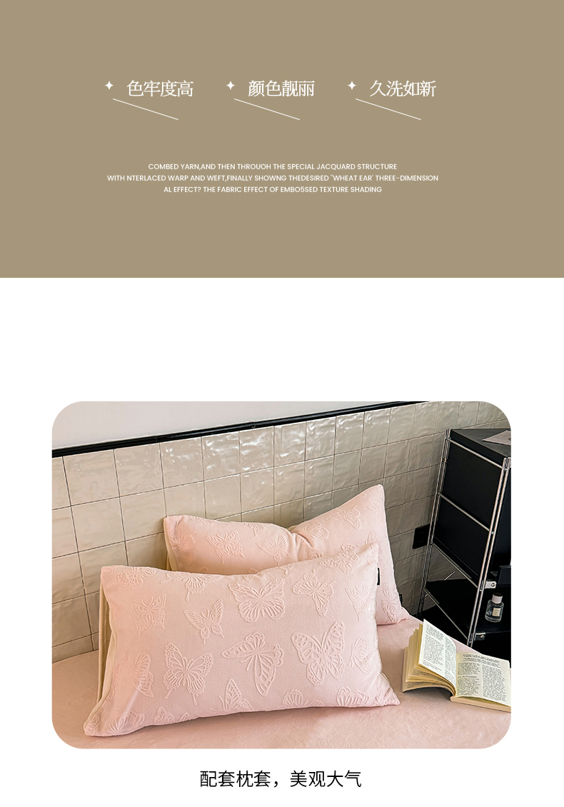 商品名称:若未家居 LOVEWE HOUSE 2025新款AB版250克全消光立体雕花烂花牛奶绒四件套-蝶舞 蝶舞-粉拼米