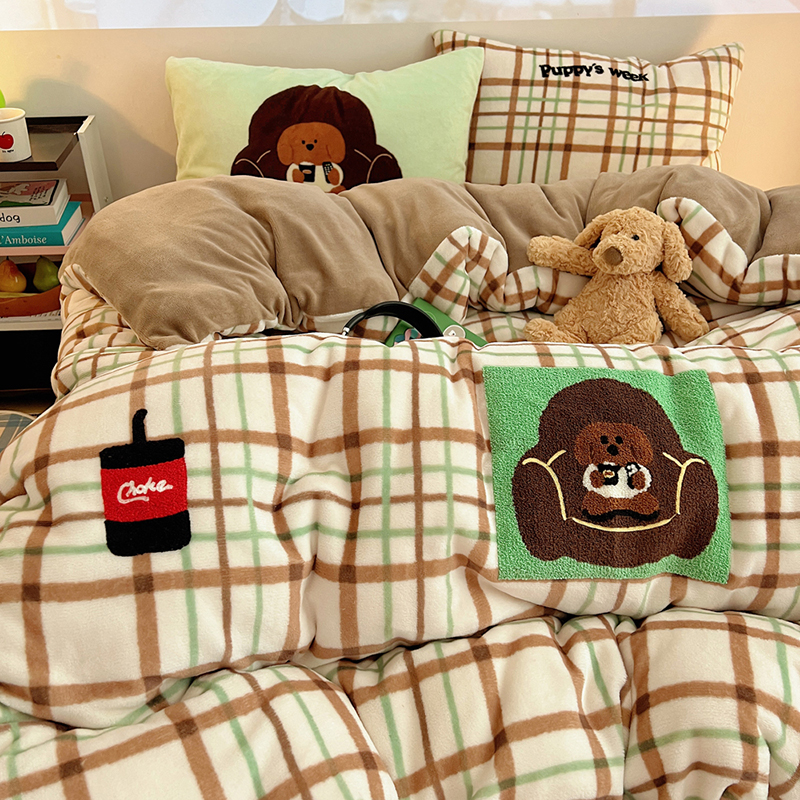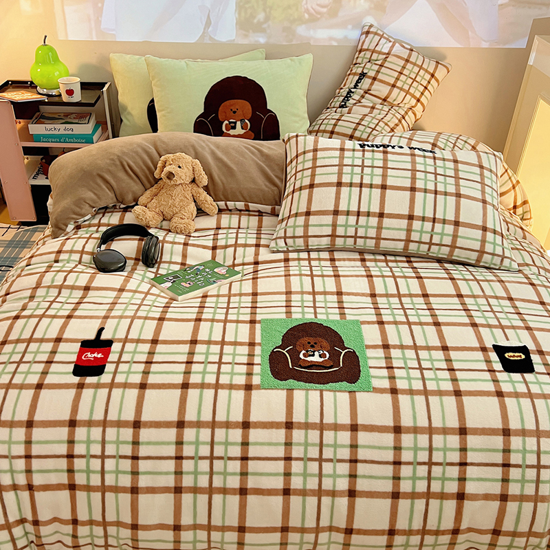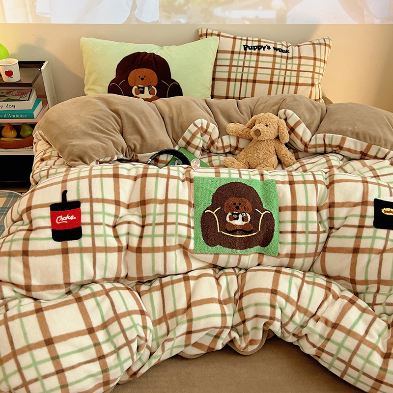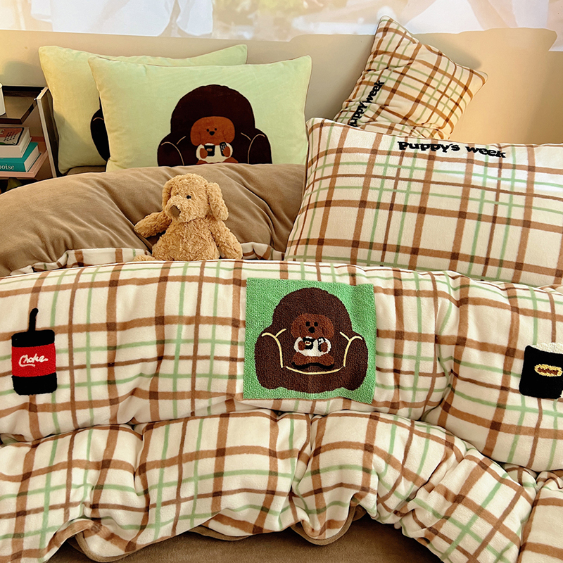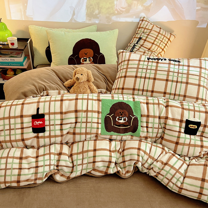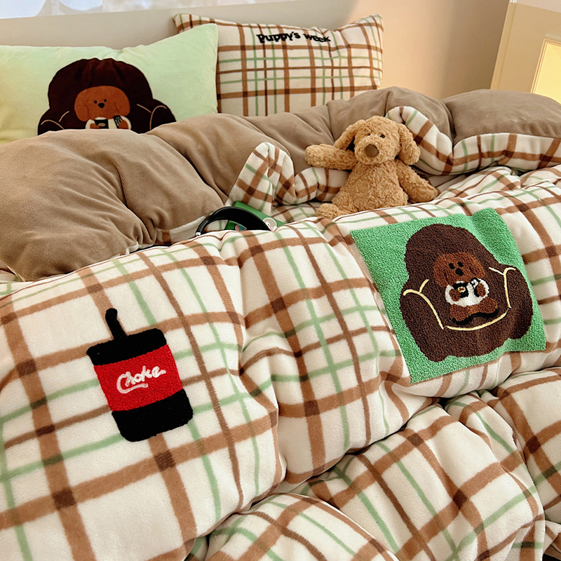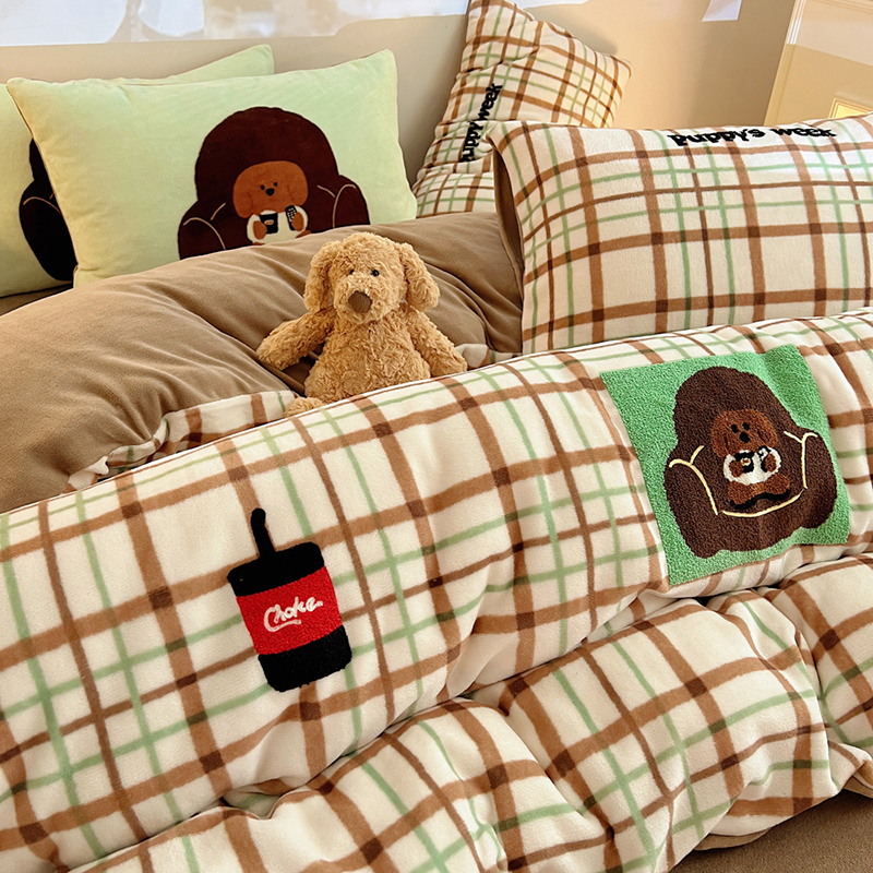 桃喜 2024新款230g牛奶绒绣花系列四件套 沙发小狗
