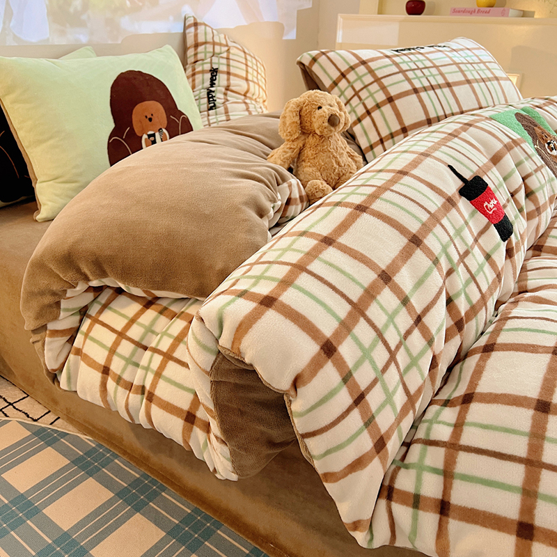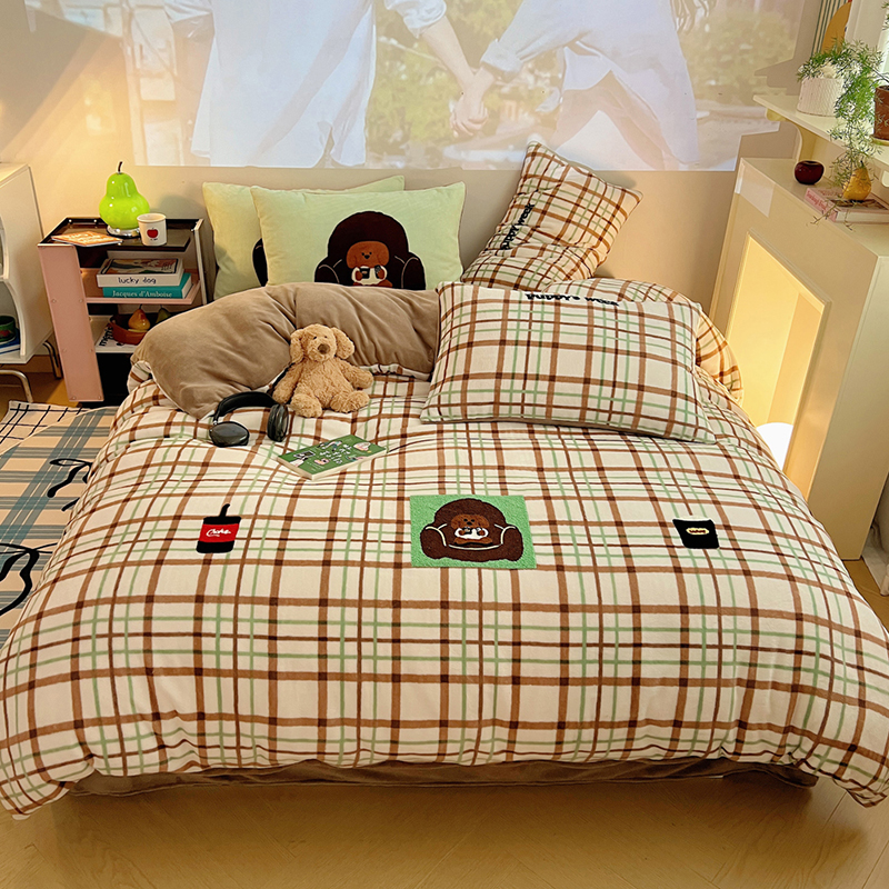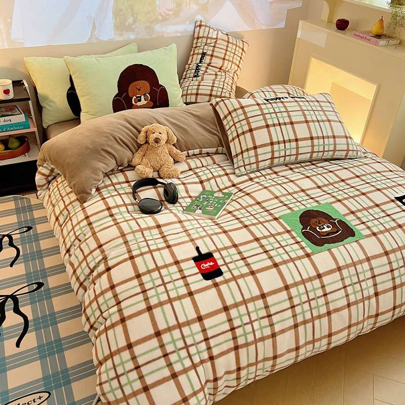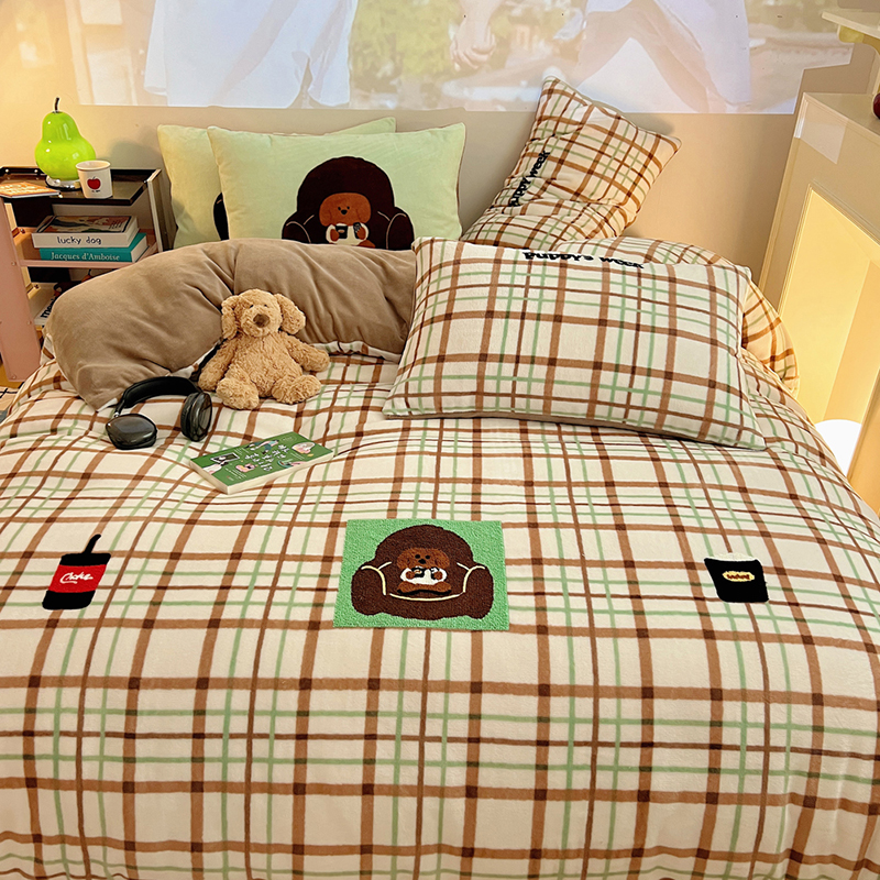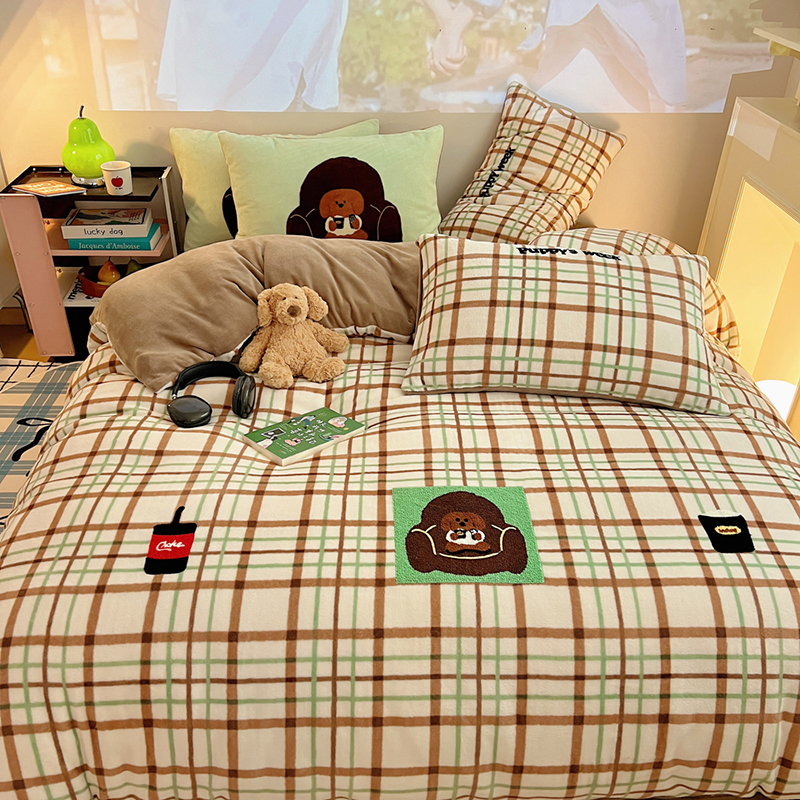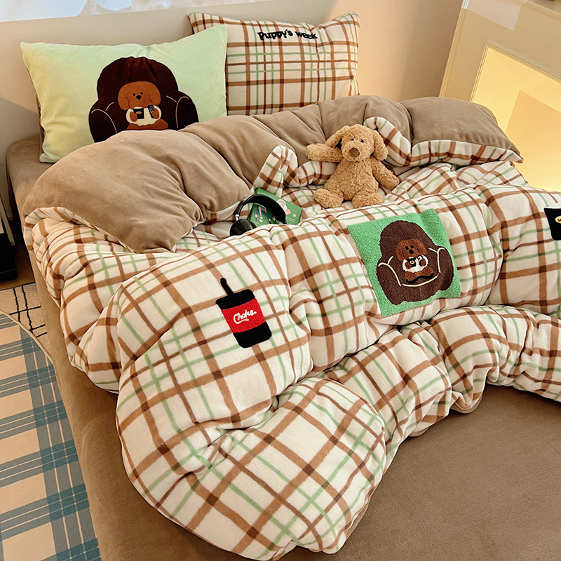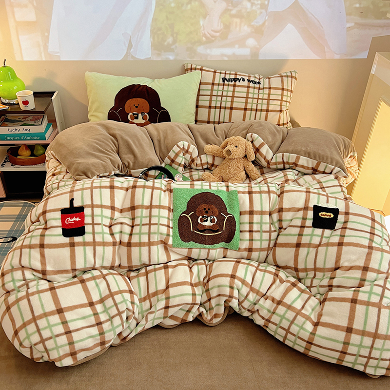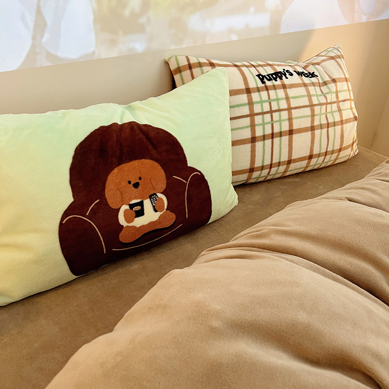 桃喜 2024新款230g牛奶绒绣花系列四件套 沙发小狗