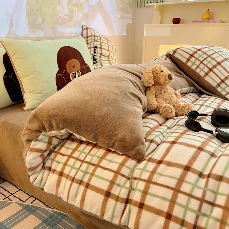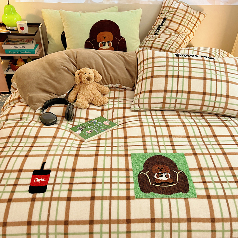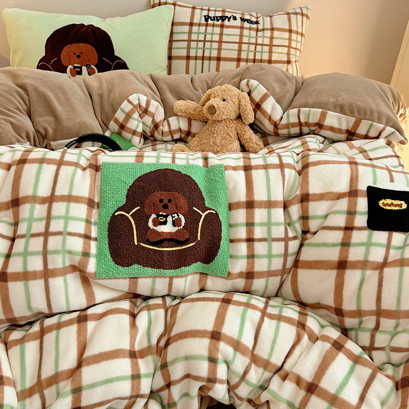 (总)桃喜 2025新款牛奶绒线条系列四件套 【会员-5】,黑白小狗,咖色线条狗勾