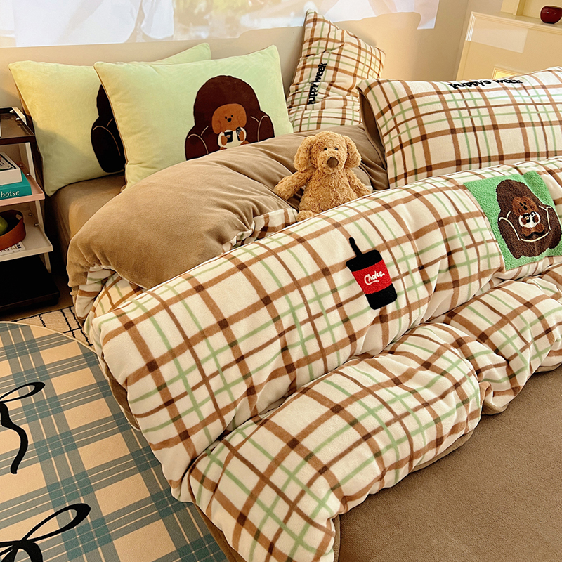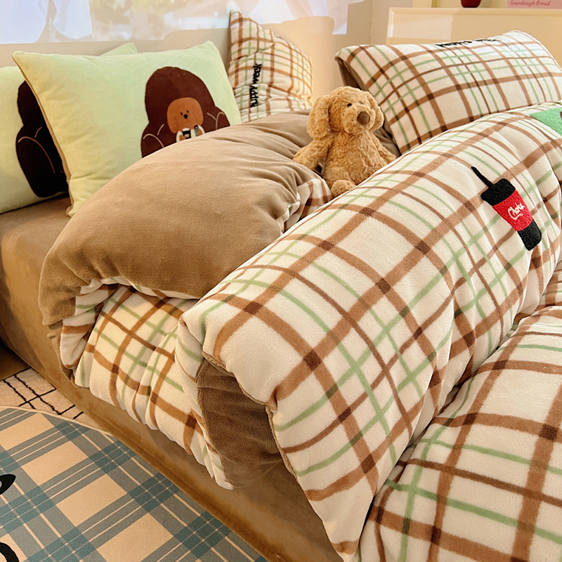 (总)桃喜 2025新款秋冬牛奶绒床笠三件套(会员-3),美拉德甜点,三个小伙伴,三只小猫,圣诞雪人,小猫的早八时刻,组合图
