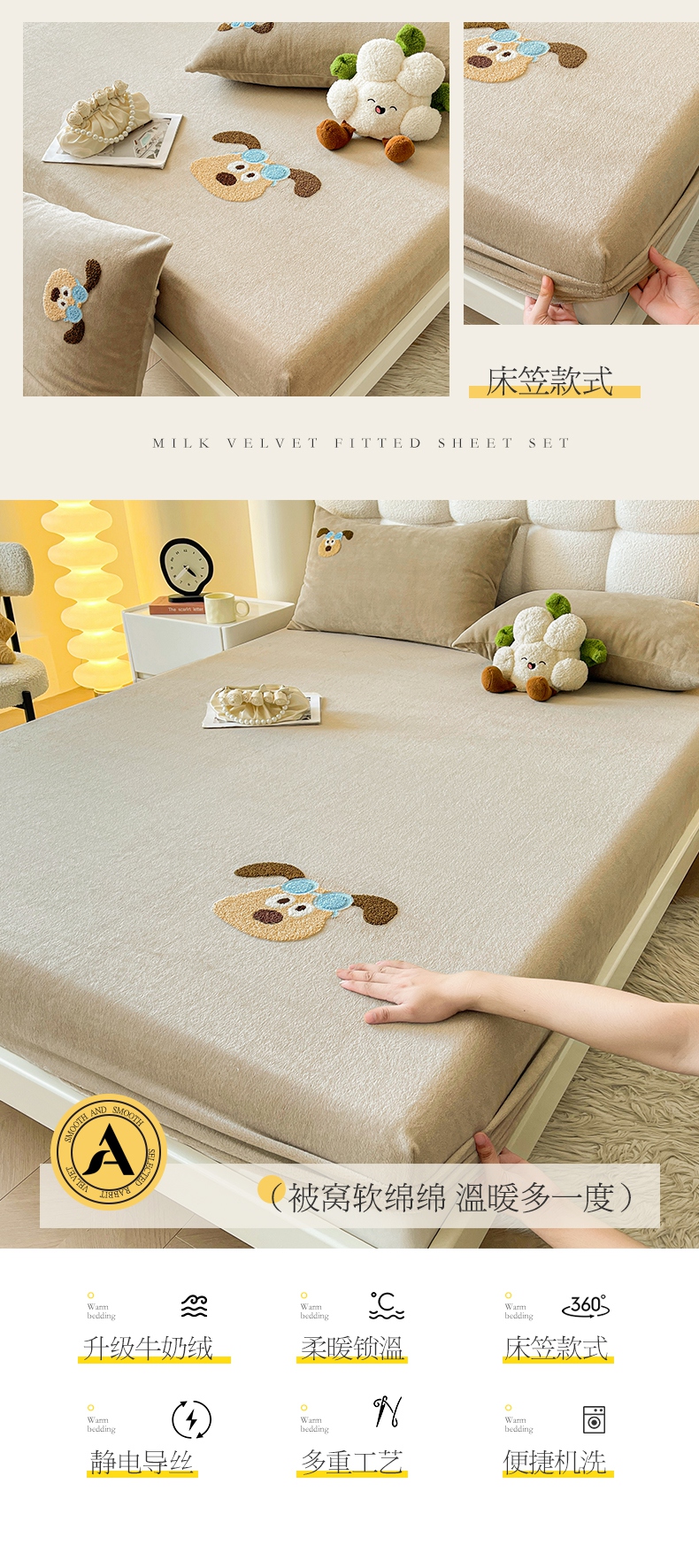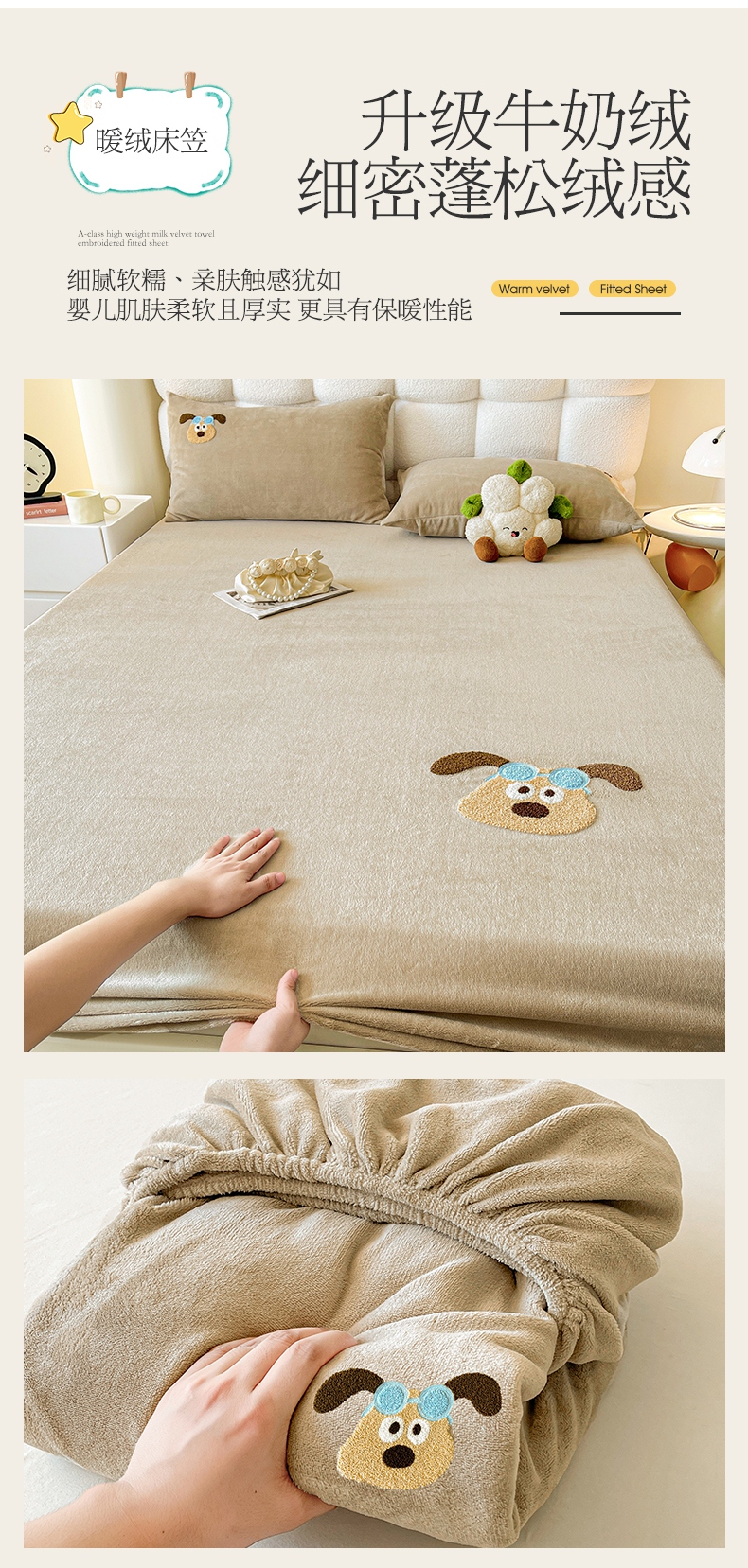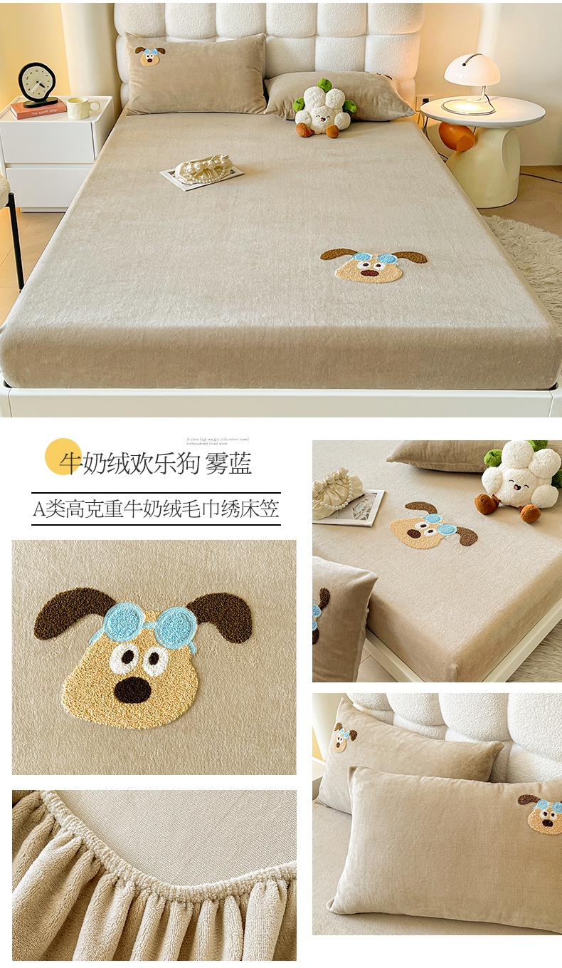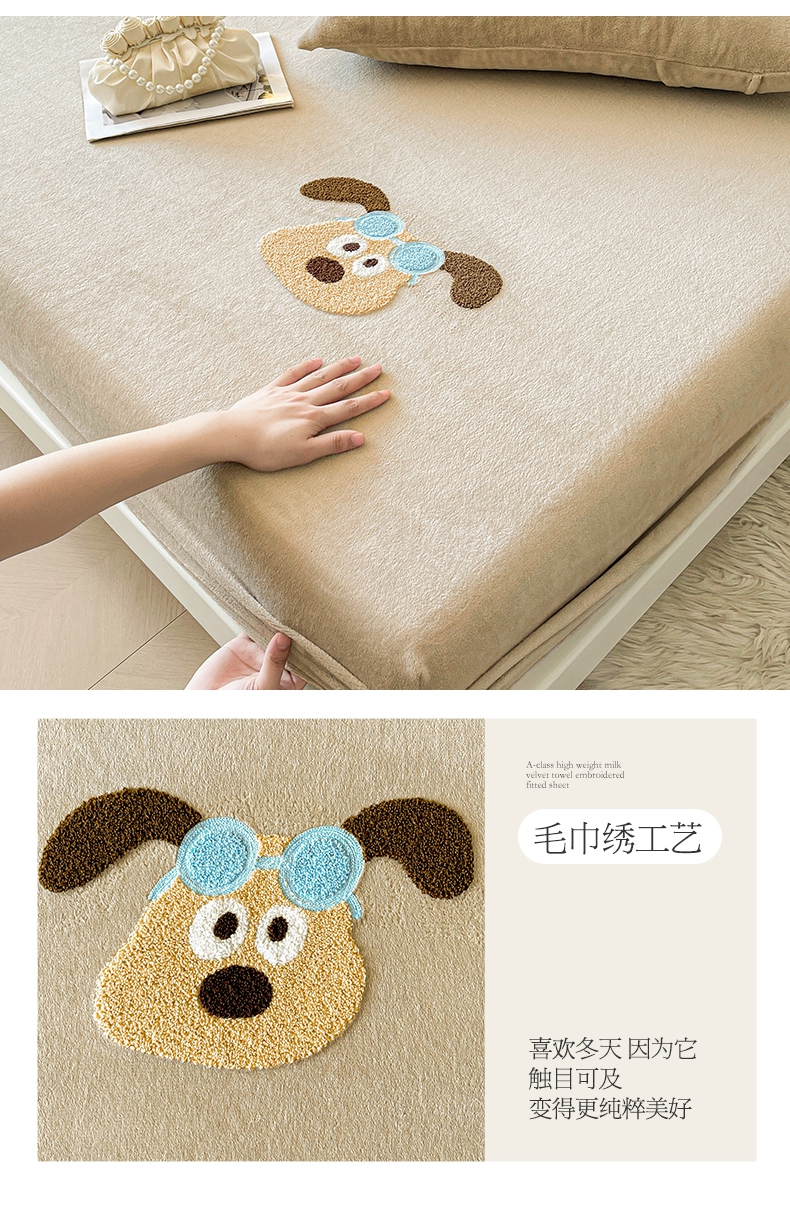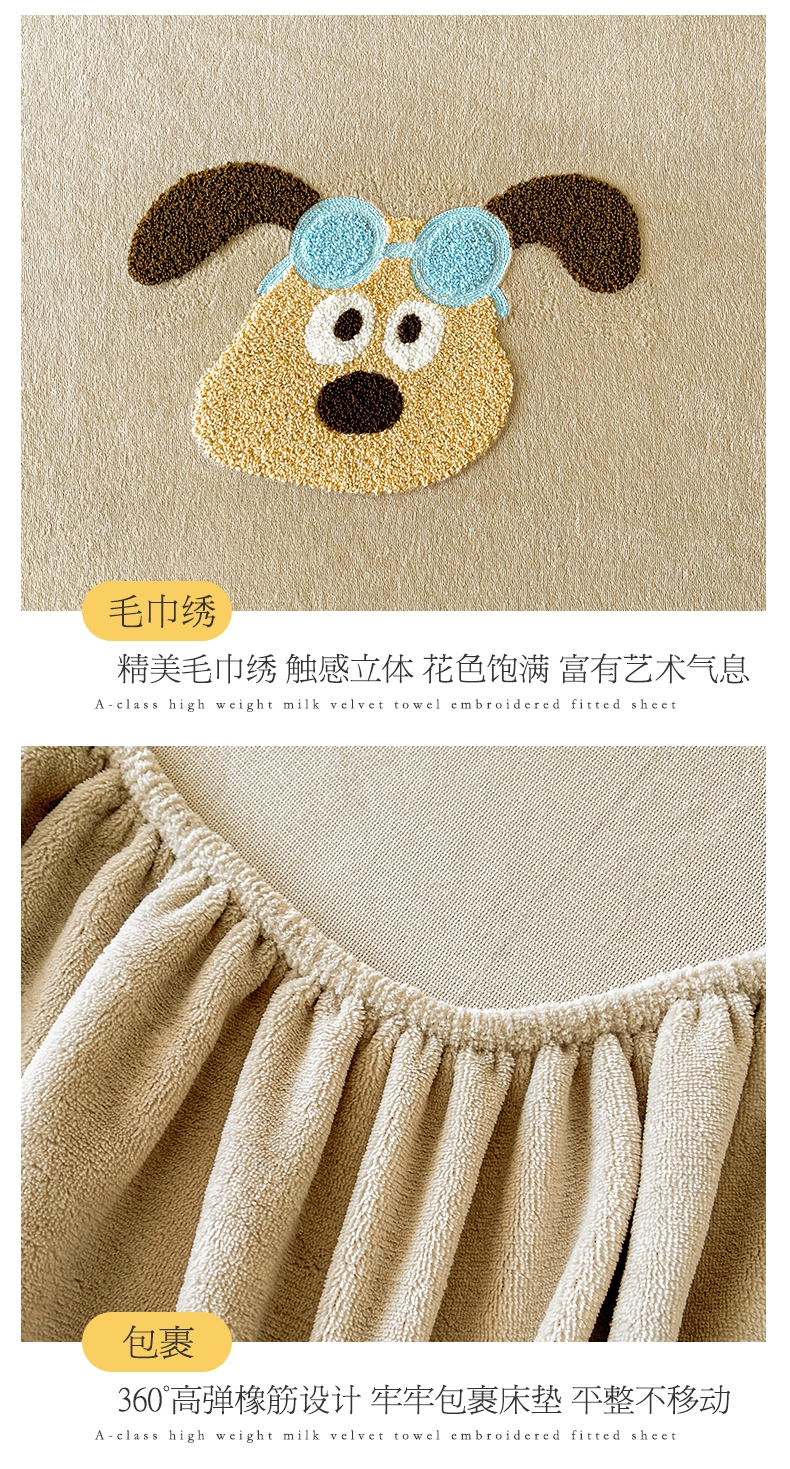 居眠 2024新款单层高克重牛奶绒毛巾绣床笠 牛奶绒泡芙狗 浅驼
