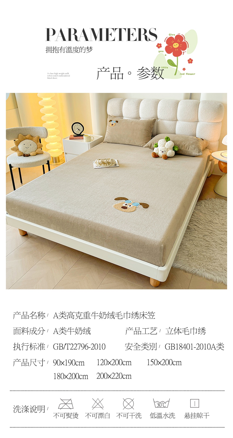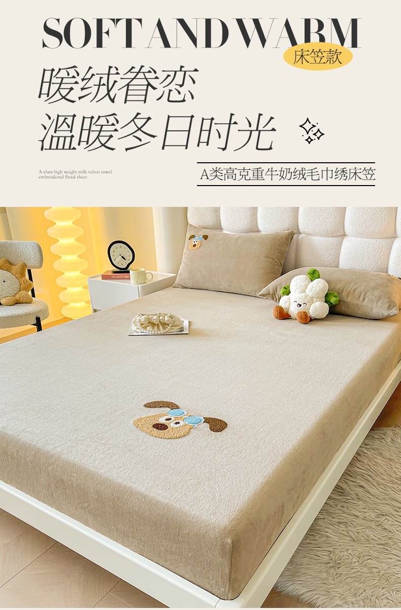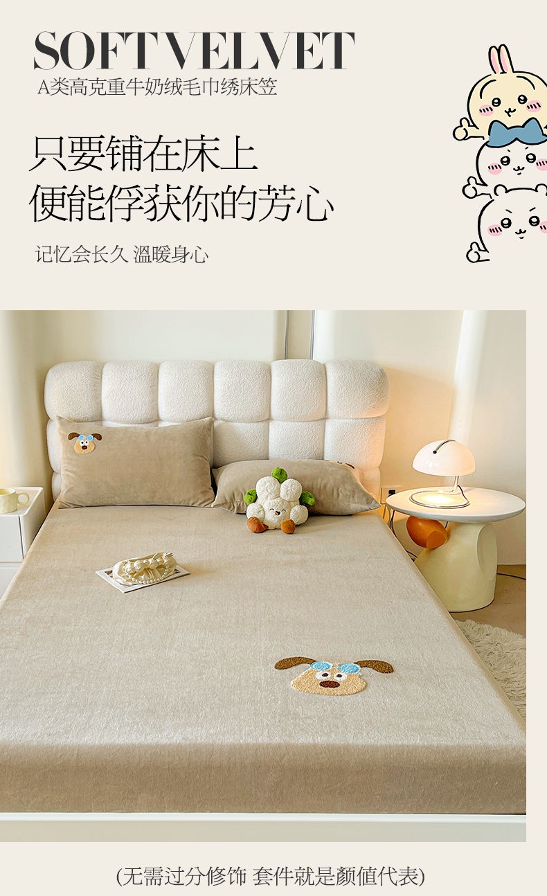 商品名称:居眠 2024新款单层高克重牛奶绒毛巾绣床笠 牛奶绒泡芙狗 浅驼