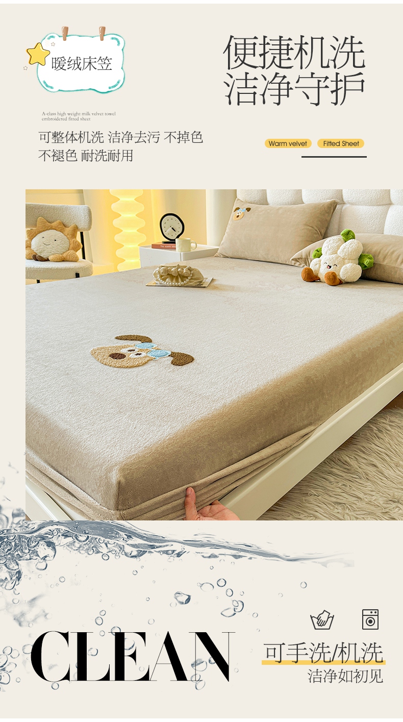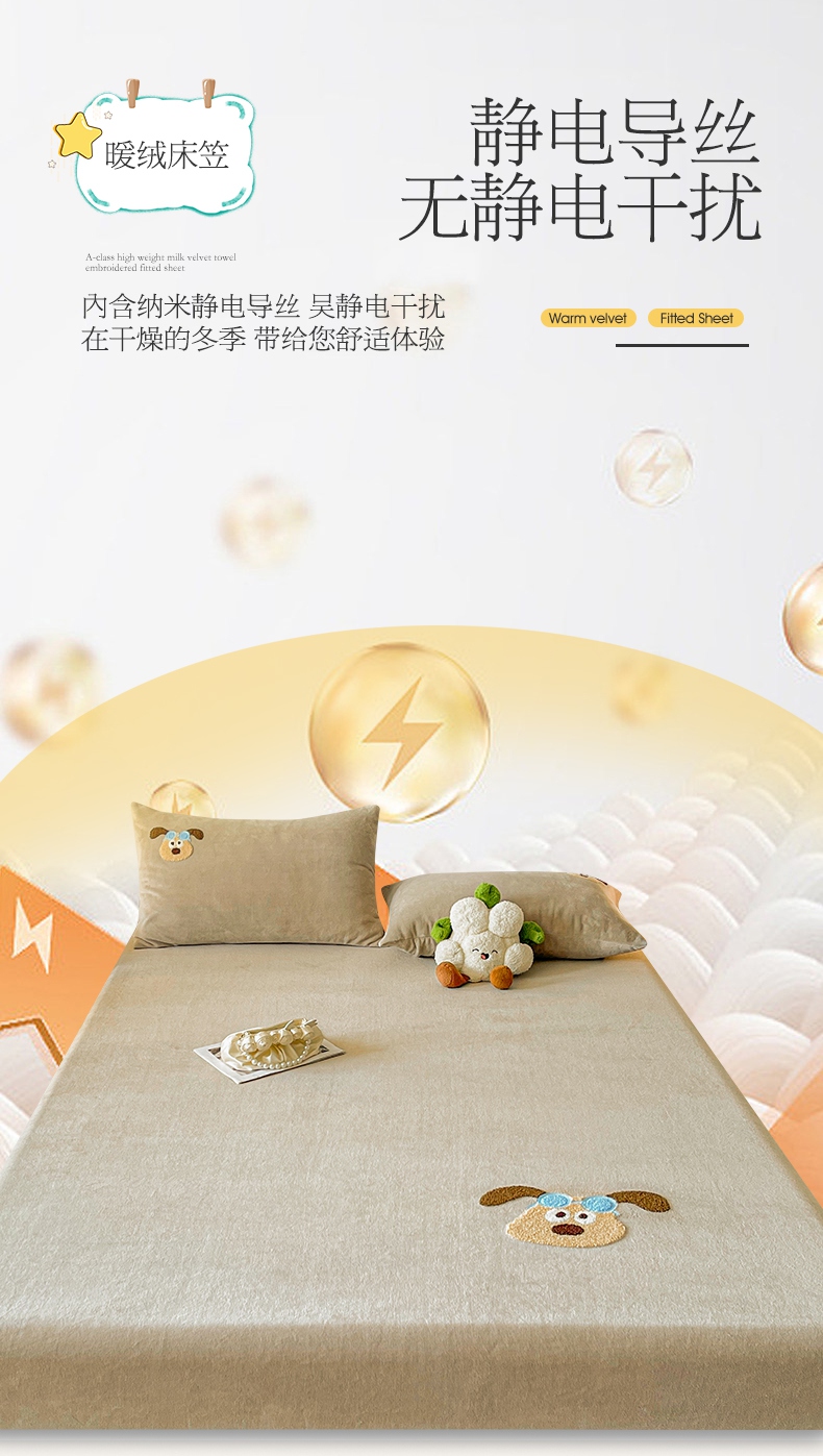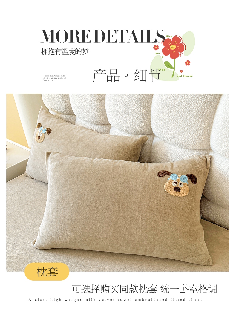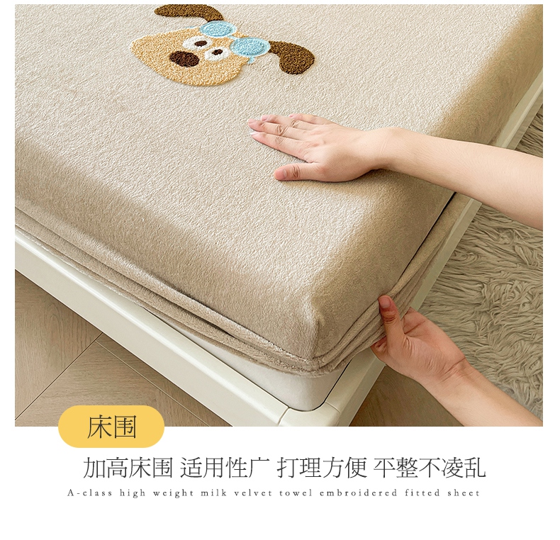 商品名称:居眠 2024新款单层高克重牛奶绒毛巾绣床笠 牛奶绒泡芙狗 浅驼