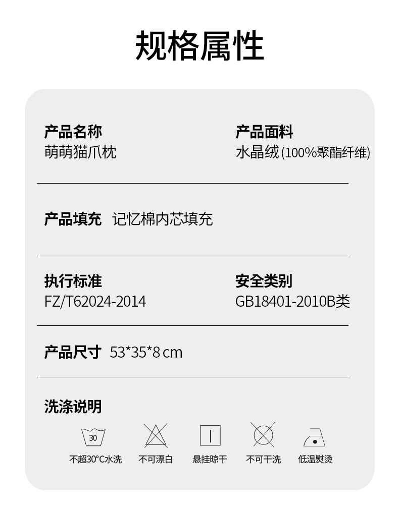 商品名称:(总)仁宇枕业 2024新款水晶绒贴布绣0-6-12岁婴幼儿童幼儿园学生枕头萌萌猫爪记忆枕芯