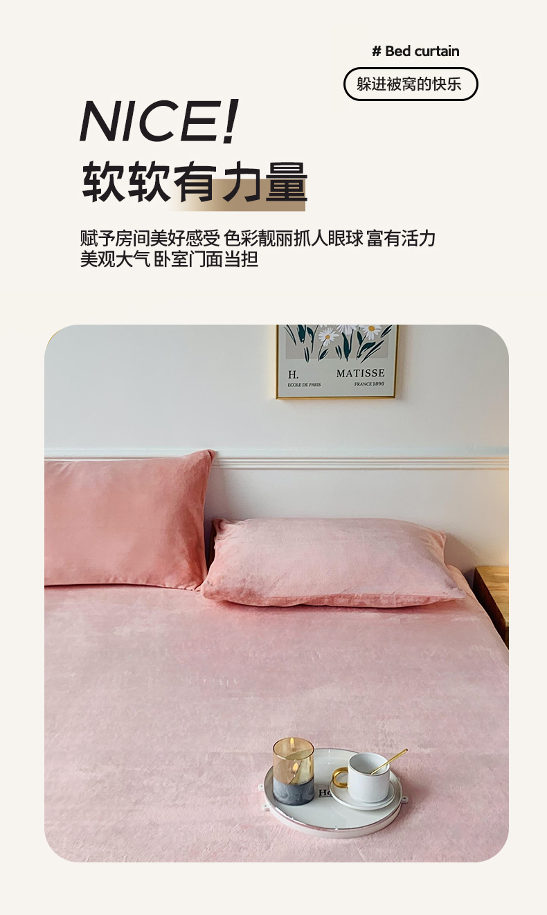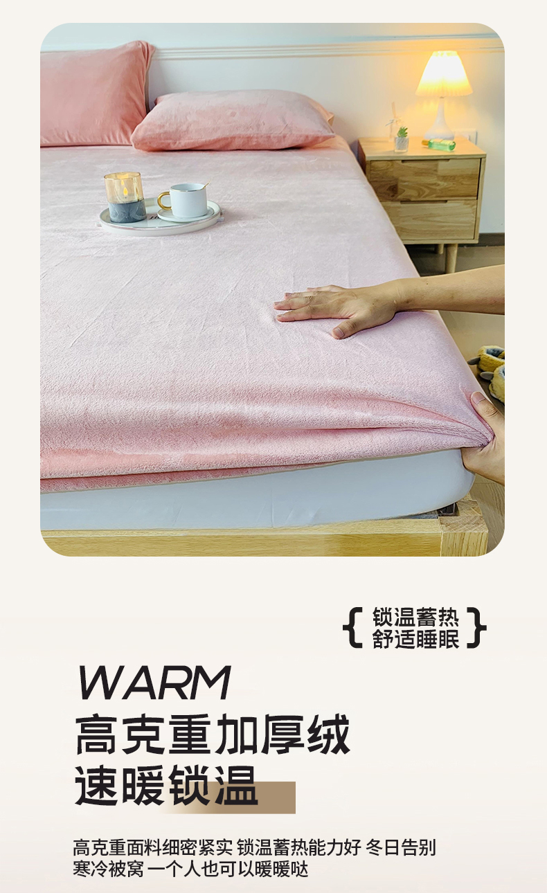 泽西家纺 2024新款高克重加厚牛奶绒单床笠 跨境 外贸 牛奶绒床笠-梦幻粉