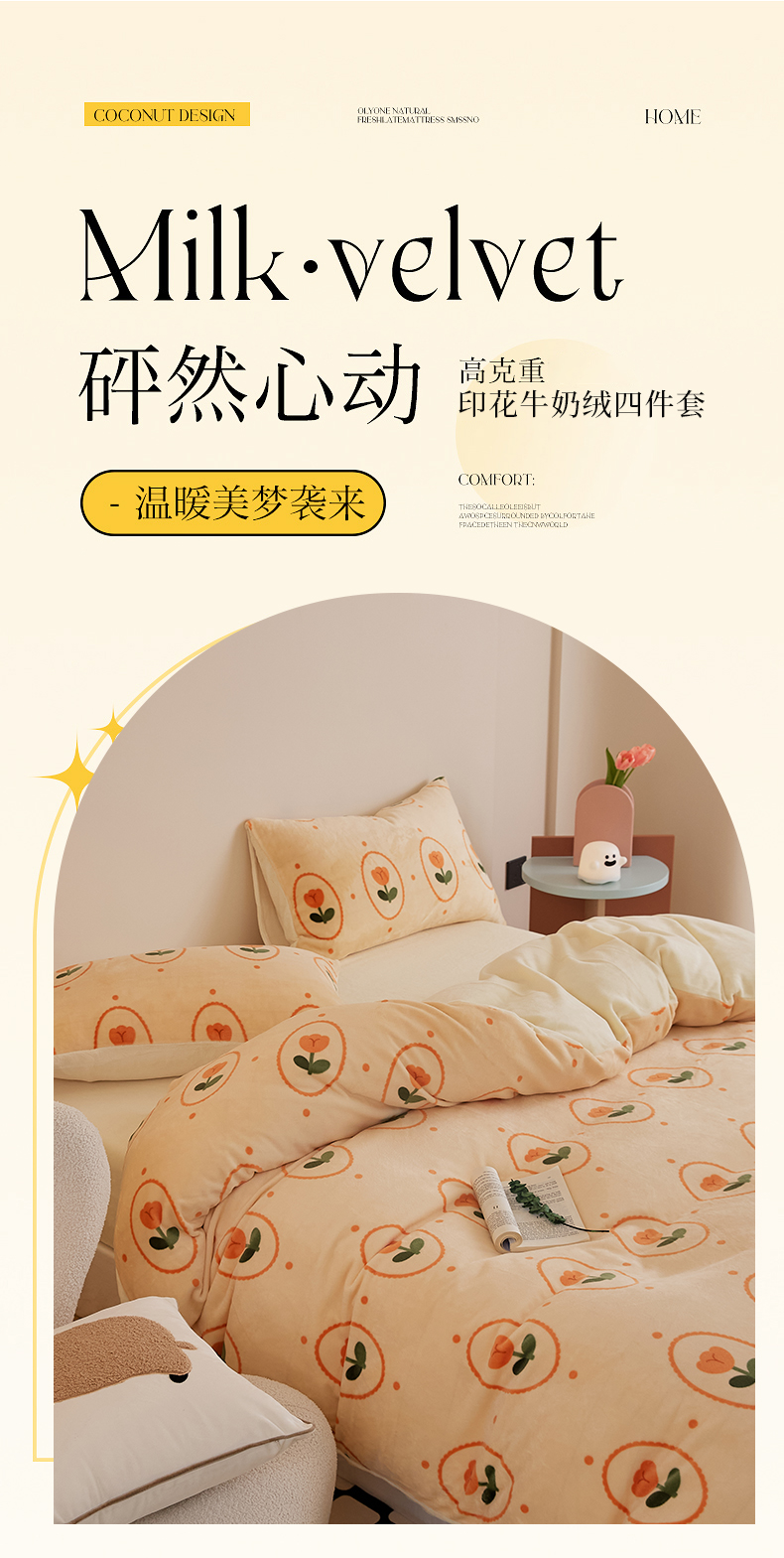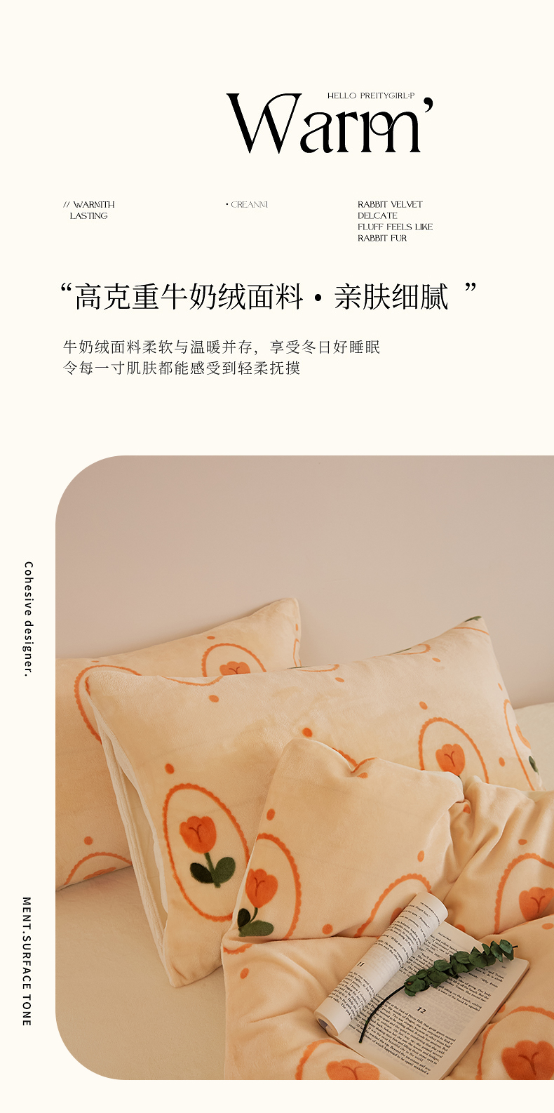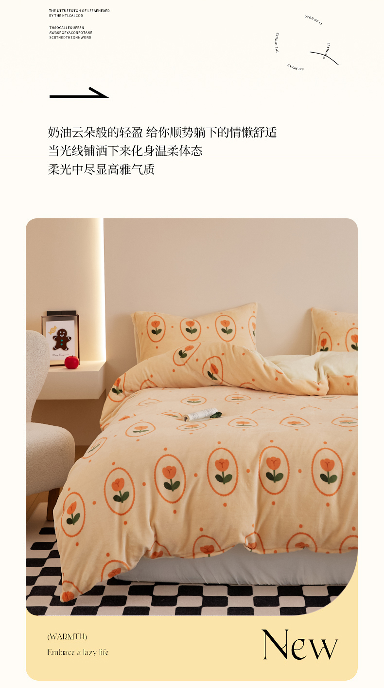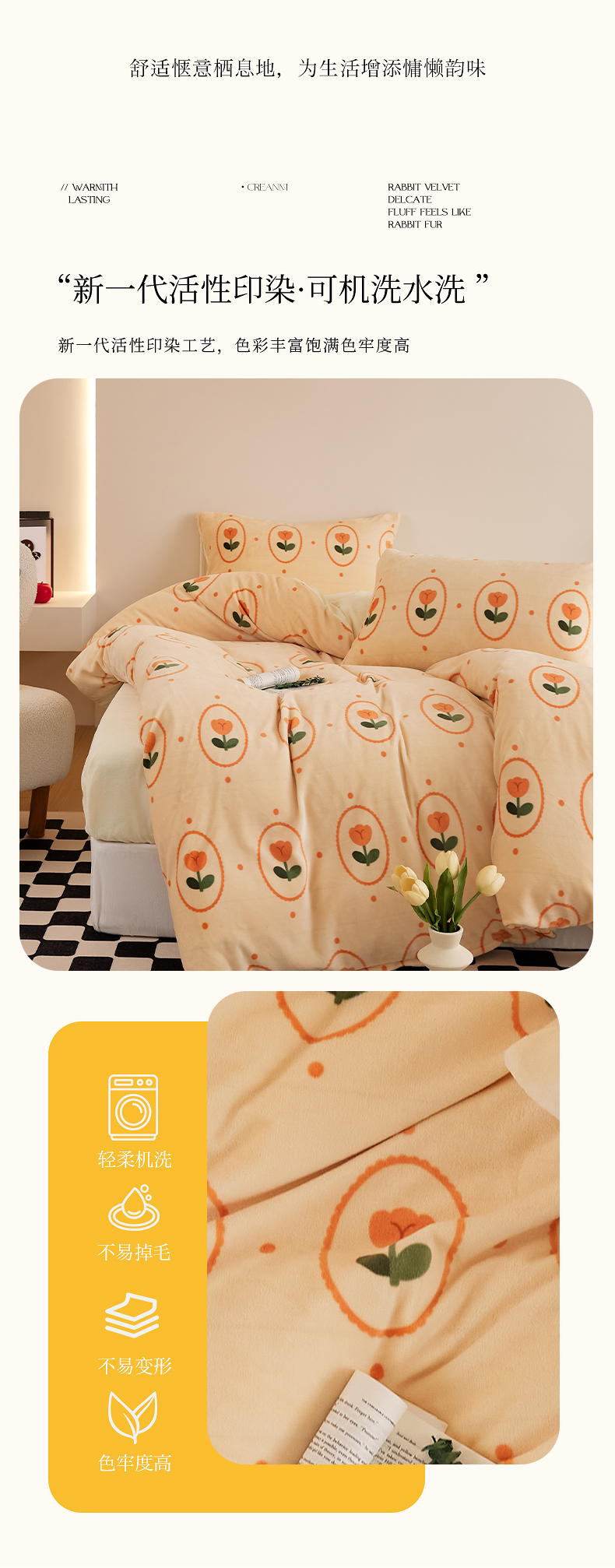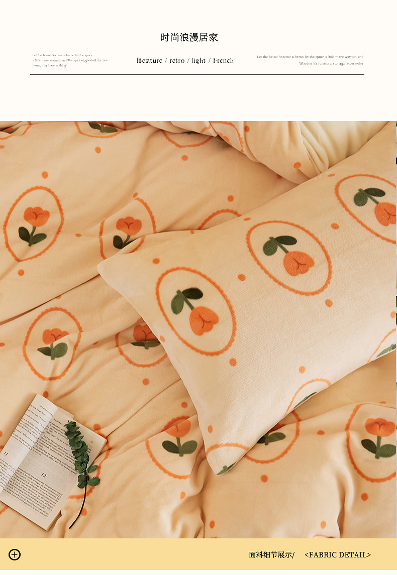 当前位置: 91家纺网 > 商品网购 > 床品套件 > 四件套 > 牛奶绒四件套 > 时光里 2024新款230克牛奶绒印花四件套 郁金香-橘