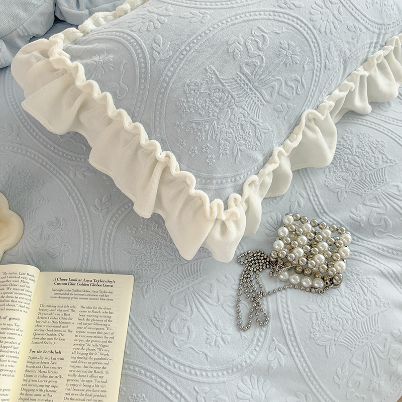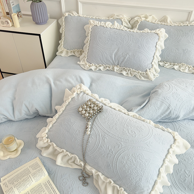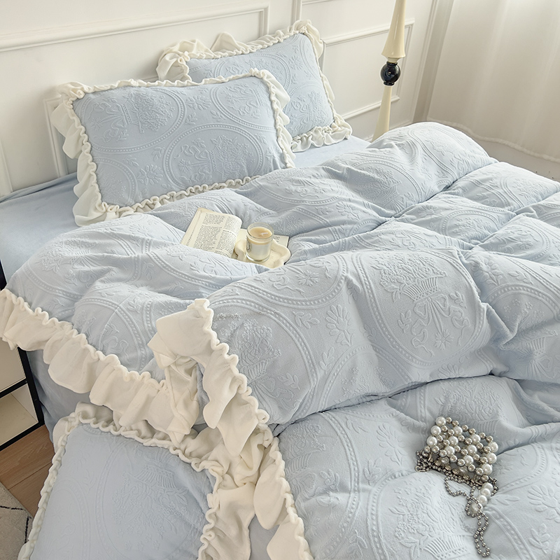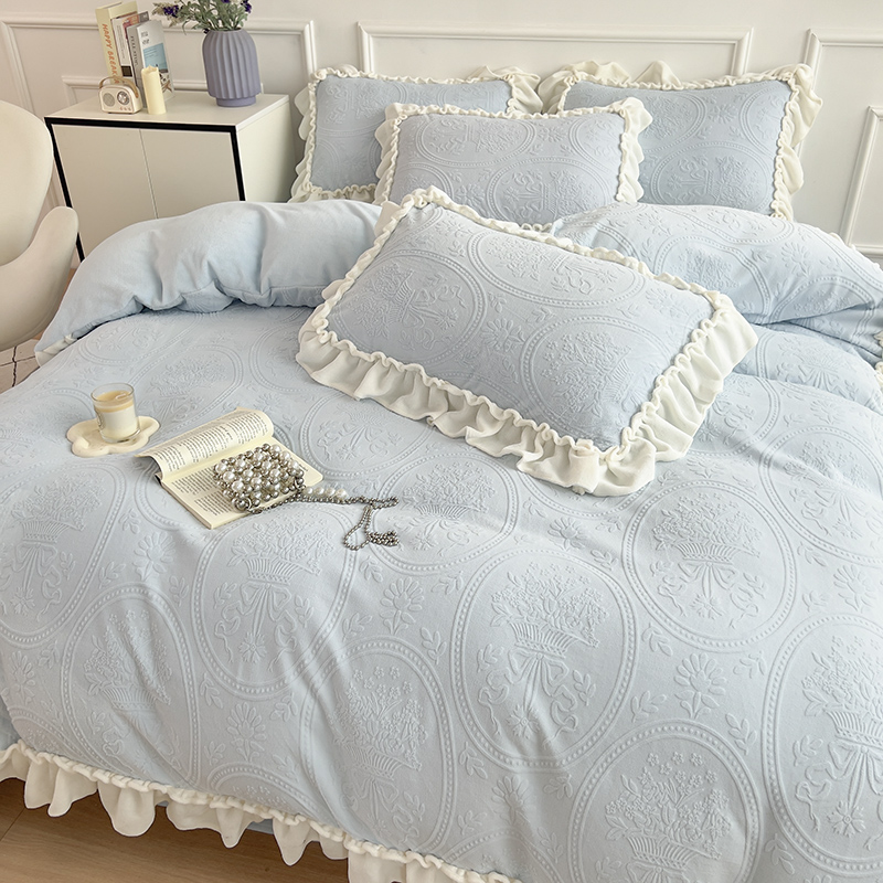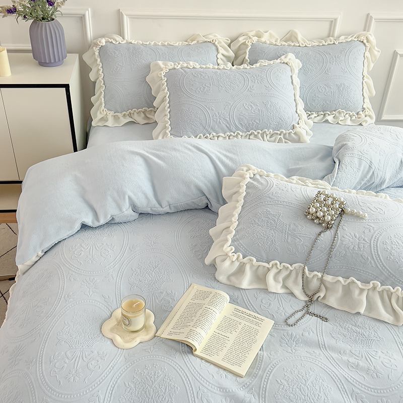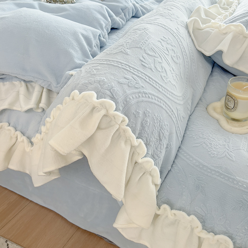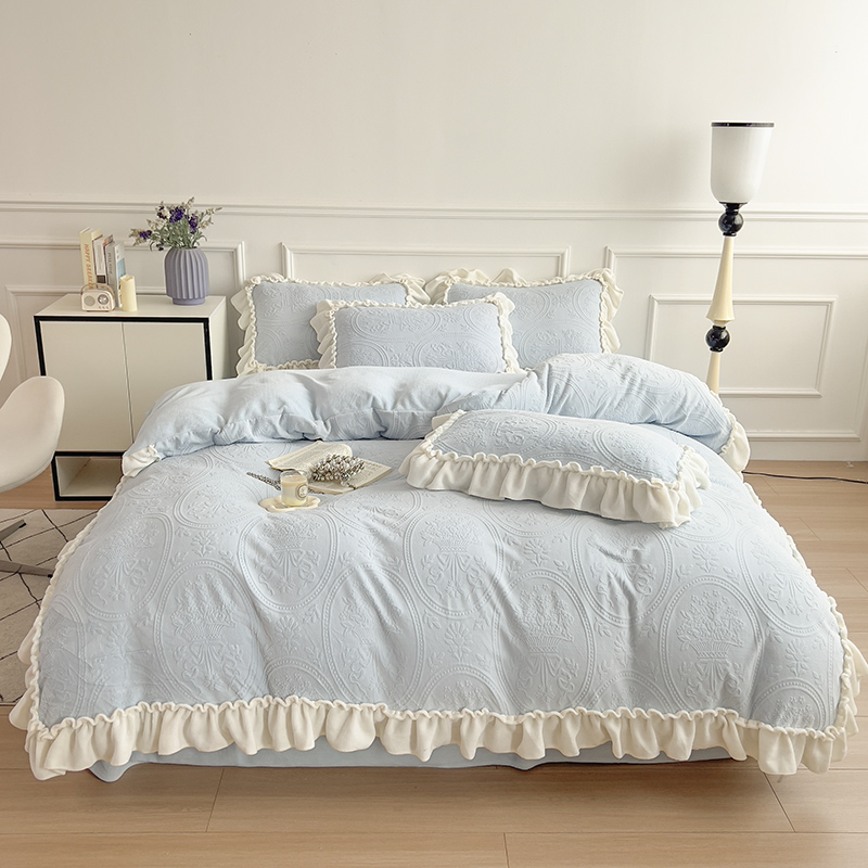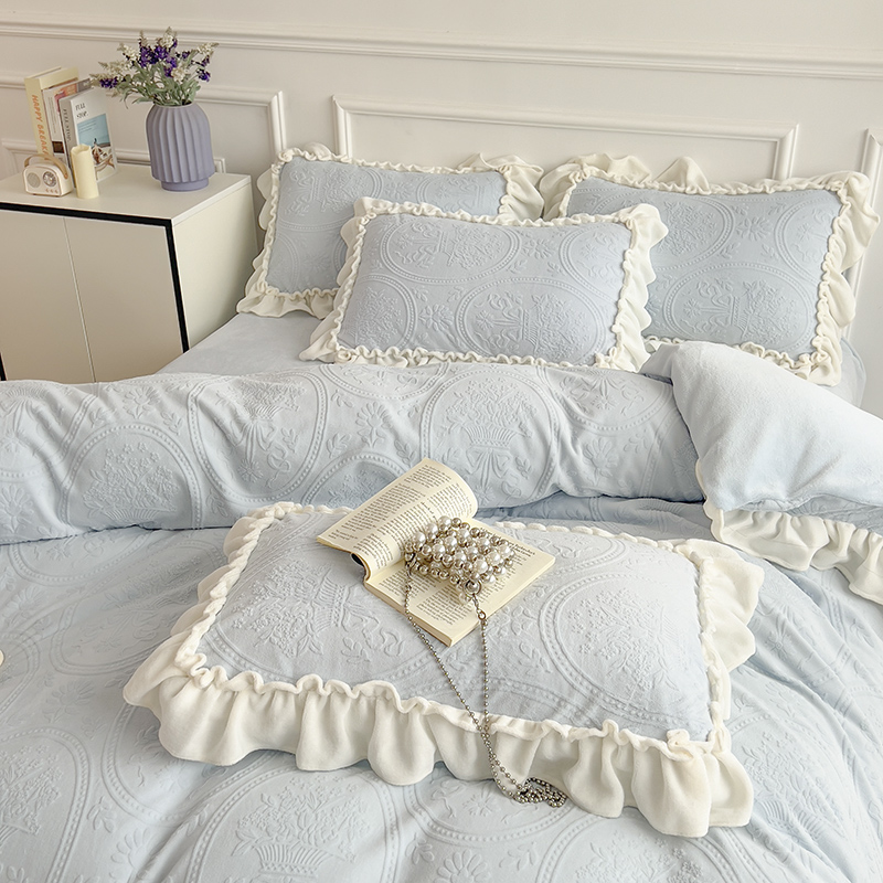 商品名称:小主驾到 2024新款雕花绒牛奶绒法式轻奢公主风四件套 浪漫主义-蓝色