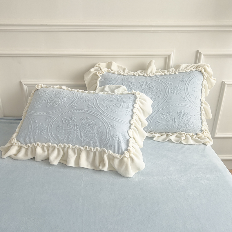 (总)小主驾到 2025新款高克重雕花牛奶绒花边款床单床盖款四件套,洛薇 粉,洛薇 灰紫,洛薇 蓝,洛薇 米白