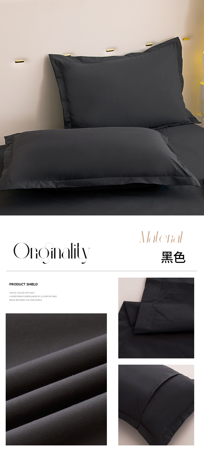 商品名称:茗婷家纺 2025新款供跨境外贸亚马逊纯色防水枕套外贸尺寸 黑