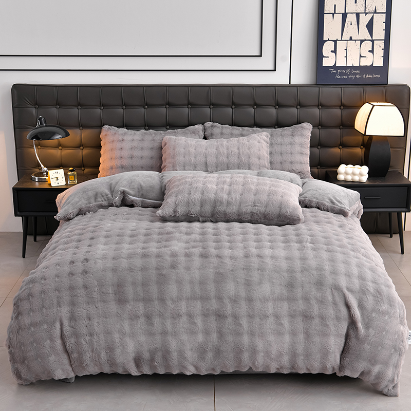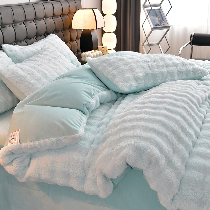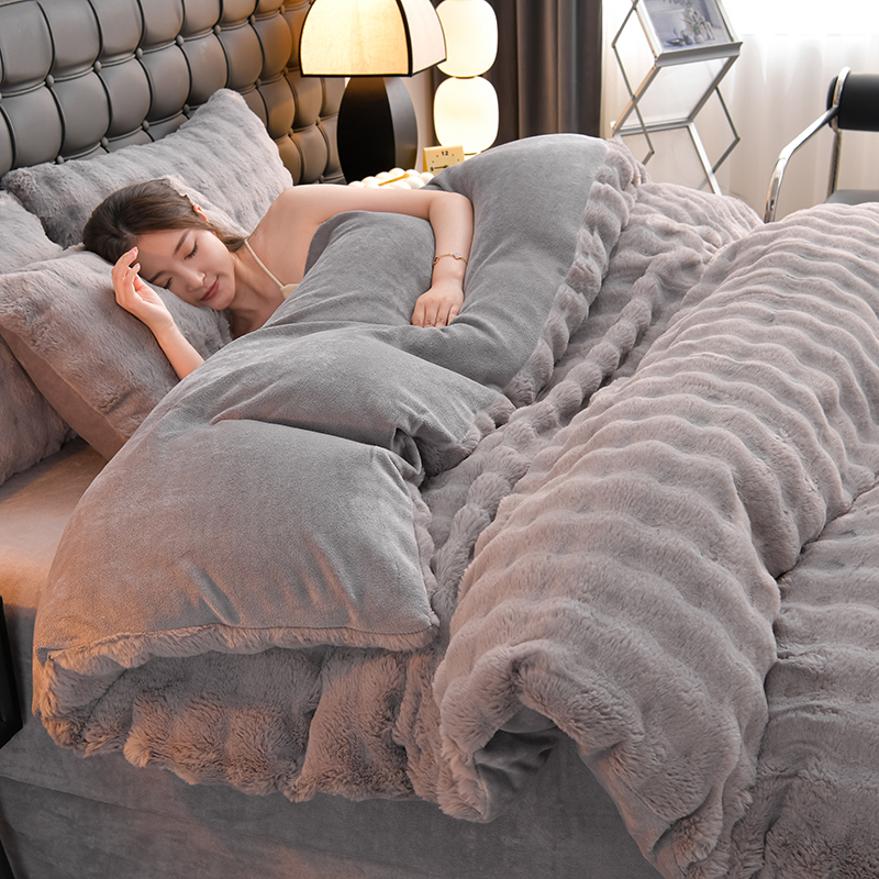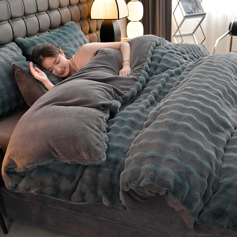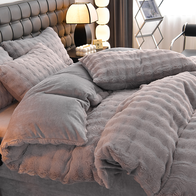 (总)爱上家居 2024新款AB版兔兔绒牛奶绒四件套,粉色,灰色,绿色,驼色,紫色