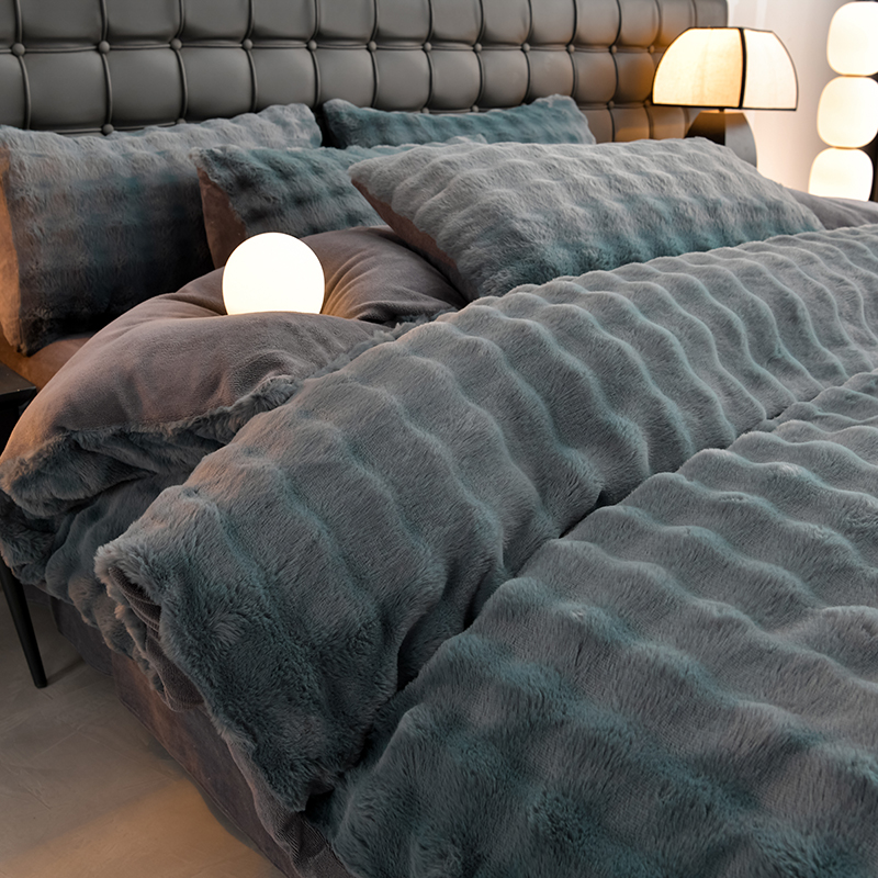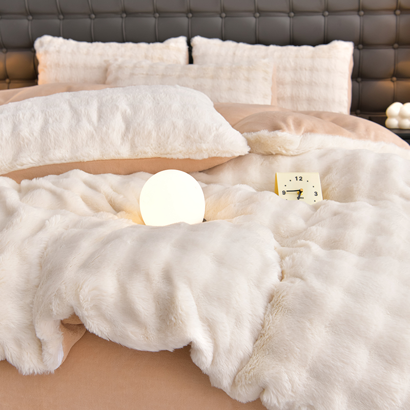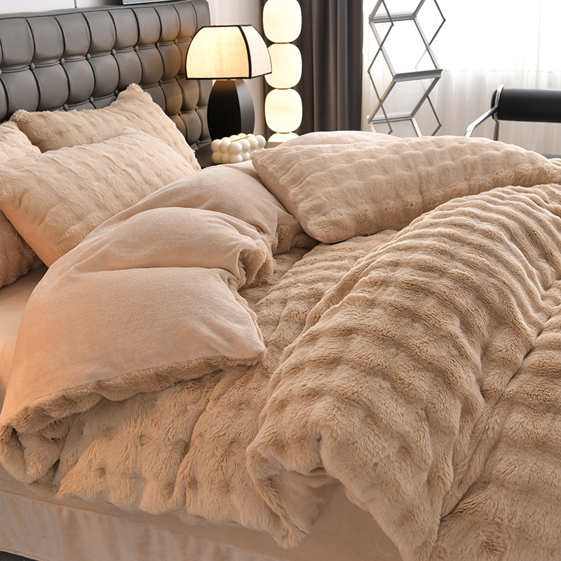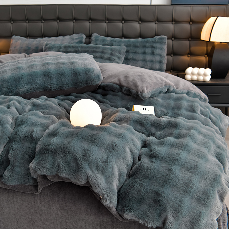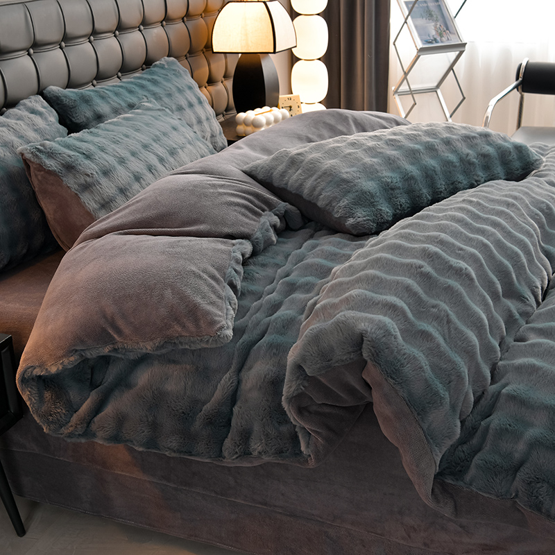 (总)爱上家居 2024新款AB版兔兔绒牛奶绒四件套,粉色,灰色,绿色,驼色,紫色