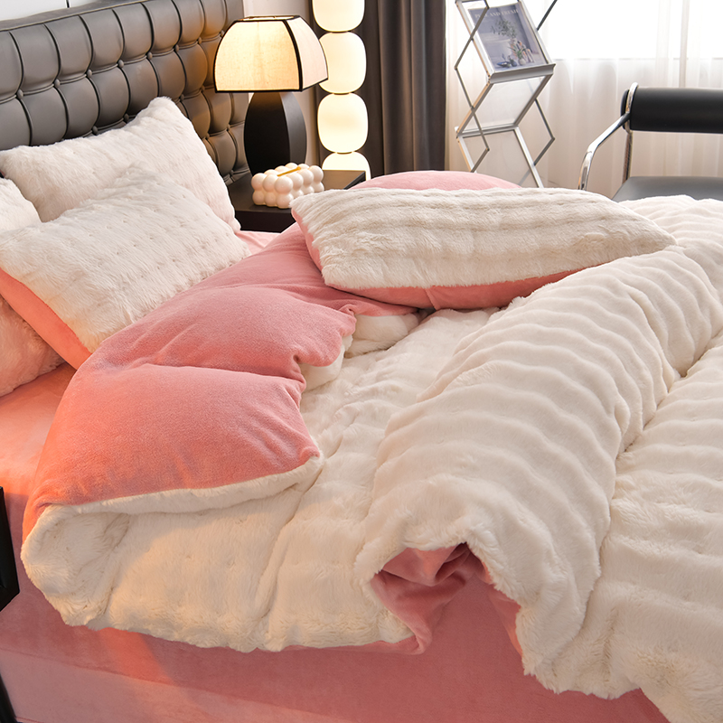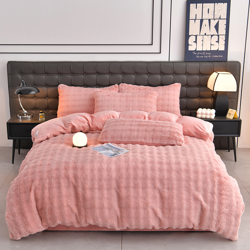 商品名称:爱上家居 2024新款亲肤舒适纯色兔兔绒牛奶绒四件套 粉色