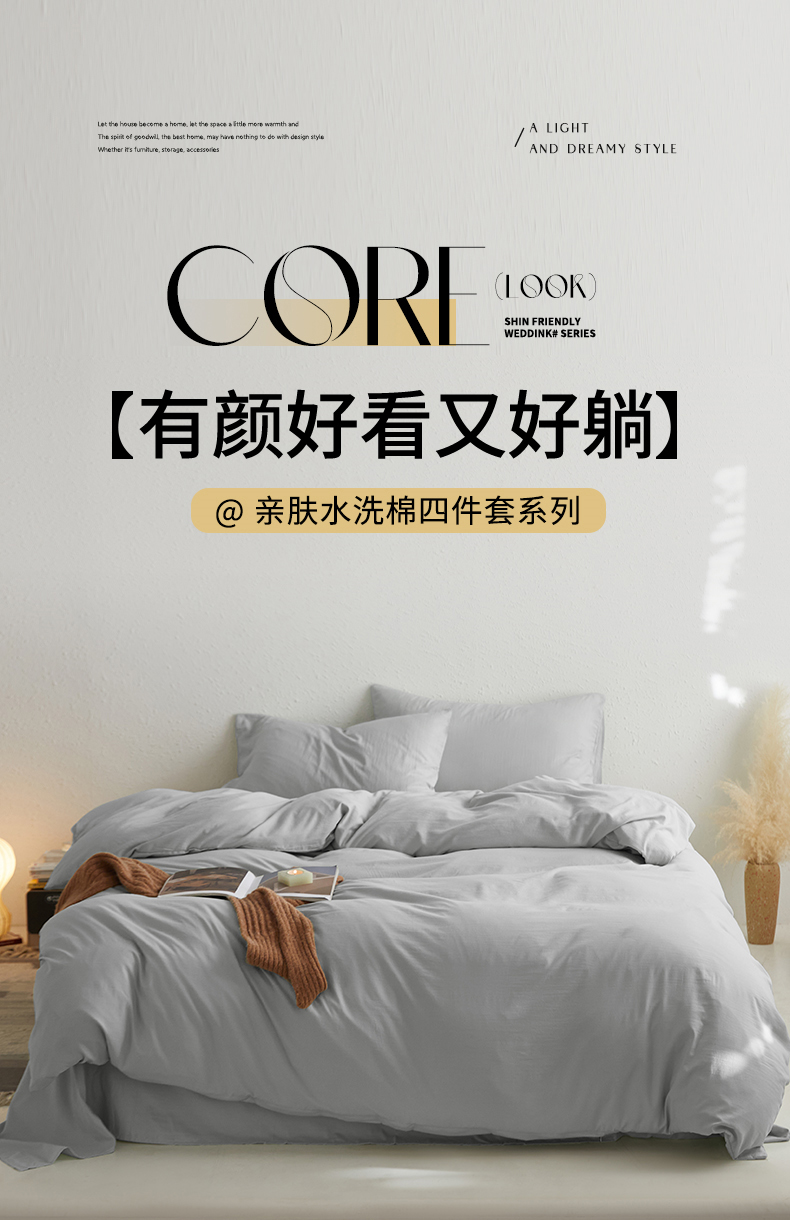 当前位置: 91家纺网 > 商品网购 > 床品套件 > 四件套 > 水洗棉四件套 > 沃朴家居 2024新款亲肤水洗棉四件套冷灰