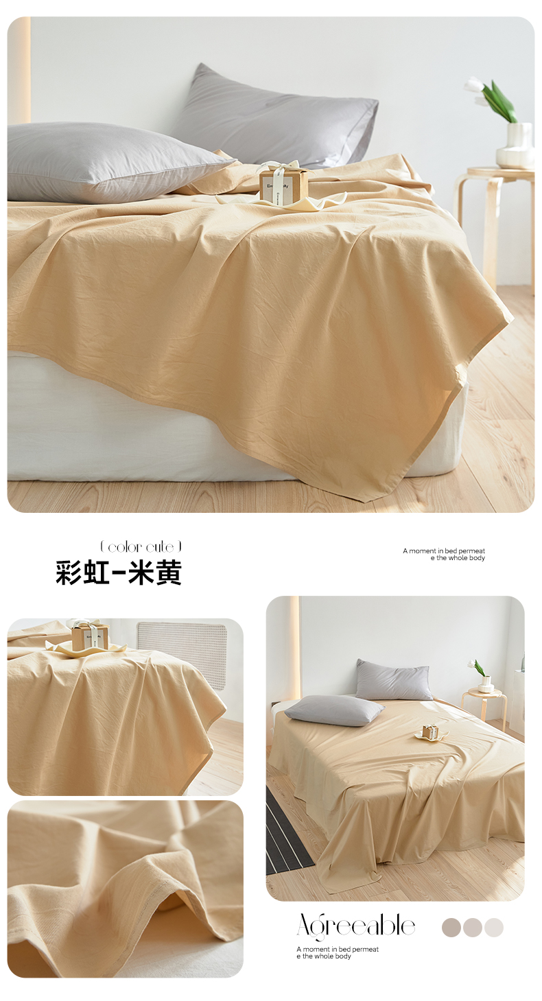 • 91家纺网 家纺一手货源 找家纺 40支纯色彩虹糖系列单品床单 彩虹-米黄