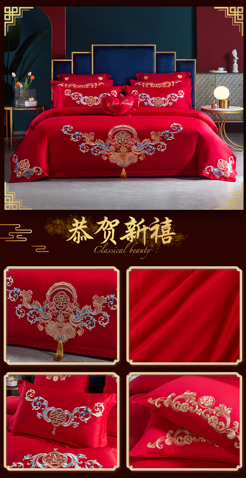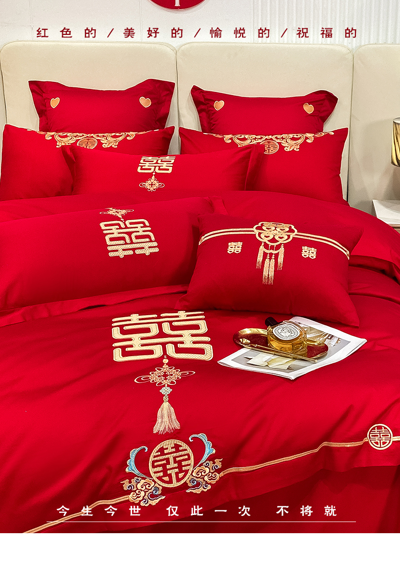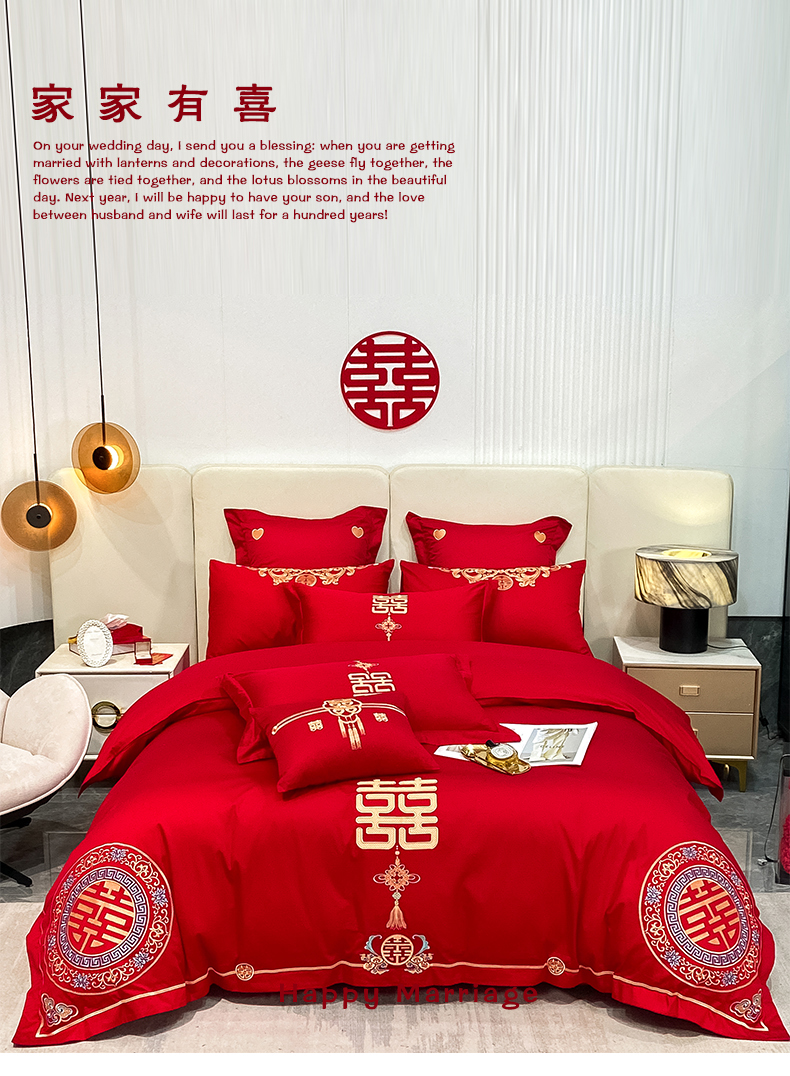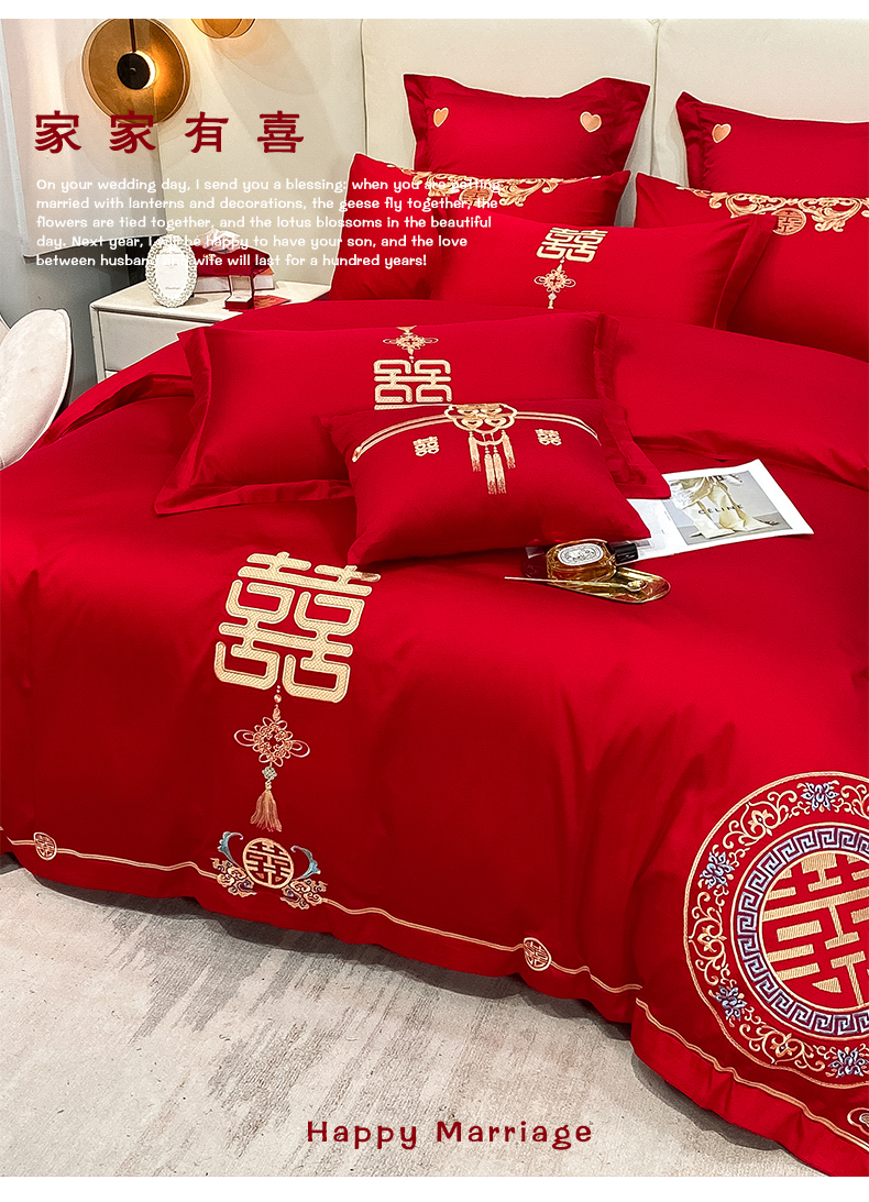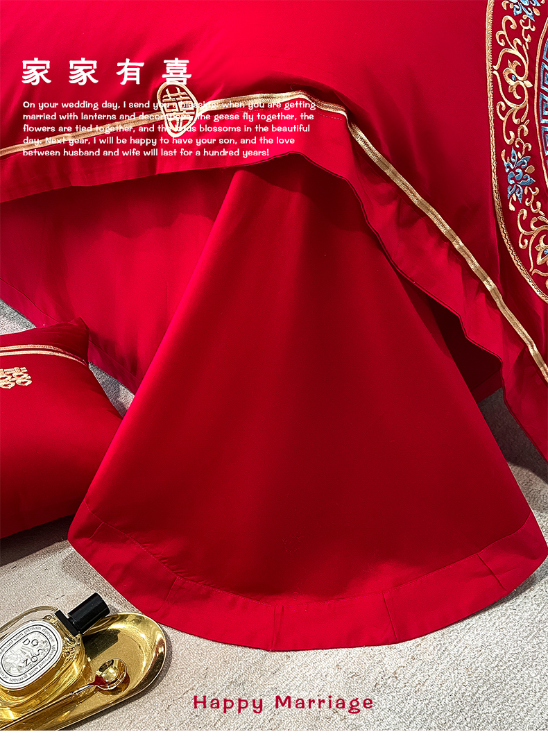 当前位置: 91家纺网 > 商品网购 > 床品套件 > 四件套 > 婚庆四件套 > 东方合美(原:皇家传奇) 2023新款100磨毛婚庆多件套系列 家家有喜