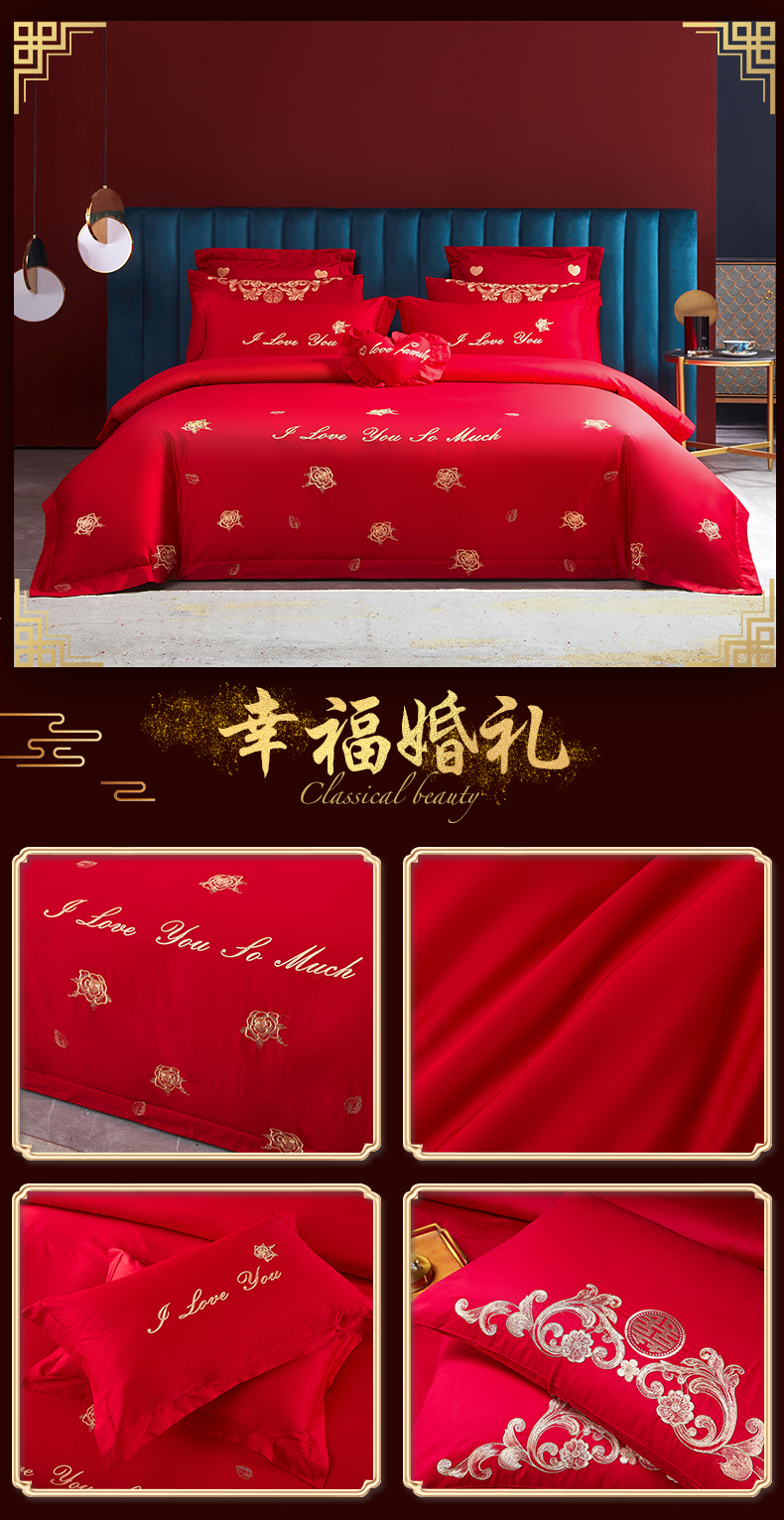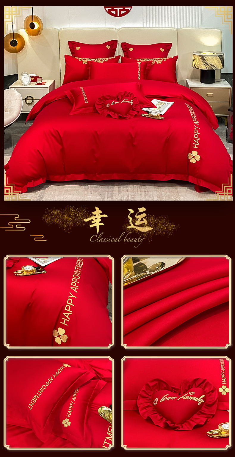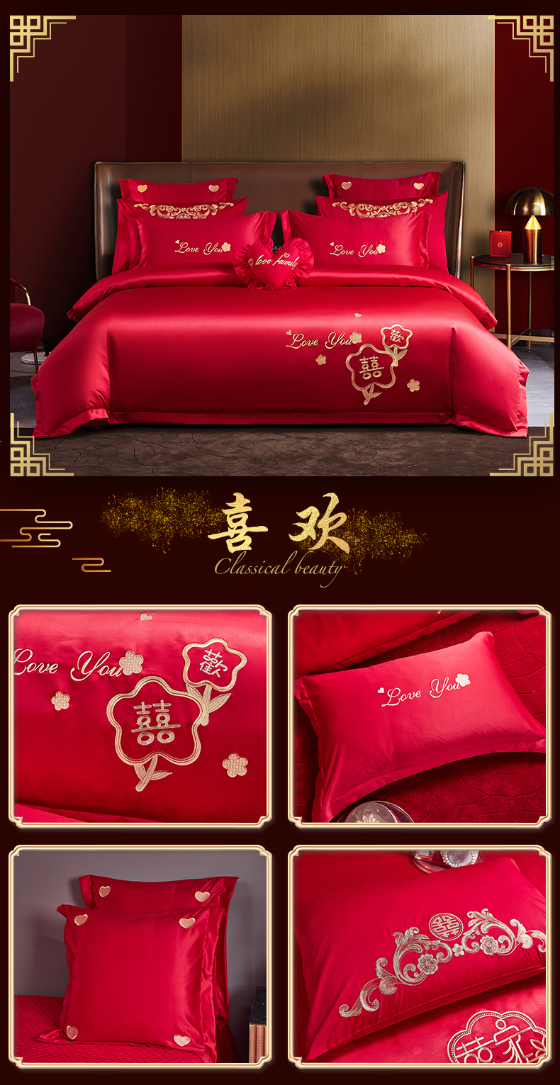 当前位置: 91家纺网 > 商品网购 > 床品套件 > 四件套 > 婚庆四件套 > 东方合美(原:皇家传奇) 2023新款100磨毛婚庆多件套系列 家家有喜
