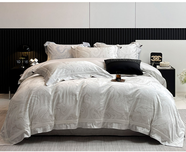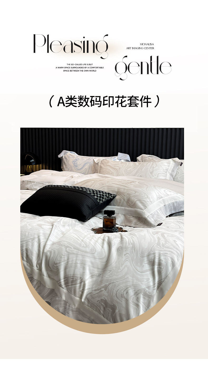 商品名称:春夏爆款全棉数码印花四件套纯棉轻奢风长绒棉床单被套时尚床上用品浮影SM浮影-沁水蓝