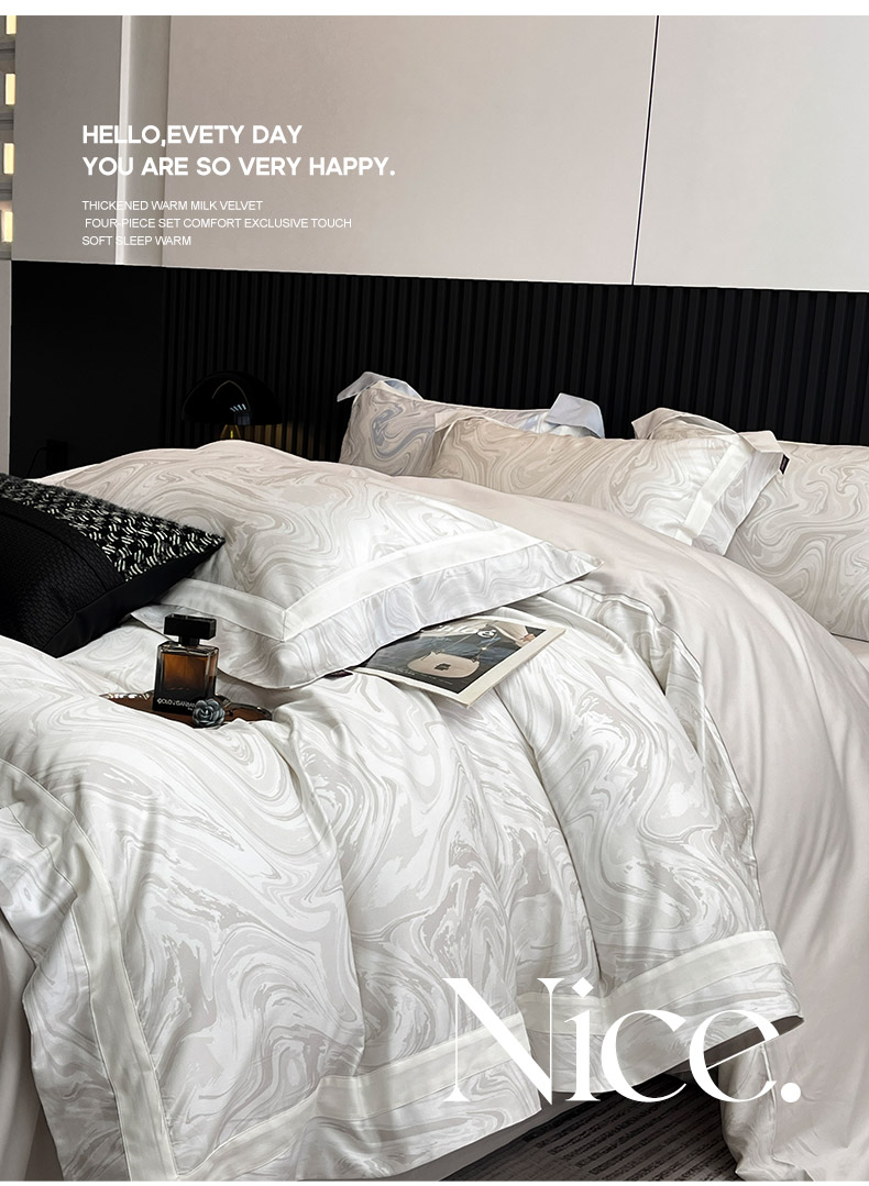 (总)2025冬季热款A类加厚雕花牛奶绒四件套双面保暖刺绣被套珊瑚绒床单床上用品,阿芙拉-雅士灰