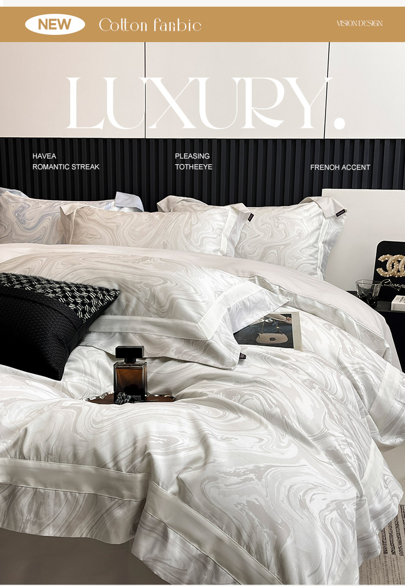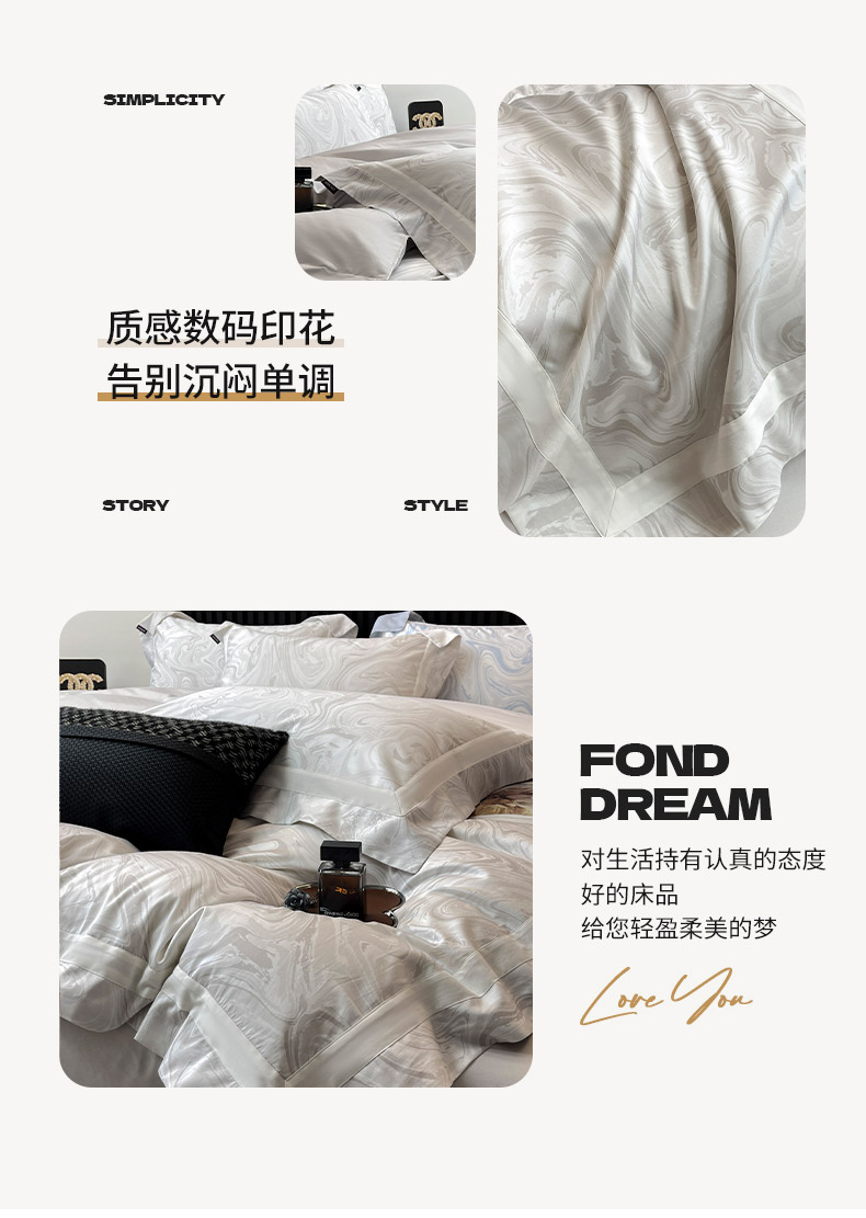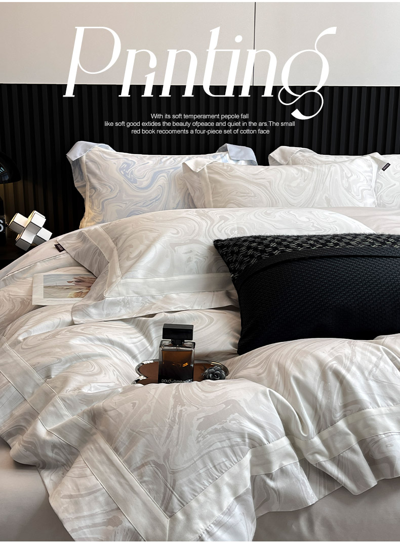春夏爆款全棉数码印花四件套纯棉轻奢风长绒棉床单被套时尚床上用品浮影SM浮影-沁水蓝