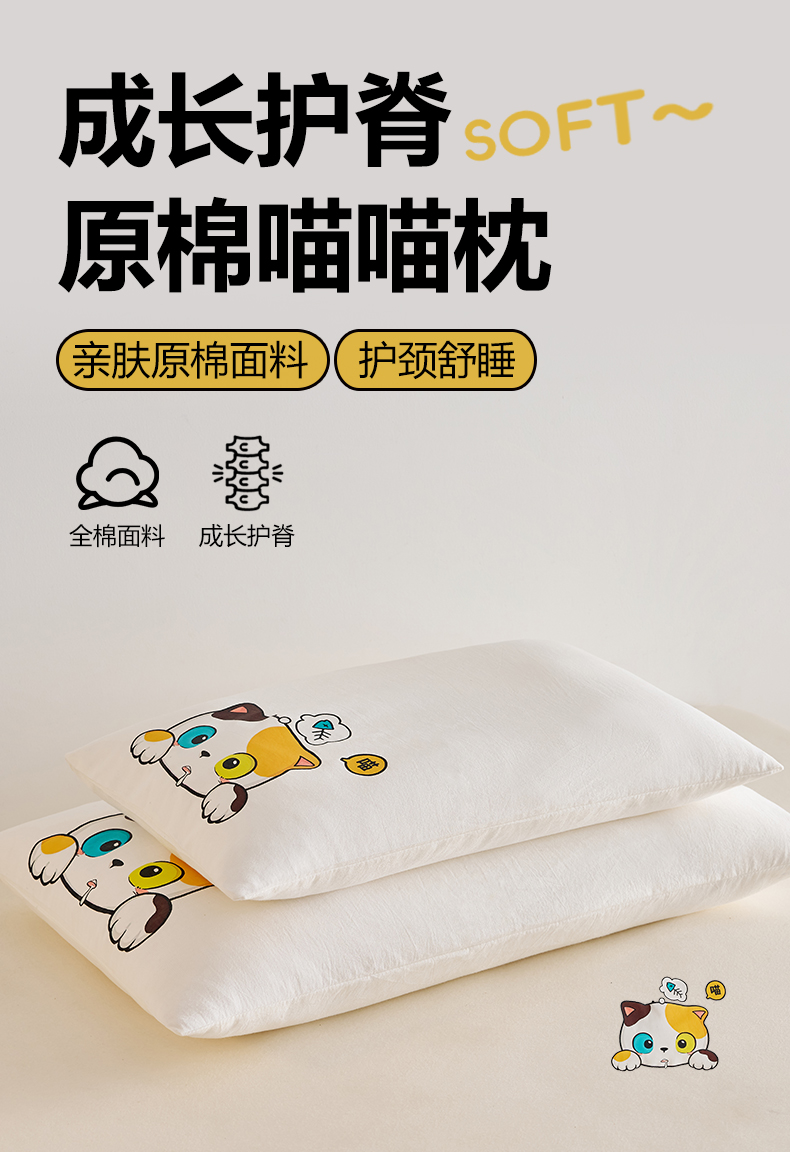 商品名称:(总)2025新款原棉喵喵枕 儿童枕学生枕 枕头枕芯