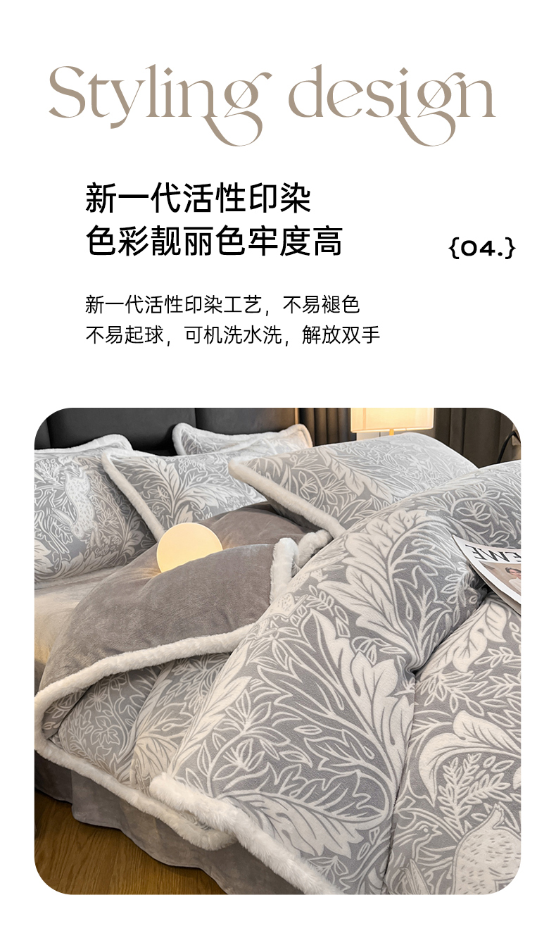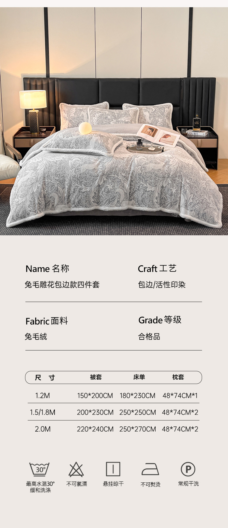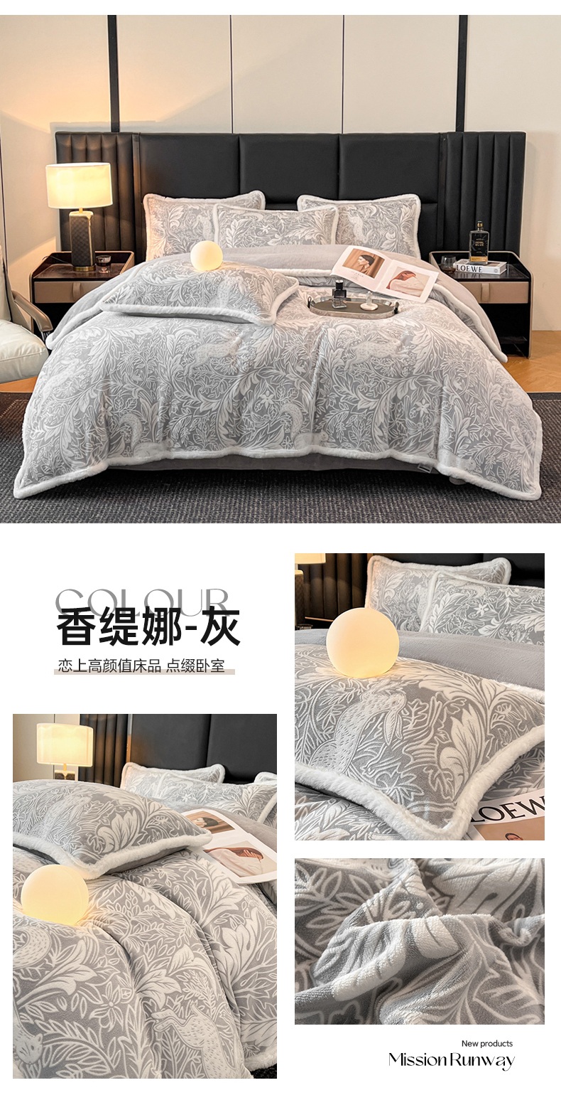 商品名称:畅畅家纺 2025新款兔毛绒大包边雕花牛奶绒绒四件套 香缇娜-灰