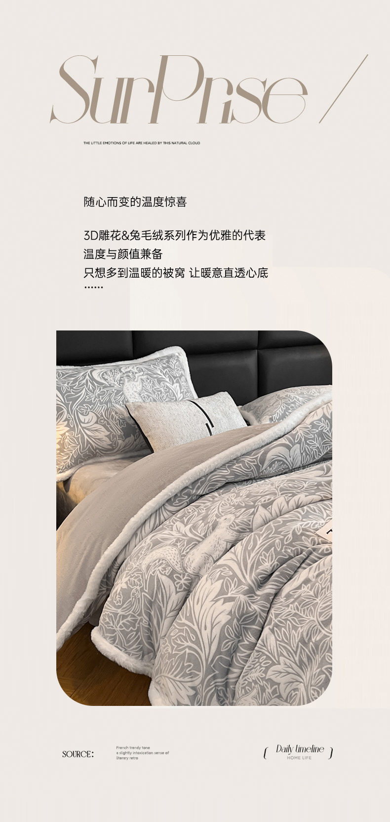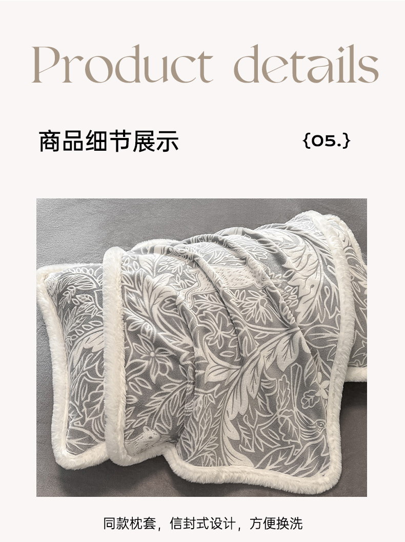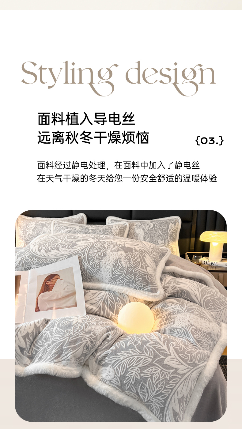 商品名称:畅畅家纺 2025新款兔毛绒大包边雕花牛奶绒绒四件套 香缇娜-灰