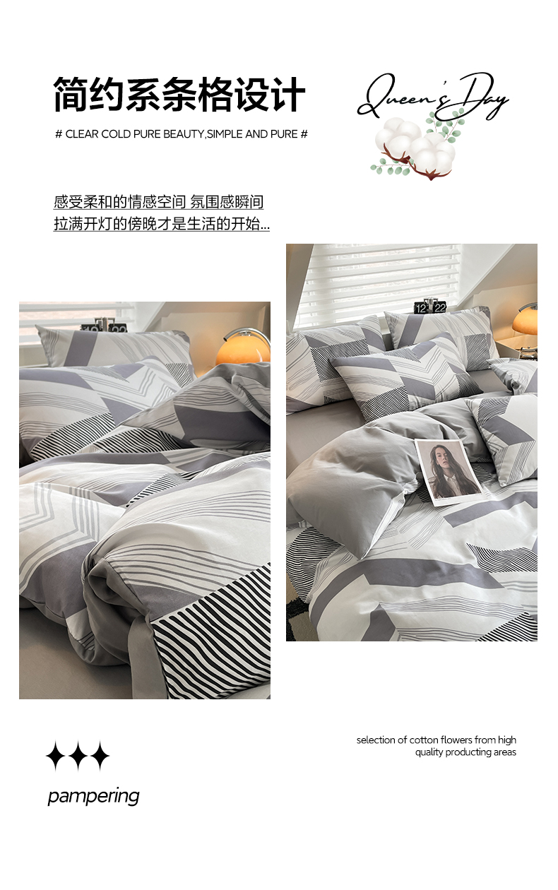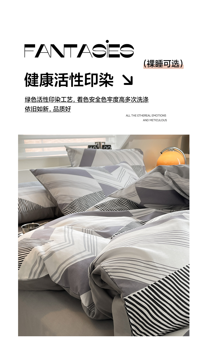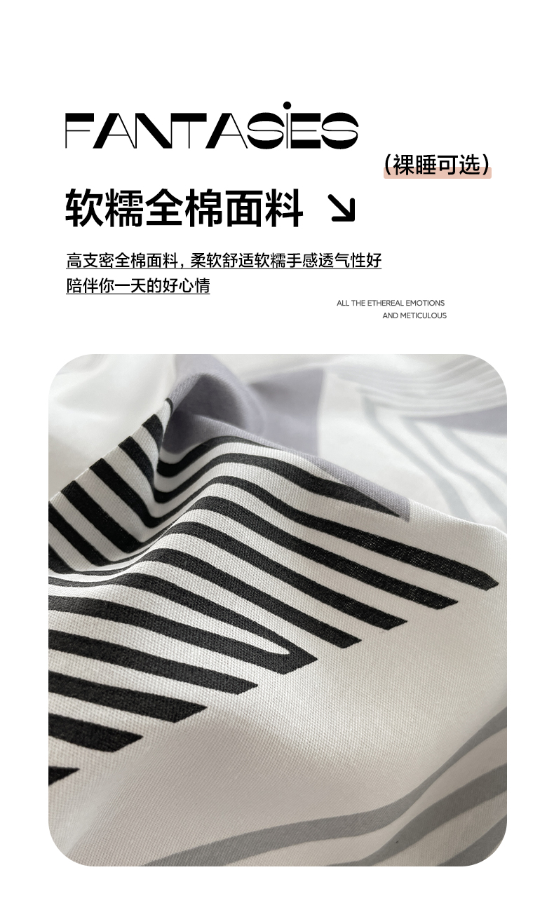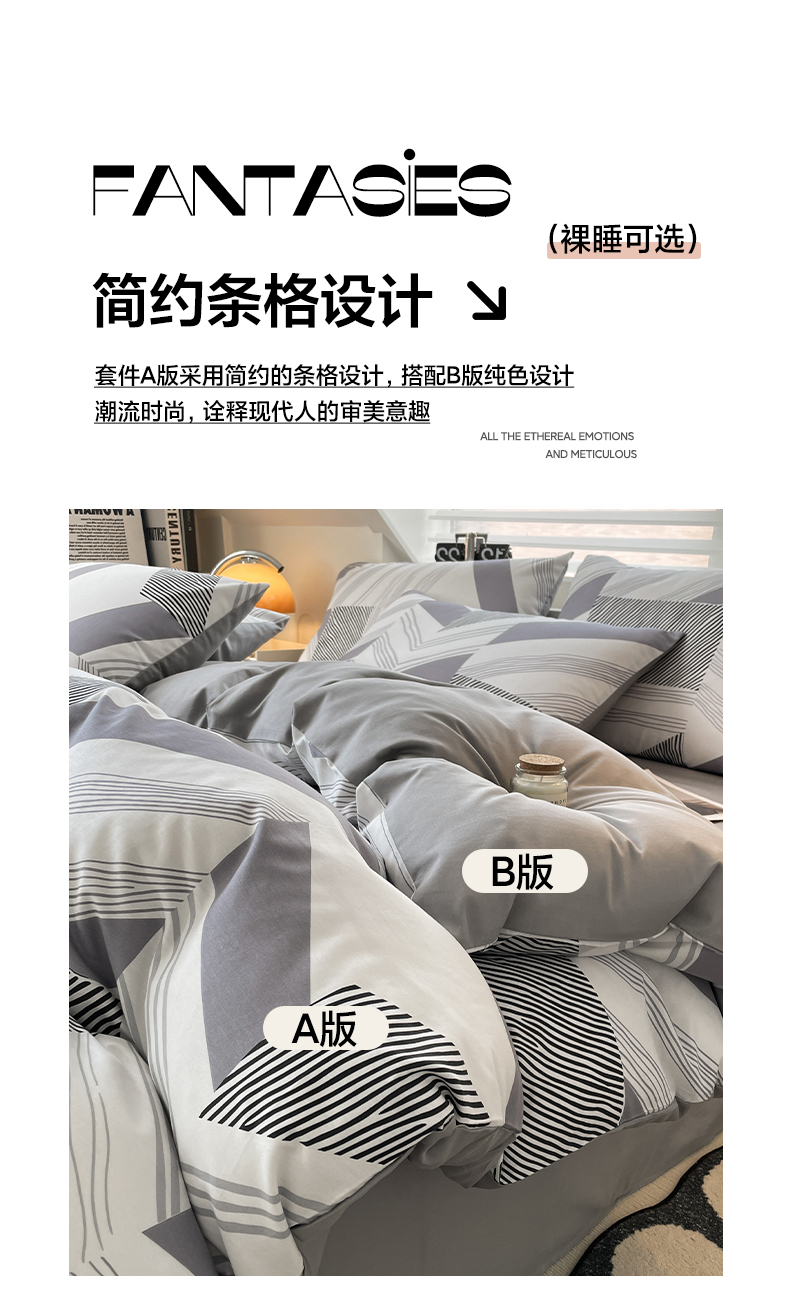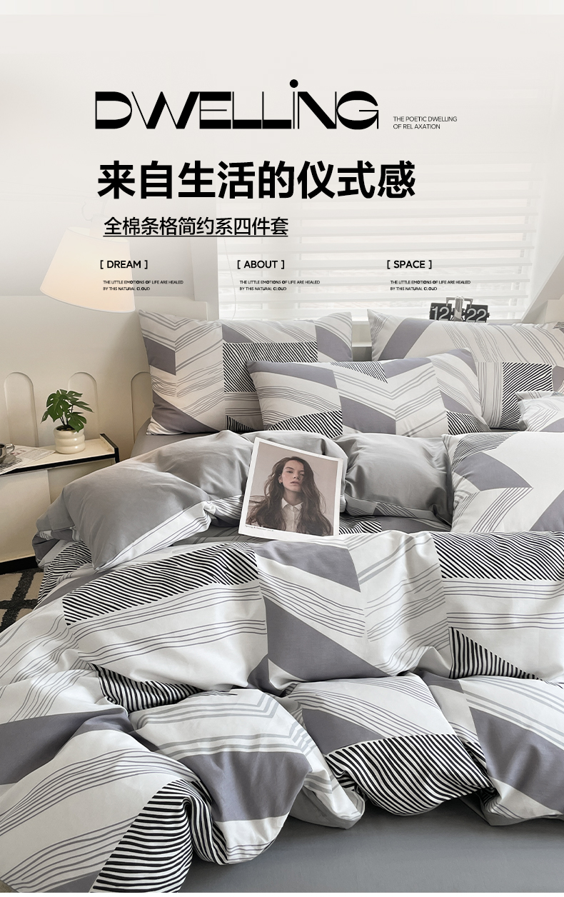 商品名称:雅居纺家纺 2025新款全棉条格简约系四件套 幻影
