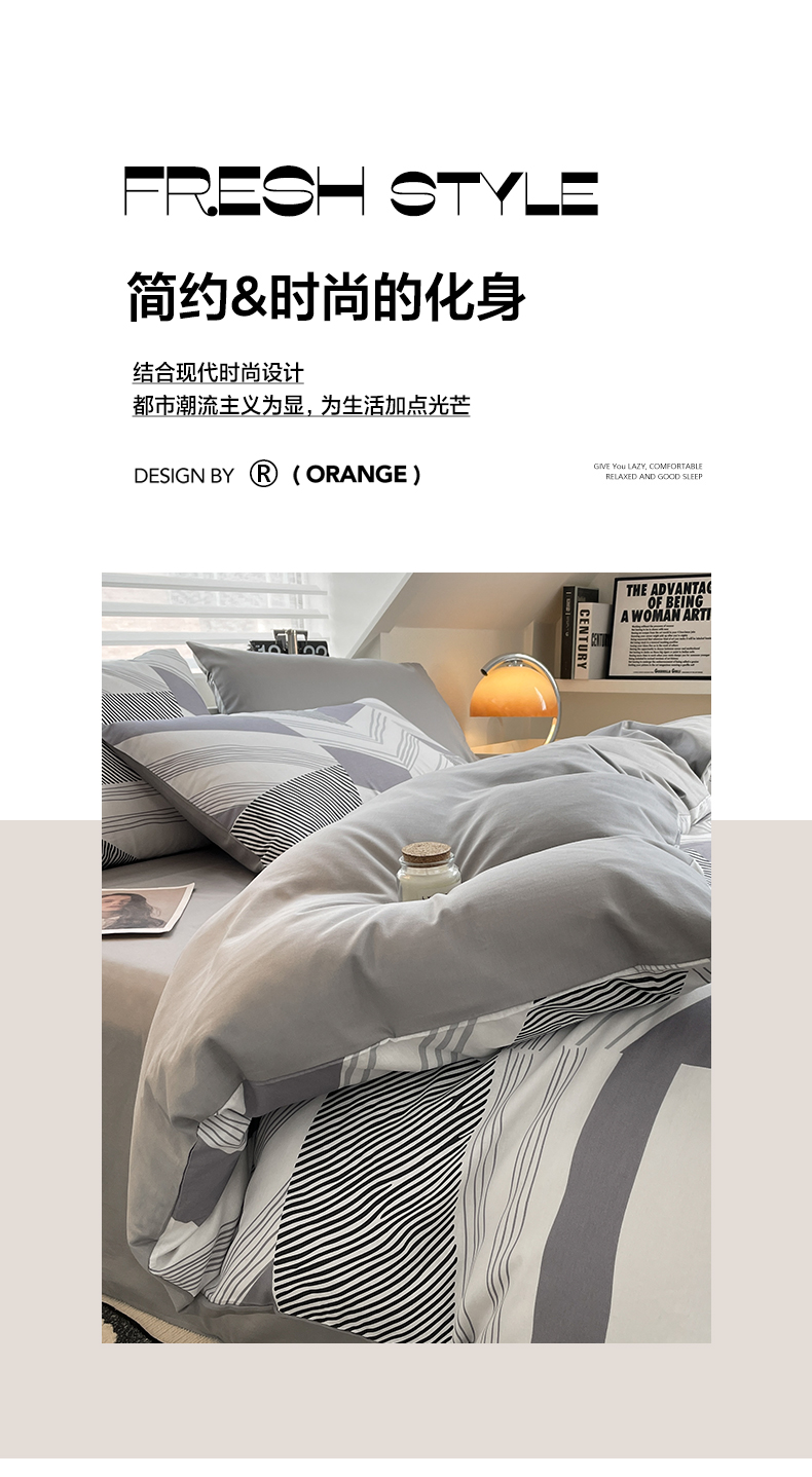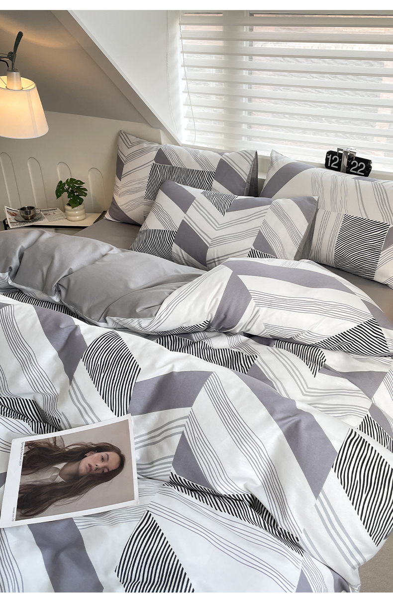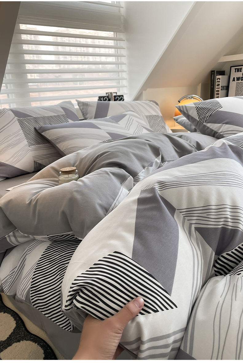 雅居纺家纺 2025新款全棉条格简约系四件套 幻影