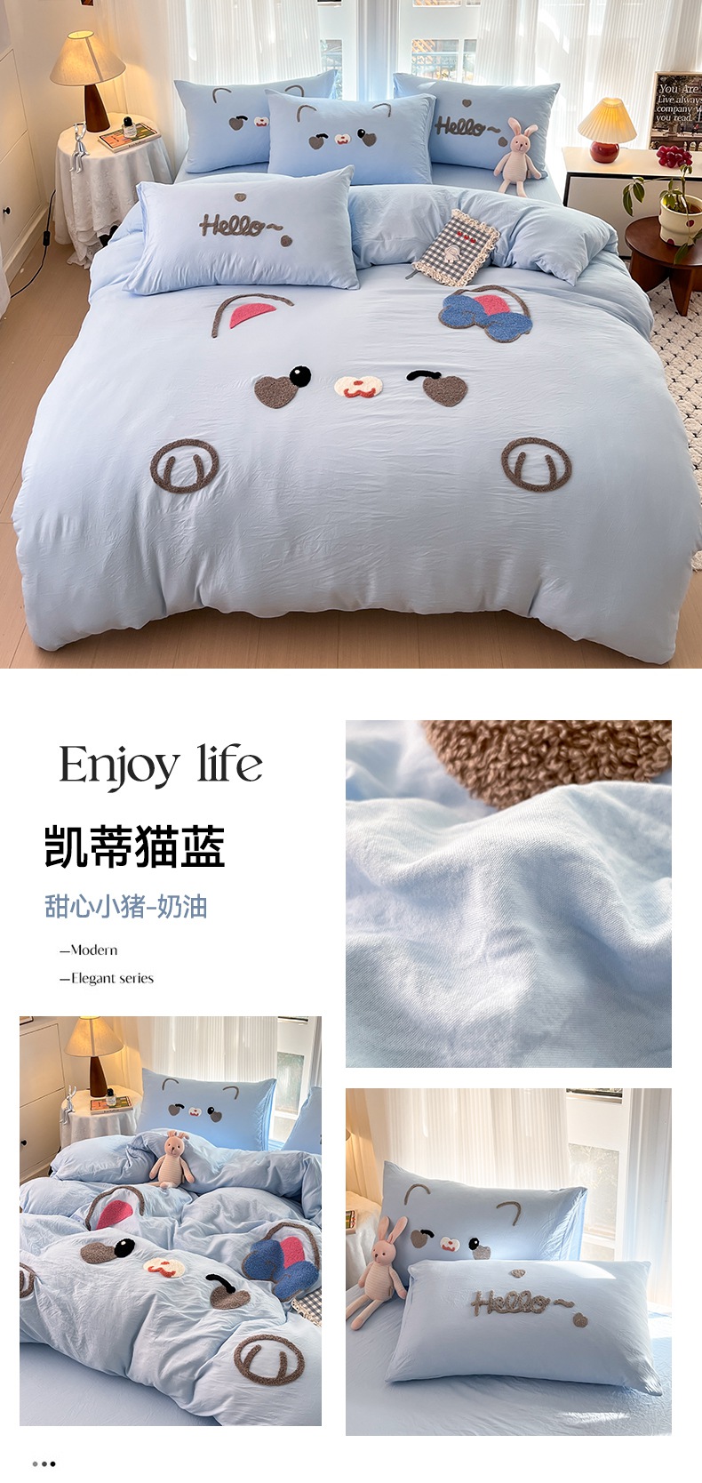 (总)玉海棠家纺 2025新款云感提花双层纱印花系列四件套-场景一,布丁狗,格格西高地,蓝色爱心,米奇,诺言兔兔,晴天,芝士奶酪,春风里