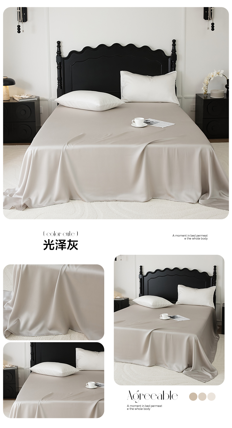 • 91家纺网 家纺一手货源 找家纺 EH家居 2025春夏天丝纯色单床单 光泽灰