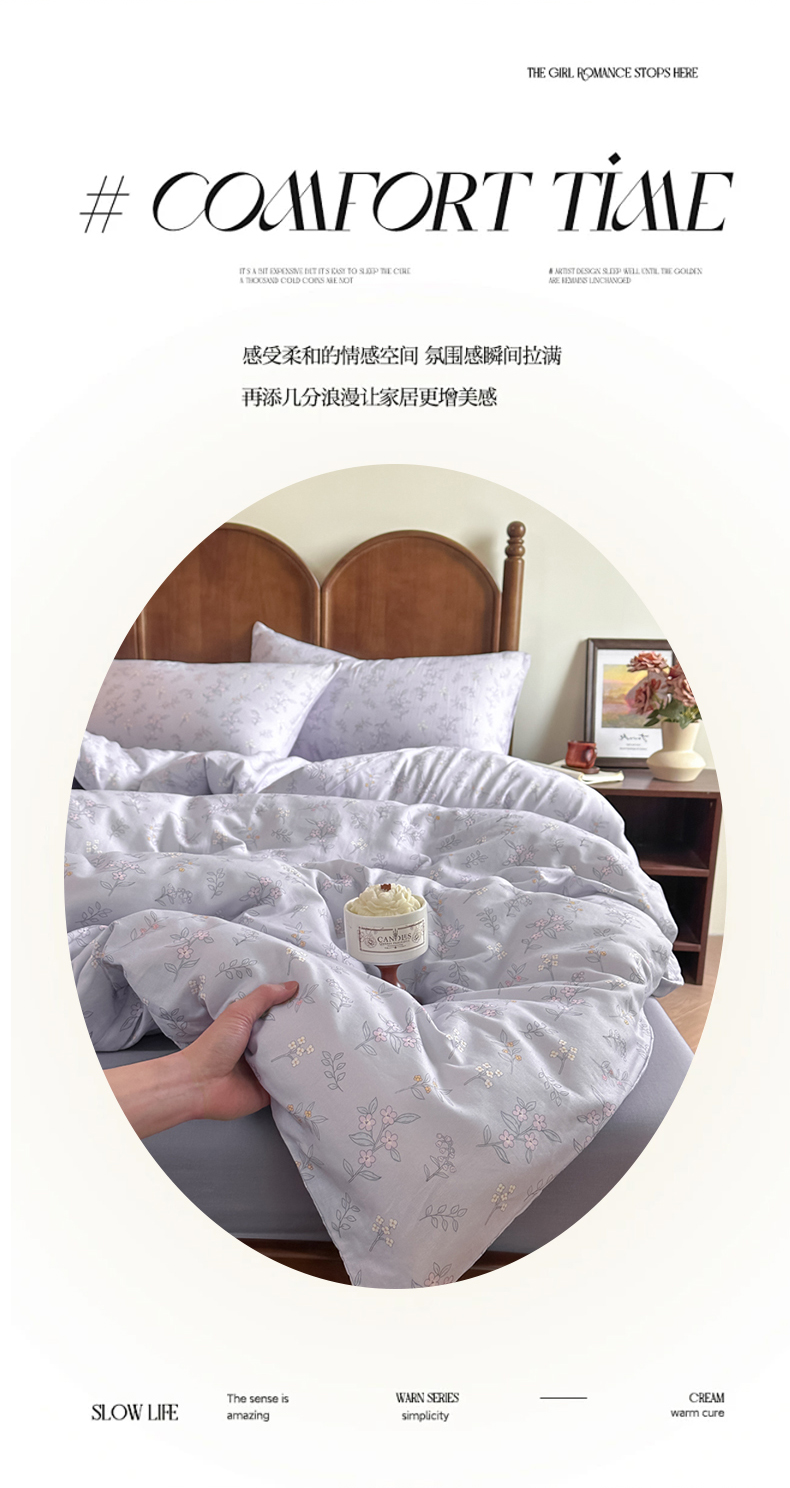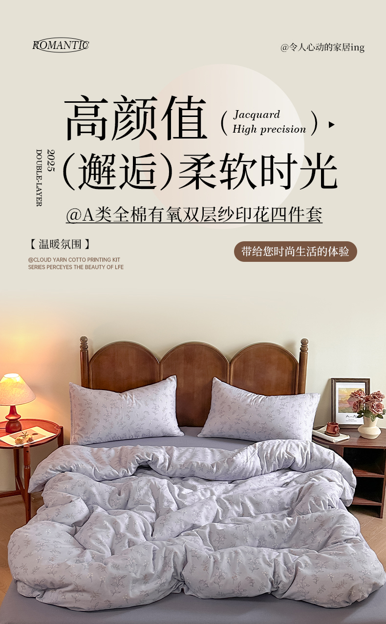 当前位置: 91家纺网 > 商品网购 > 床品套件 > 四件套 > 全棉普通四件套 > 2025新款A类母婴级有氧全棉纯棉双层纱纯棉印花四件套 场景二 安娜