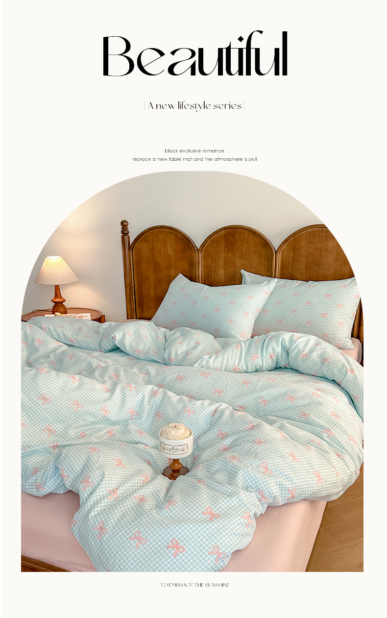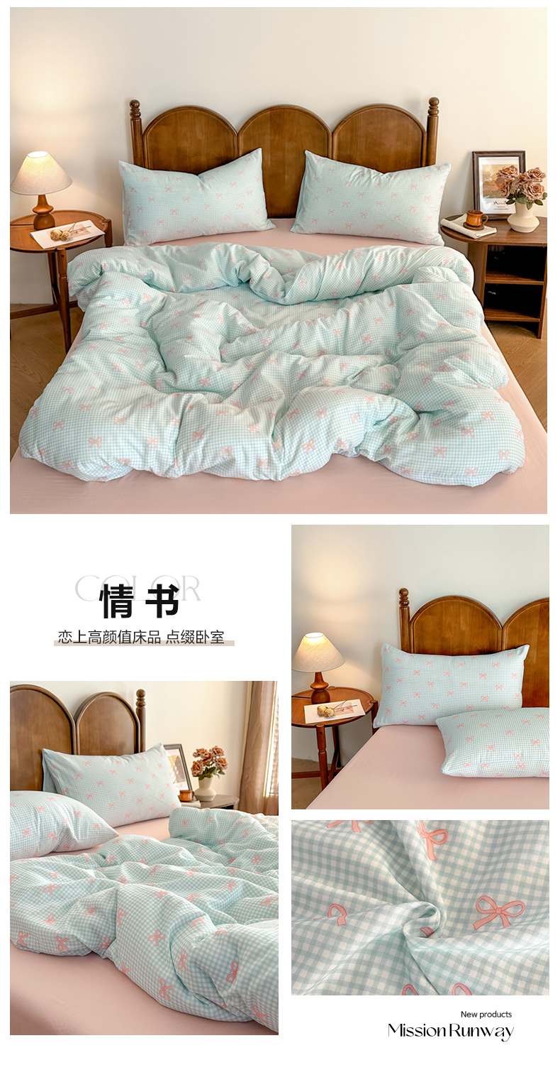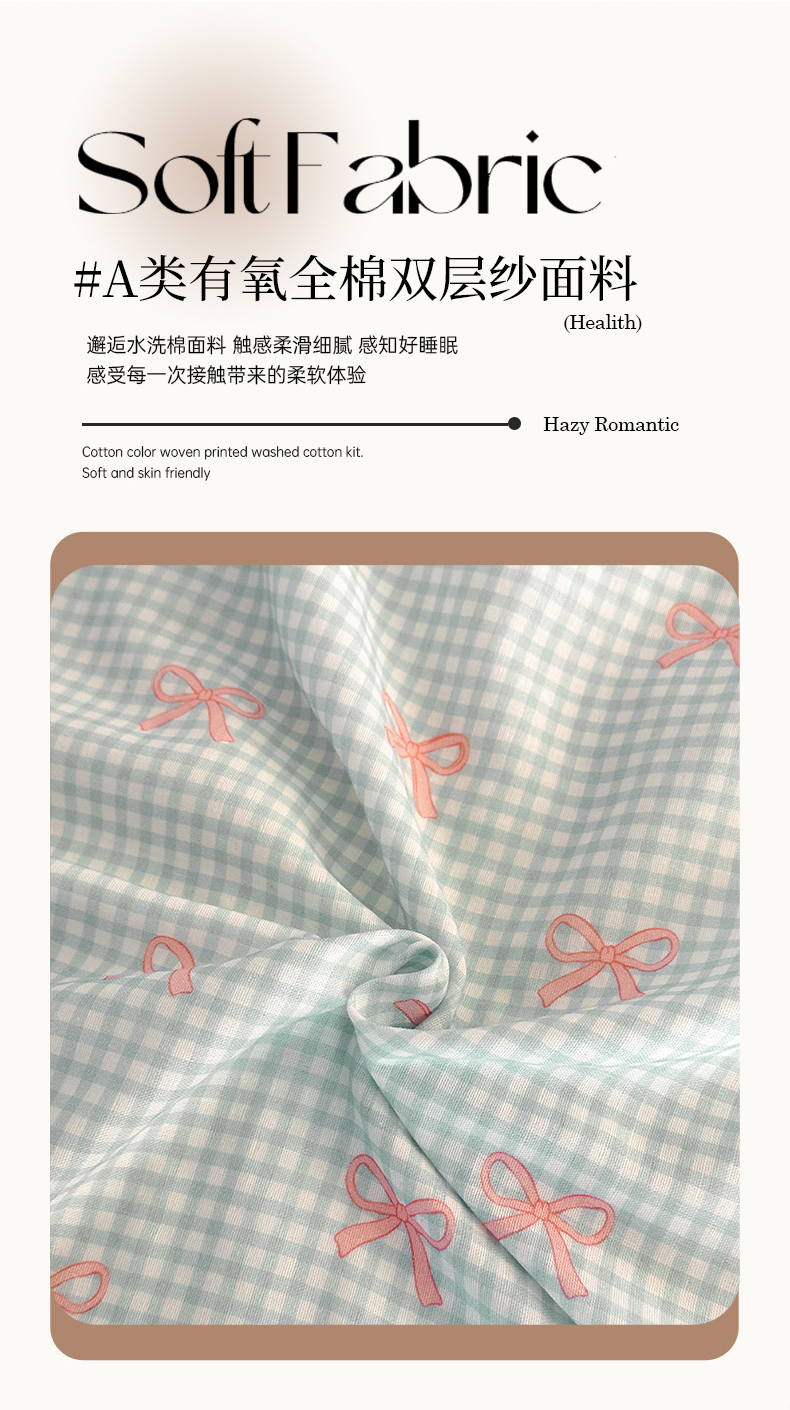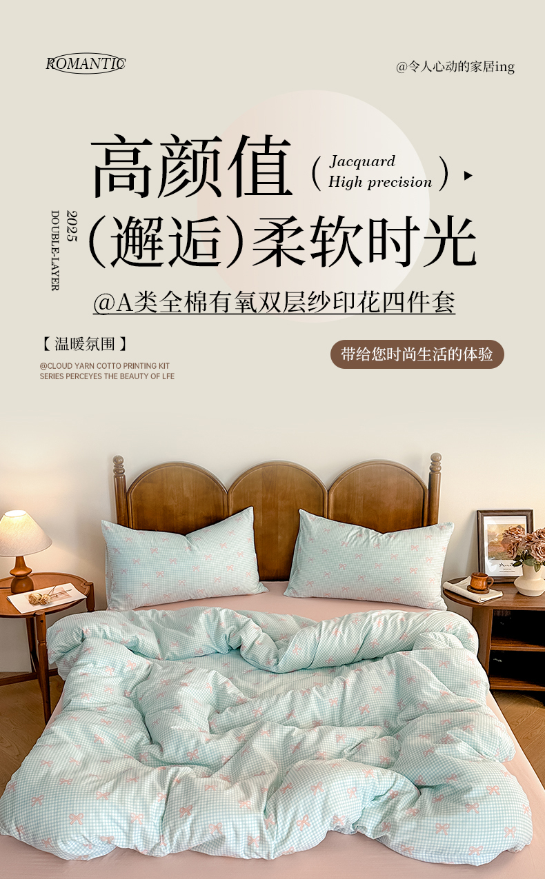 当前位置: 91家纺网 > 商品网购 > 床品套件 > 四件套 > 全棉普通四件套 > 2025新款A类母婴级有氧全棉纯棉双层纱纯棉印花四件套 场景二 情书